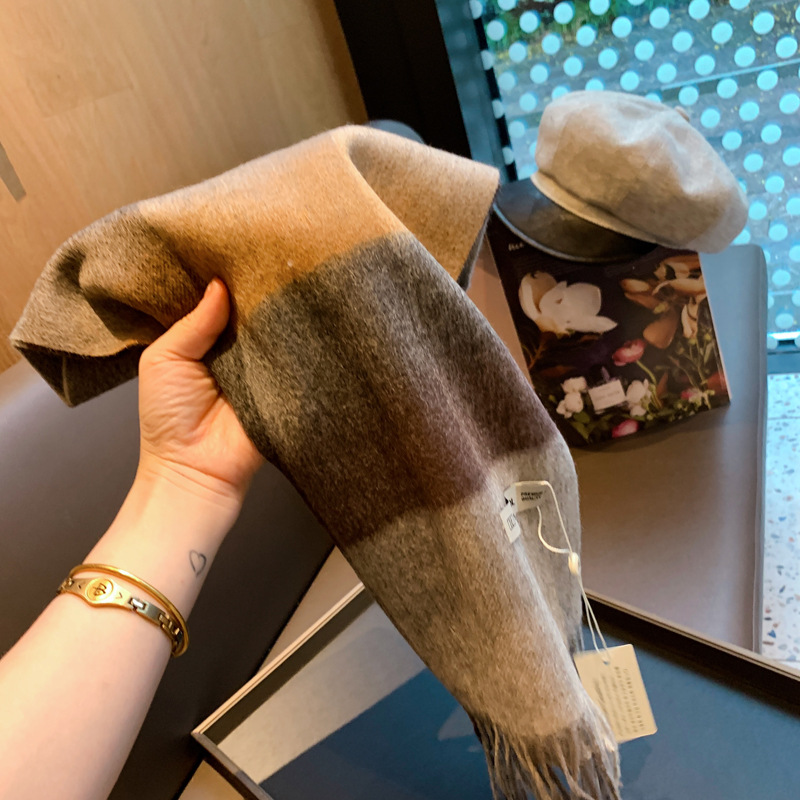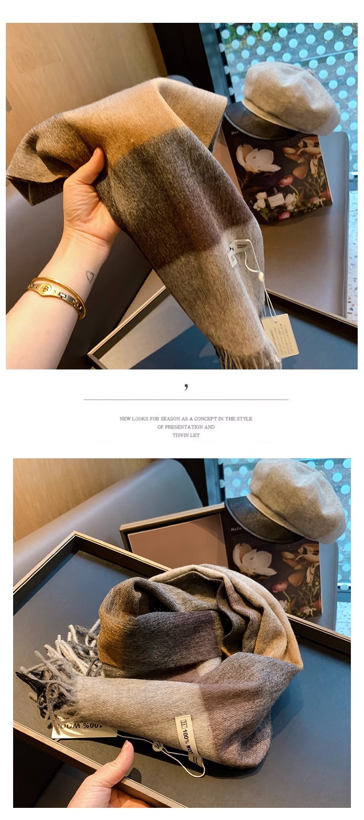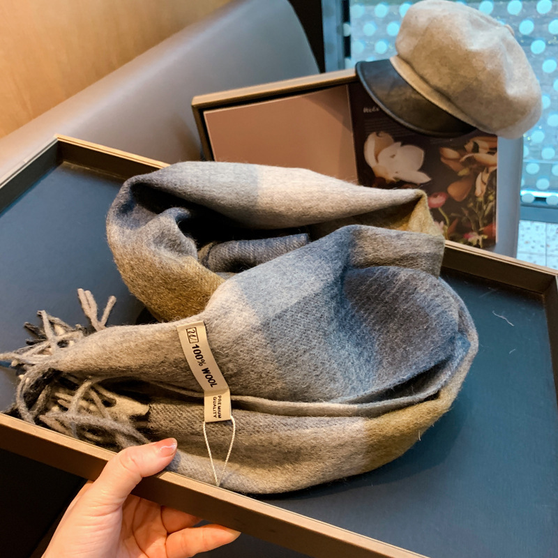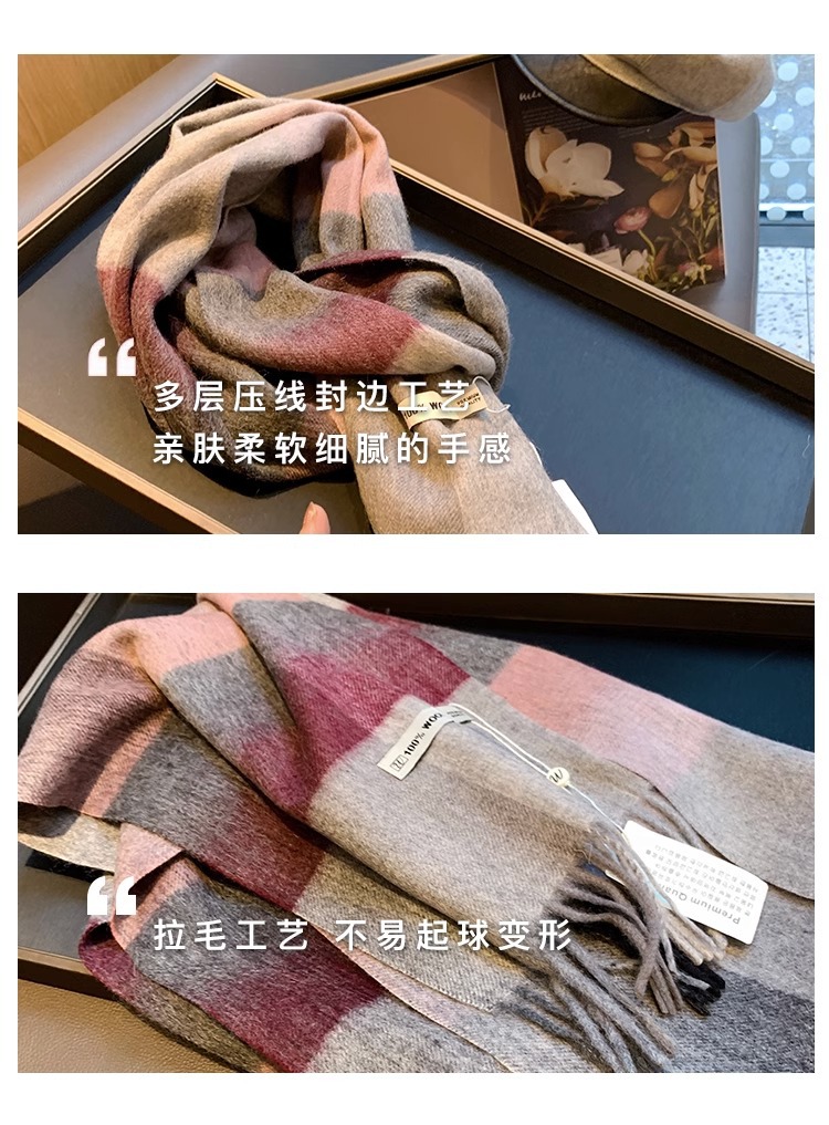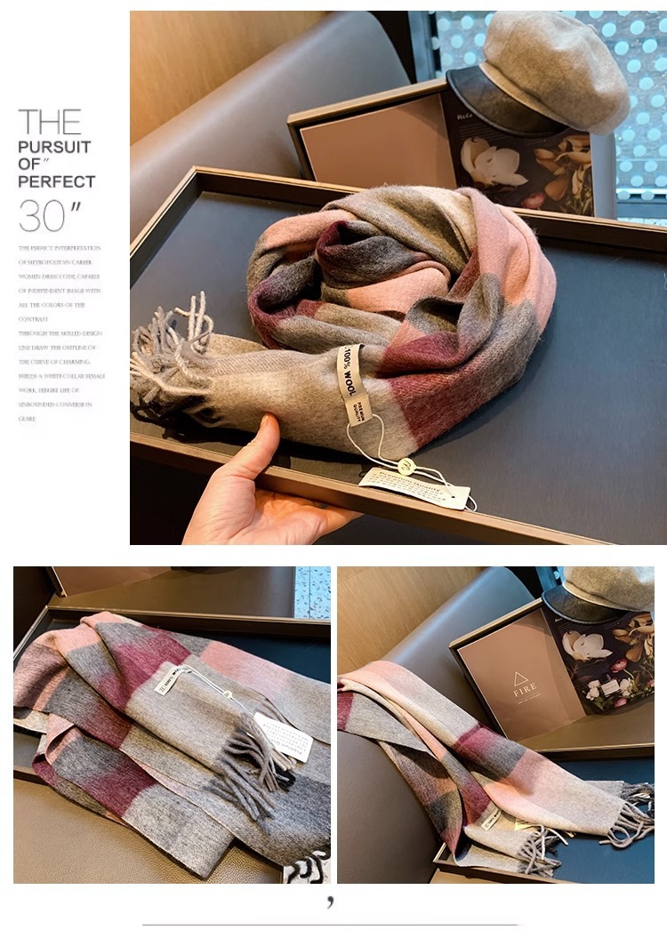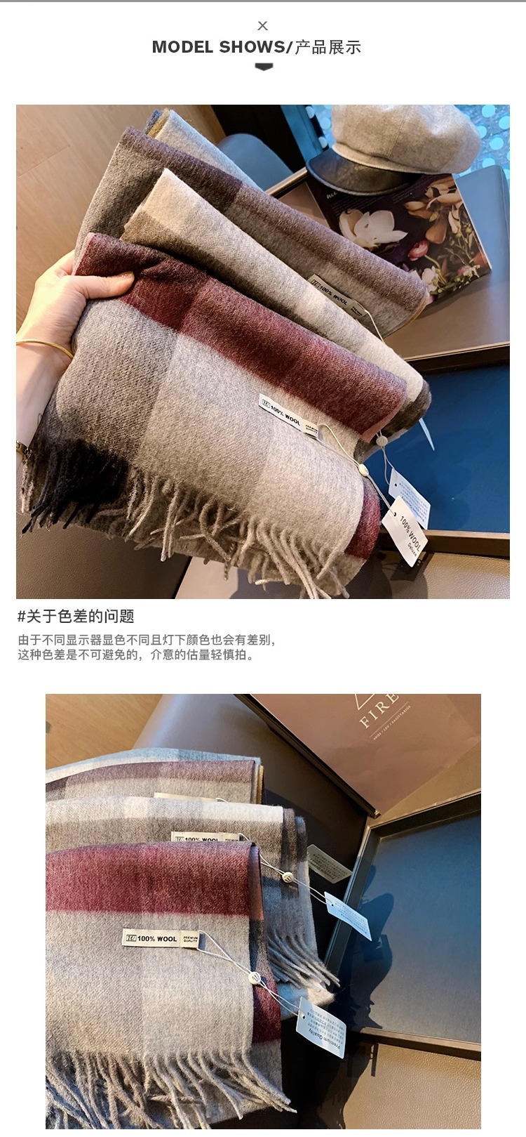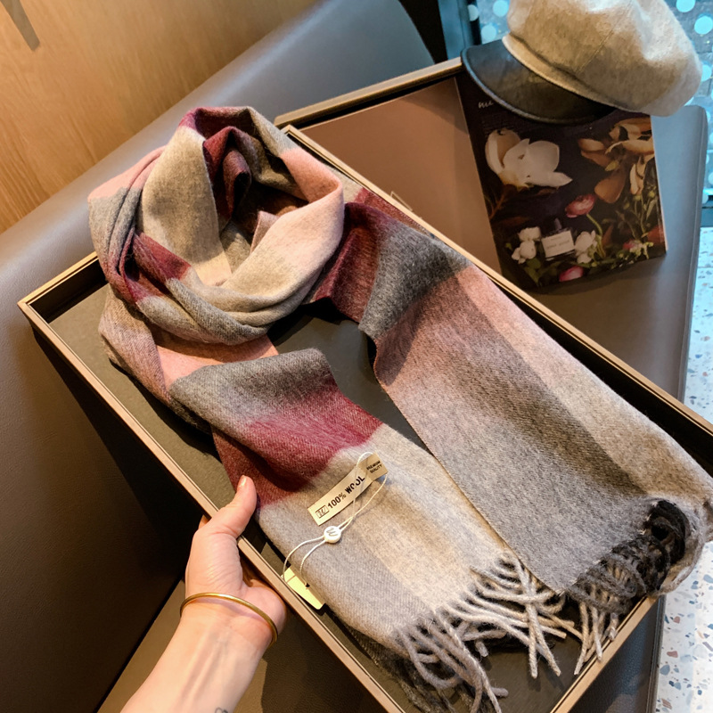 한국 100% 울 버건디 격자 무늬 스카프 컬러 매칭 격자 무늬 숄 고급 술 모든 매치 따뜻한 목