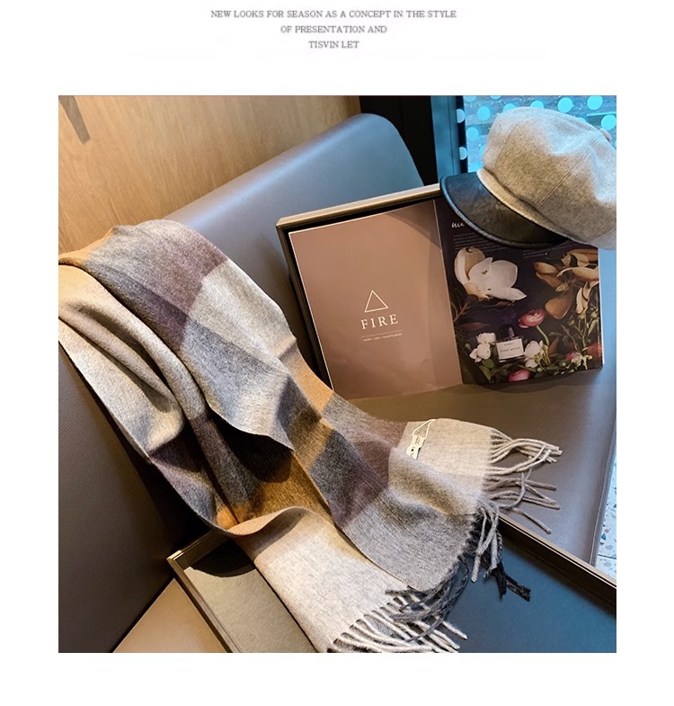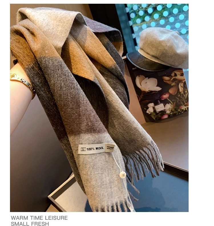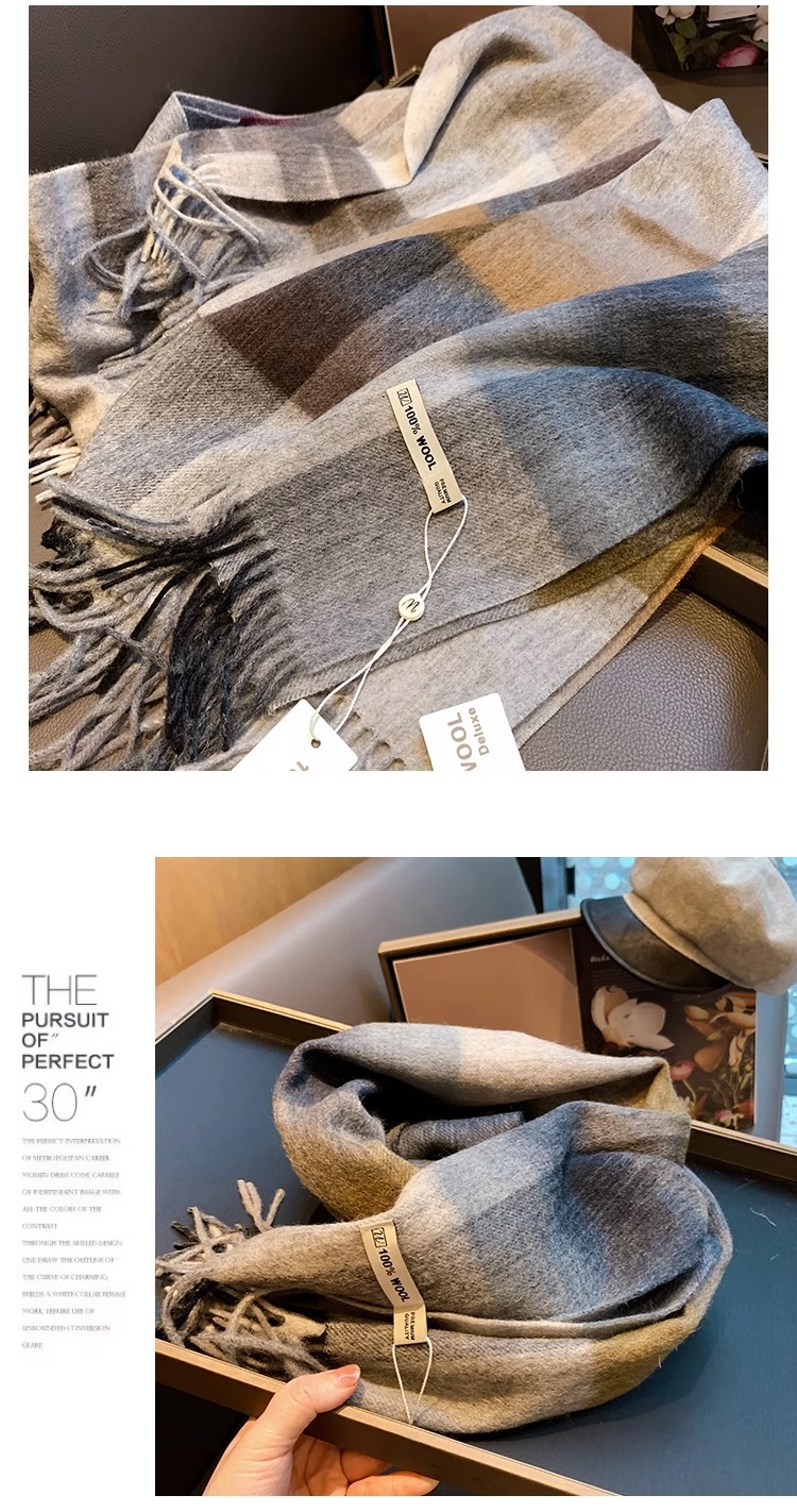 한국 100% 울 버건디 격자 무늬 스카프 컬러 매칭 격자 무늬 숄 고급 술 모든 매치 따뜻한 목스토어 가기