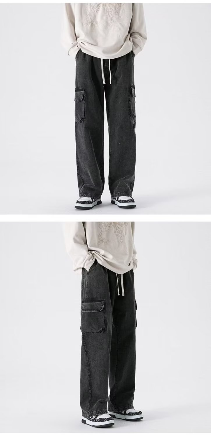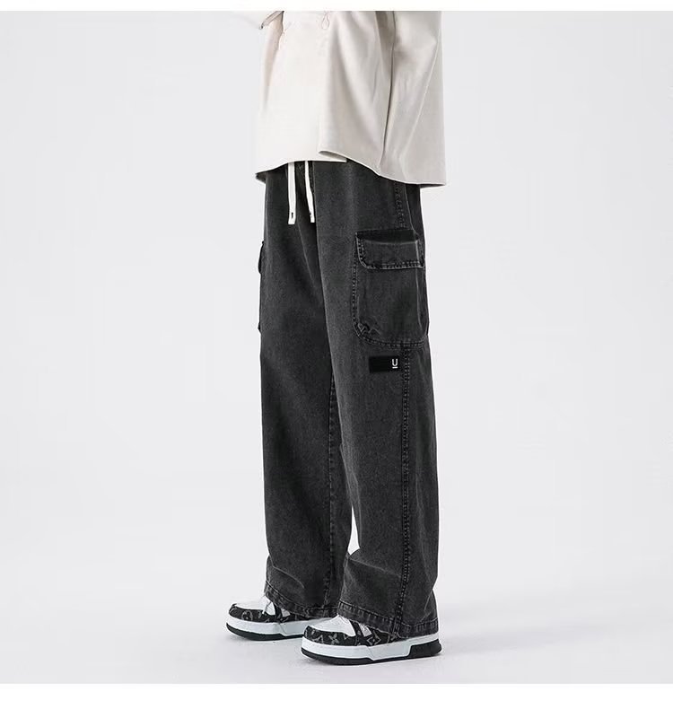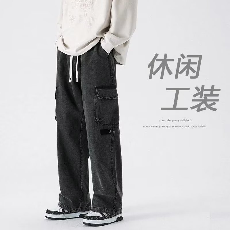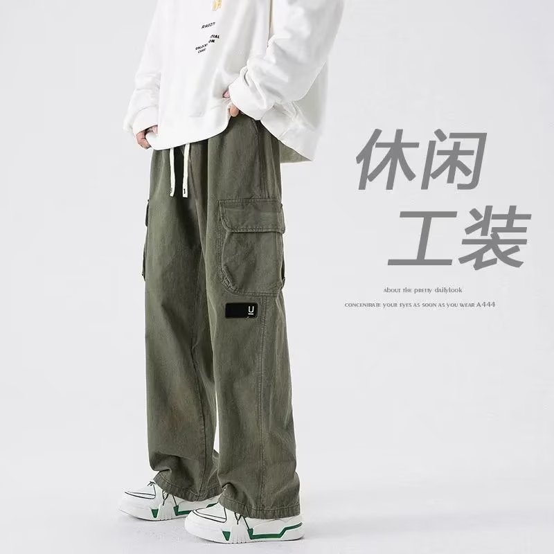 바지 남성용 봄과 가을 패션 브랜드 in 홍콩 스타일 루즈한 스포츠 트렌디 모든 매치 남성 캐주얼 바지 스트레이트 툴링스토어 가기
