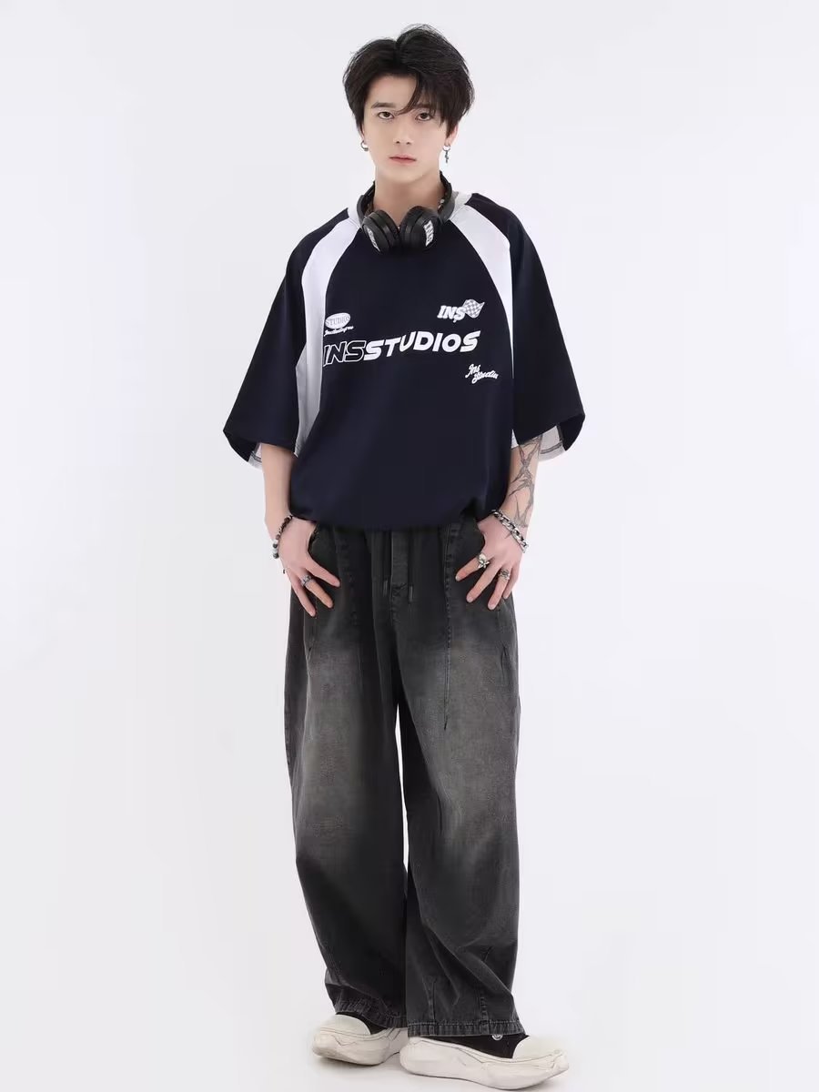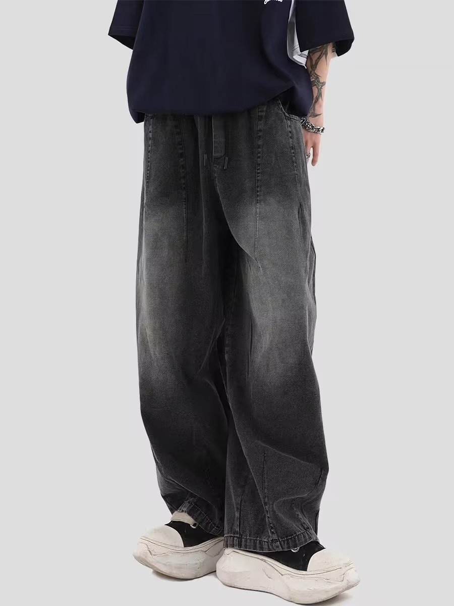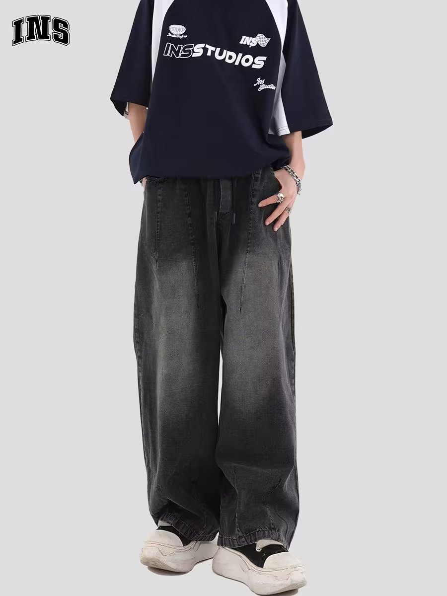 일본 도시 소년 국가 패션 브랜드 커플 미국 그라디언트 워싱 청바지 느슨한 와이드 레그 팬츠 남성용 스트레이트 팬츠
