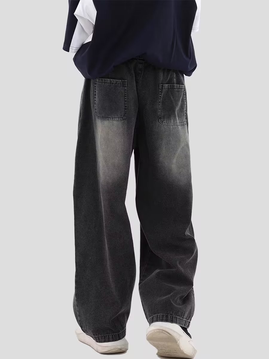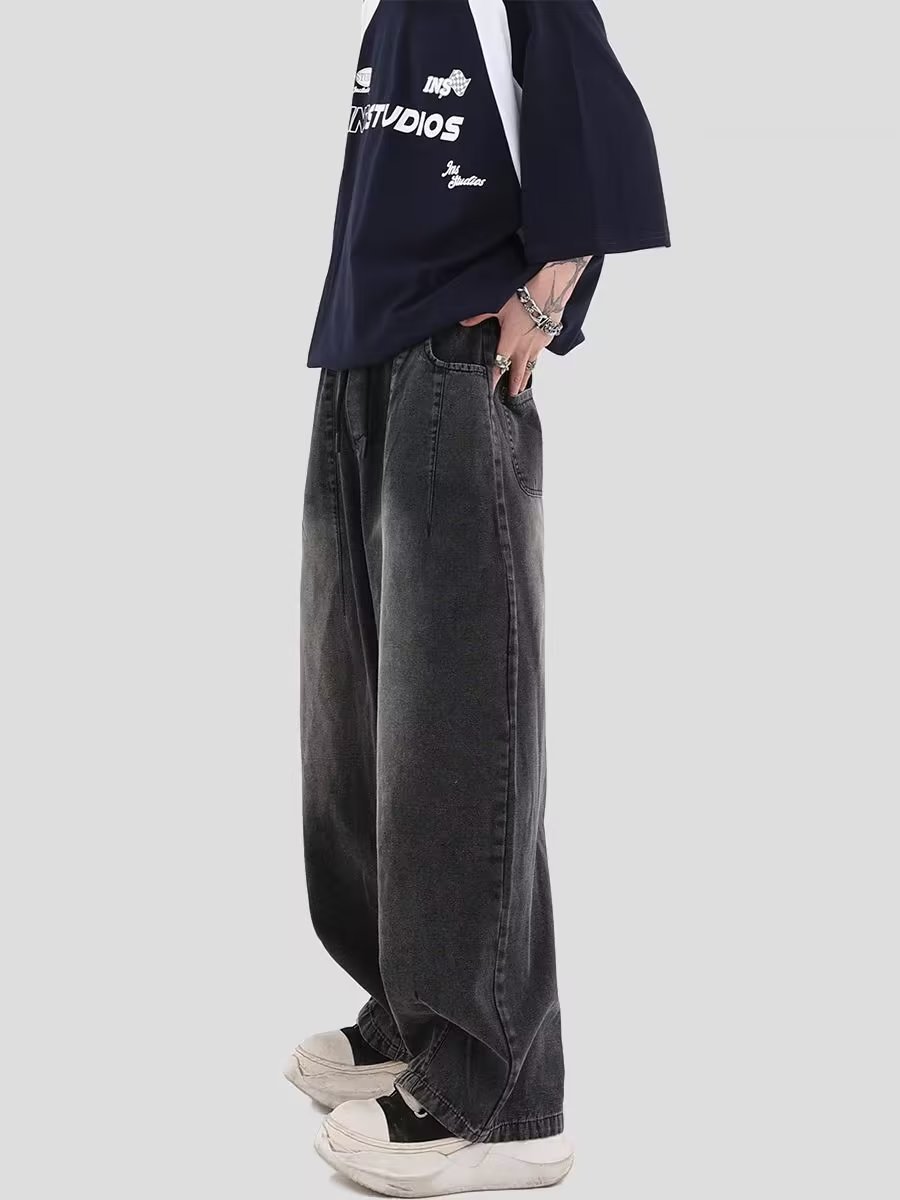 일본 도시 소년 국가 패션 브랜드 커플 미국 그라디언트 워싱 청바지 느슨한 와이드 레그 팬츠 남성용 스트레이트 팬츠스토어 가기