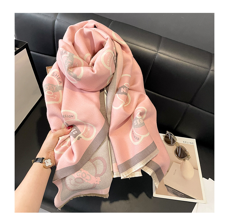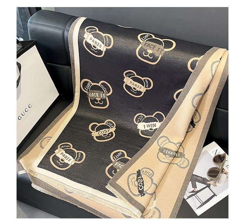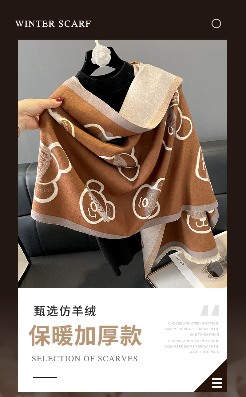 가을과 겨울 새로운 풀 울 캐시미어 따뜻한 두꺼운 스카프 곰 패턴 테두리 짧은 수염 스카프 목도리 이중 목적스토어 가기
