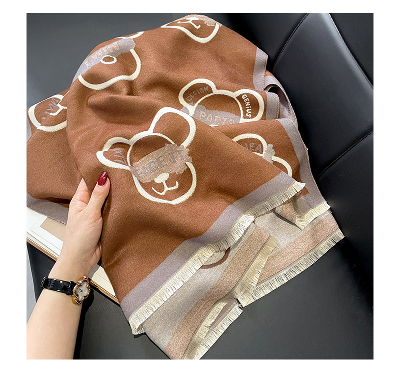 가을과 겨울 새로운 풀 울 캐시미어 따뜻한 두꺼운 스카프 곰 패턴 테두리 짧은 수염 스카프 목도리 이중 목적