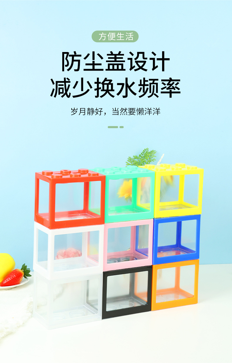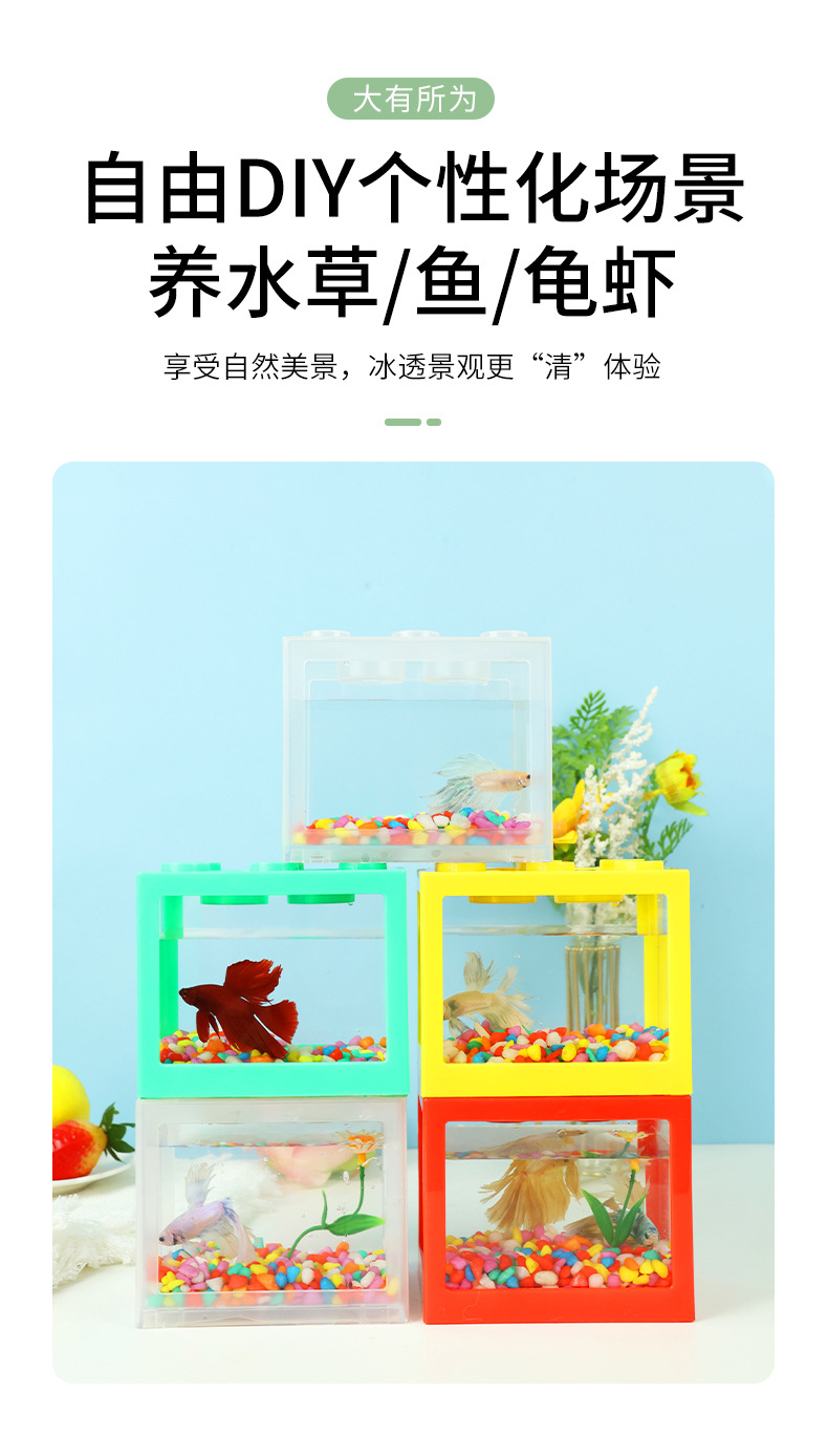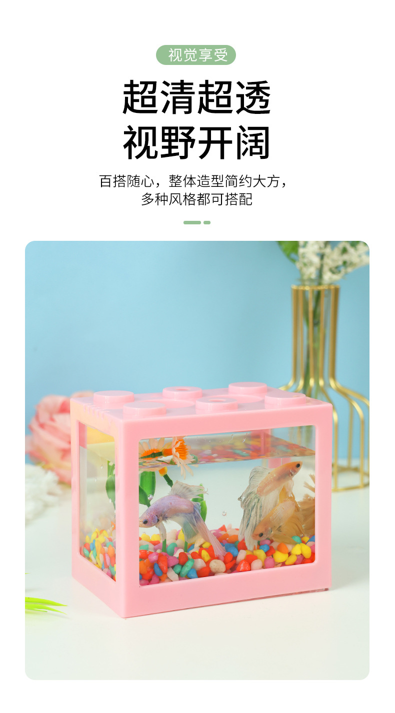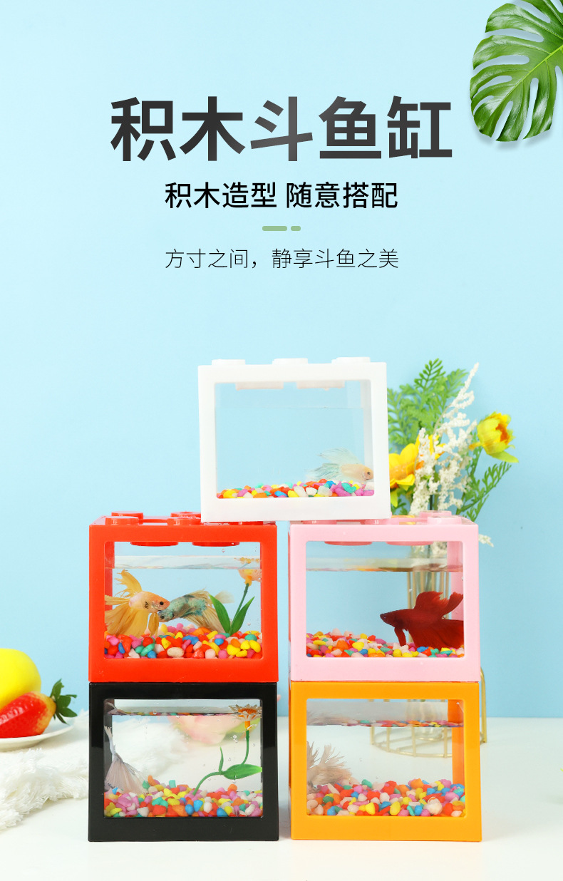 인터넷 연예인 스톨 타이 버킷 물고기 빌딩 블록 어항 미니 소형 사무실 데스크탑 조경 크리 에이 티브 시계 금붕어 탱크스토어 가기
