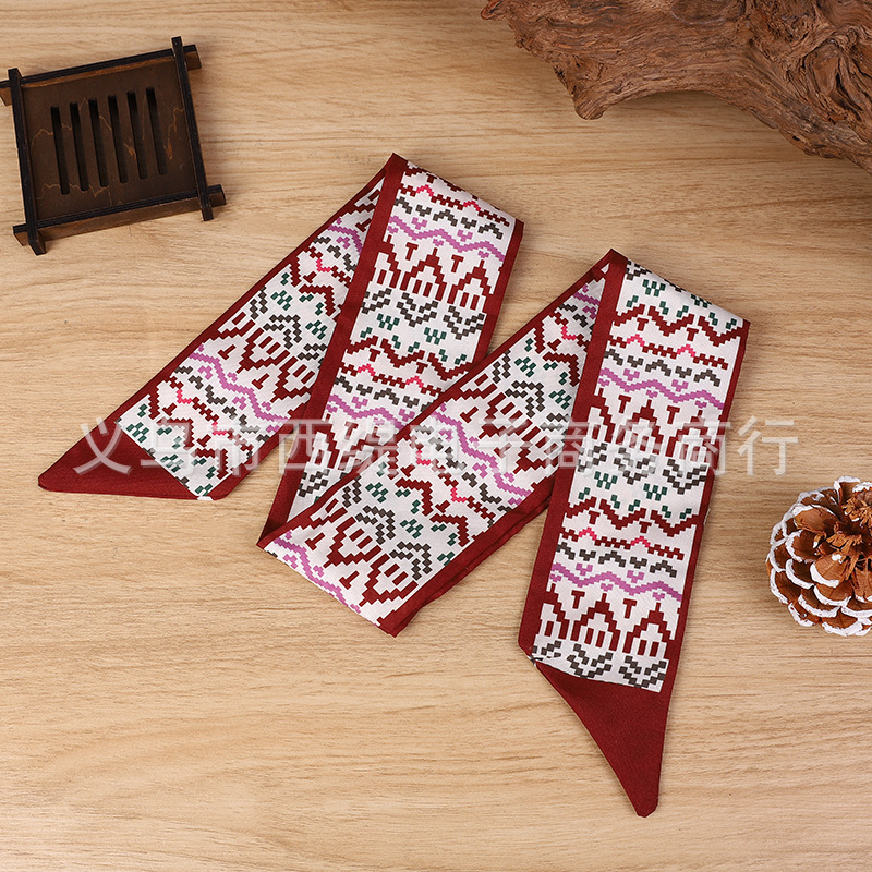 좁은 실크 스카프 인쇄 리본 다목적 헤어 밴드 넥타이 천 벨트 벨트 신선한 여러 가지 빛깔의 스카프 부드러운 리본 액세서리