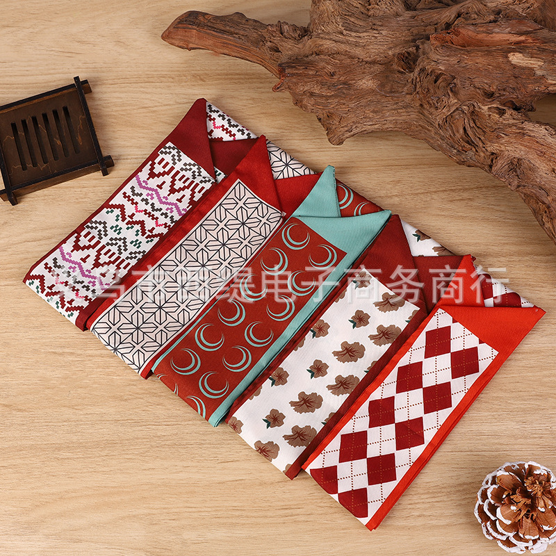 좁은 실크 스카프 인쇄 리본 다목적 헤어 밴드 넥타이 천 벨트 벨트 신선한 여러 가지 빛깔의 스카프 부드러운 리본 액세서리스토어 가기