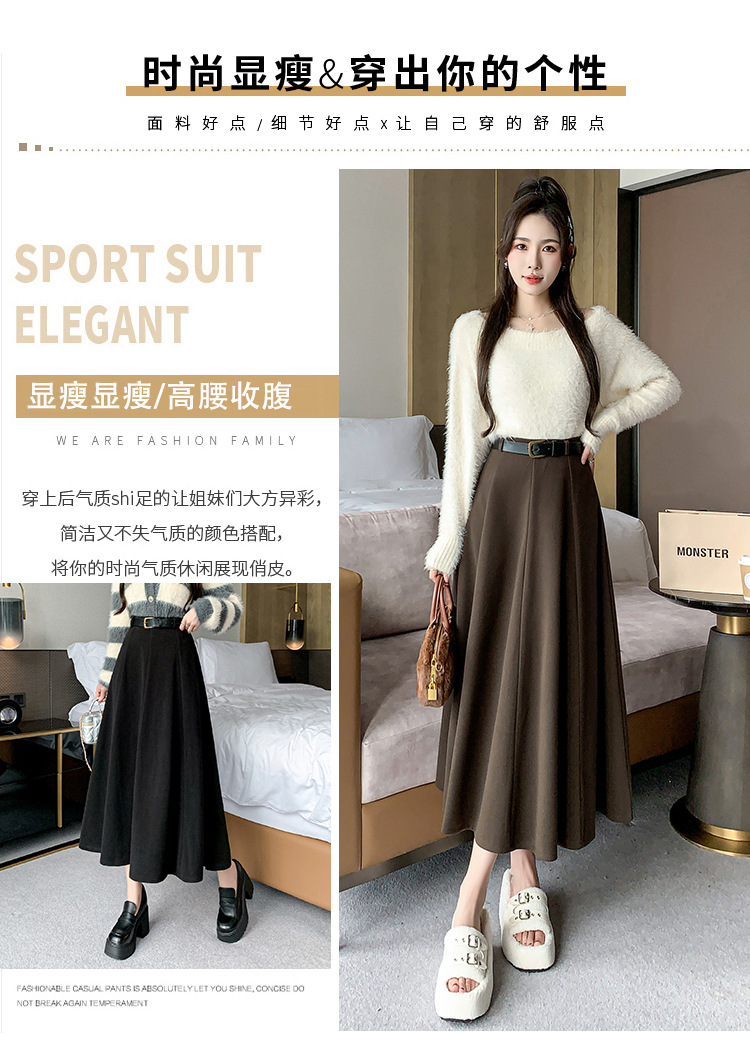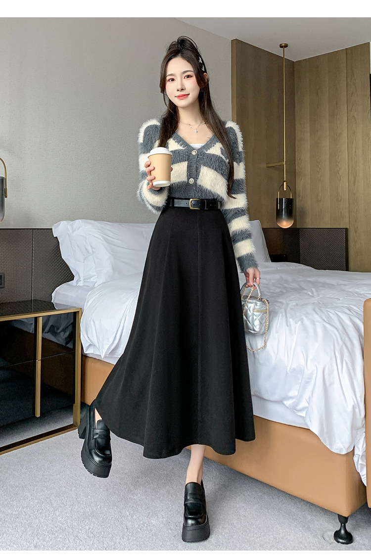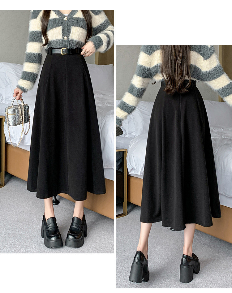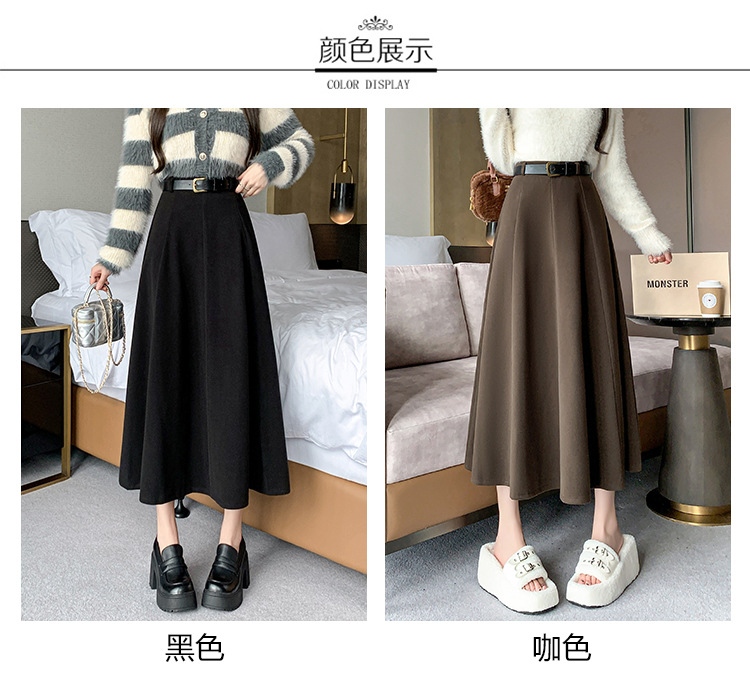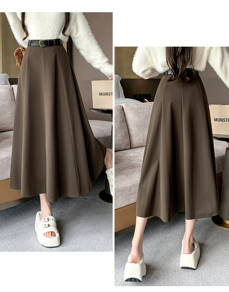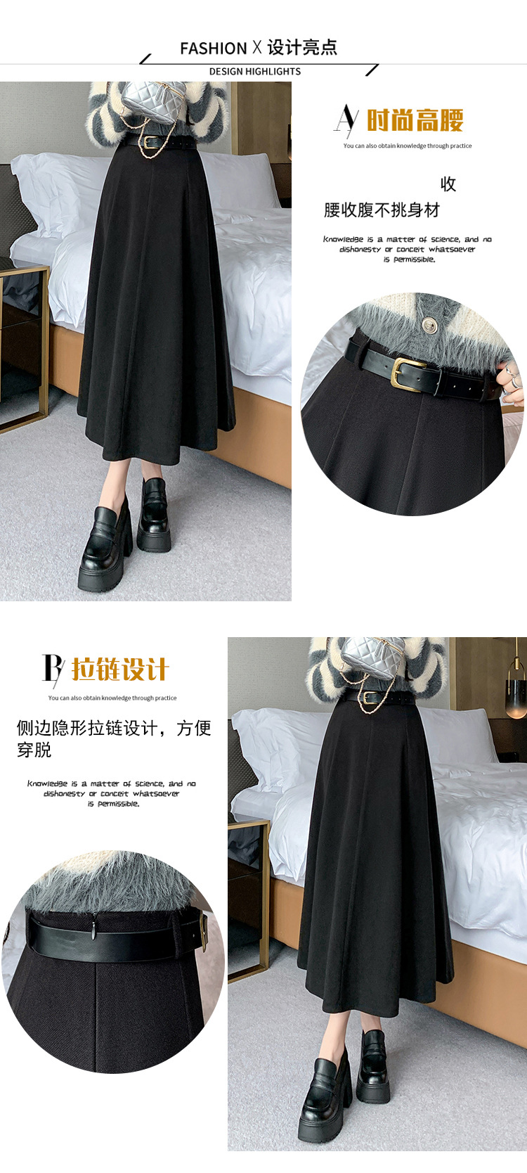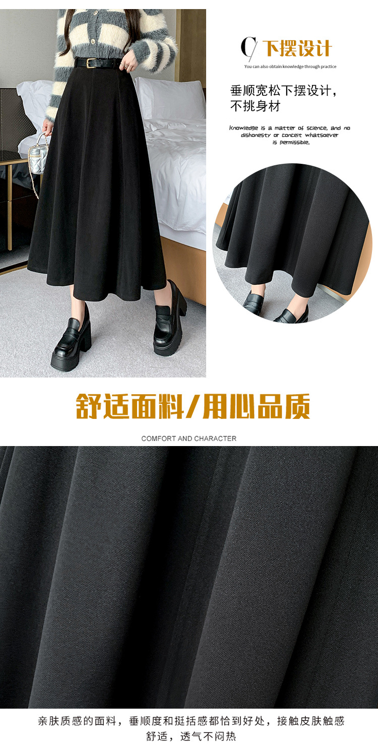롱 스커트 여성용 2023 겨울 새로운 하이 웨이스트 모직 큰 스윙 스티칭 엉덩이 커버 슬리밍 모직 중간 길이 스커트