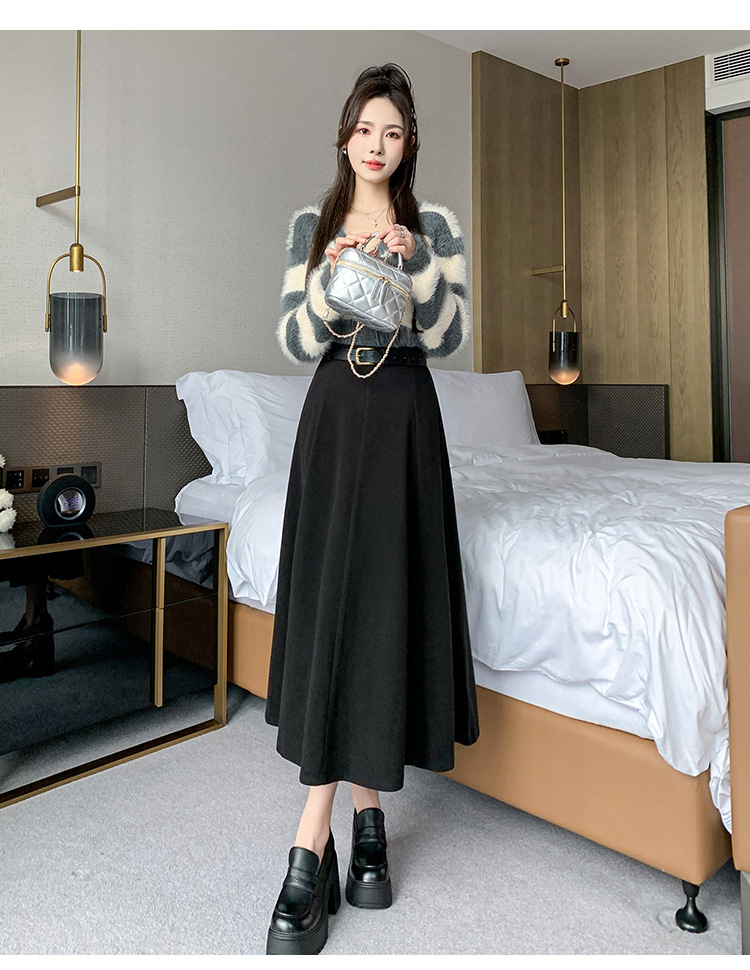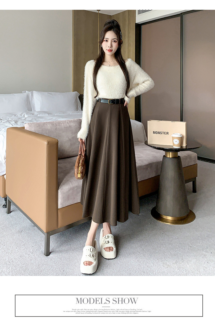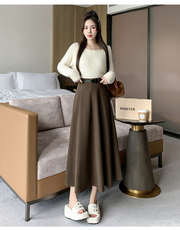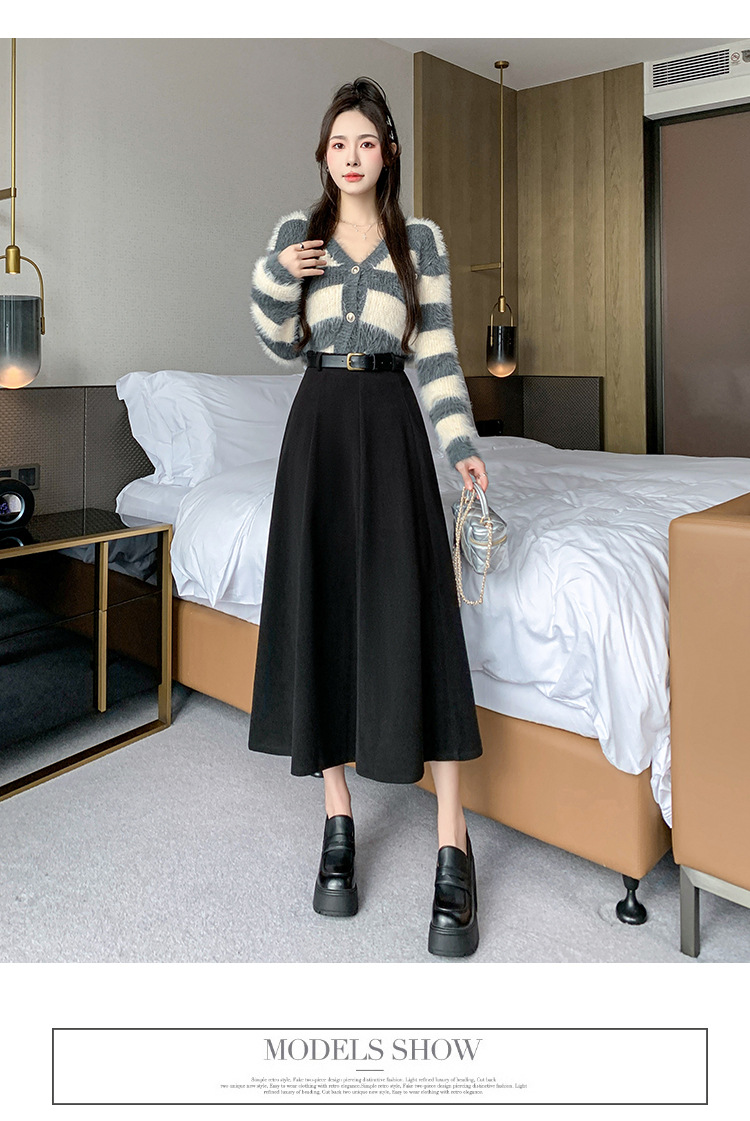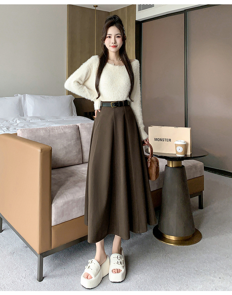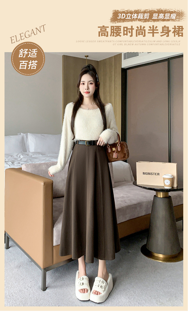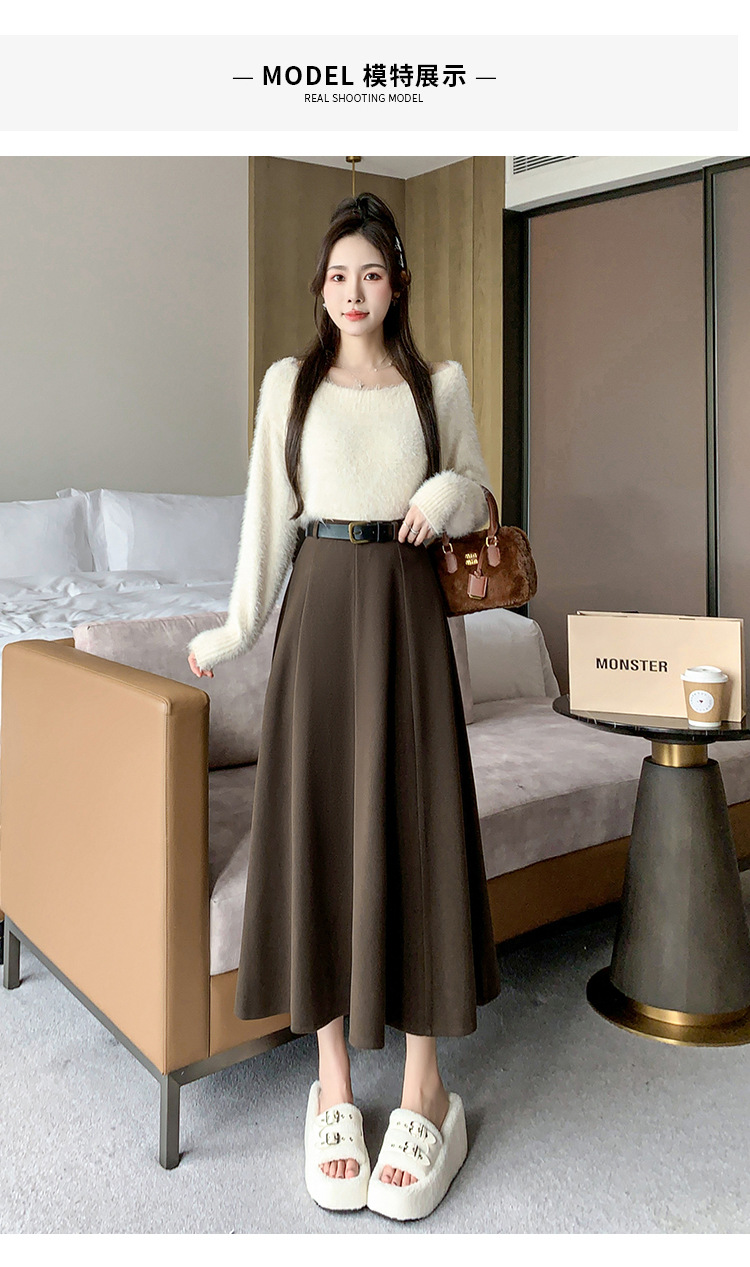 롱 스커트 여성용 2023 겨울 새로운 하이 웨이스트 모직 큰 스윙 스티칭 엉덩이 커버 슬리밍 모직 중간 길이 스커트