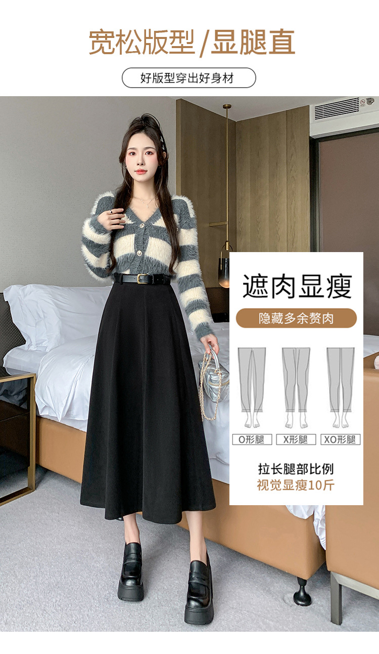 롱 스커트 여성용 2023 겨울 새로운 하이 웨이스트 모직 큰 스윙 스티칭 엉덩이 커버 슬리밍 모직 중간 길이 스커트스토어 가기