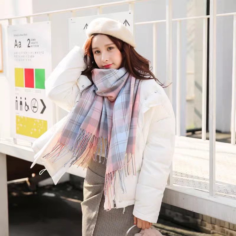 새로운 격자 무늬 스카프 여성의 겨울 한국 스타일 모든 매치 커플 스카프 귀여운 소녀의 일본식 두꺼운 따뜻한 숄 남성용스토어 가기