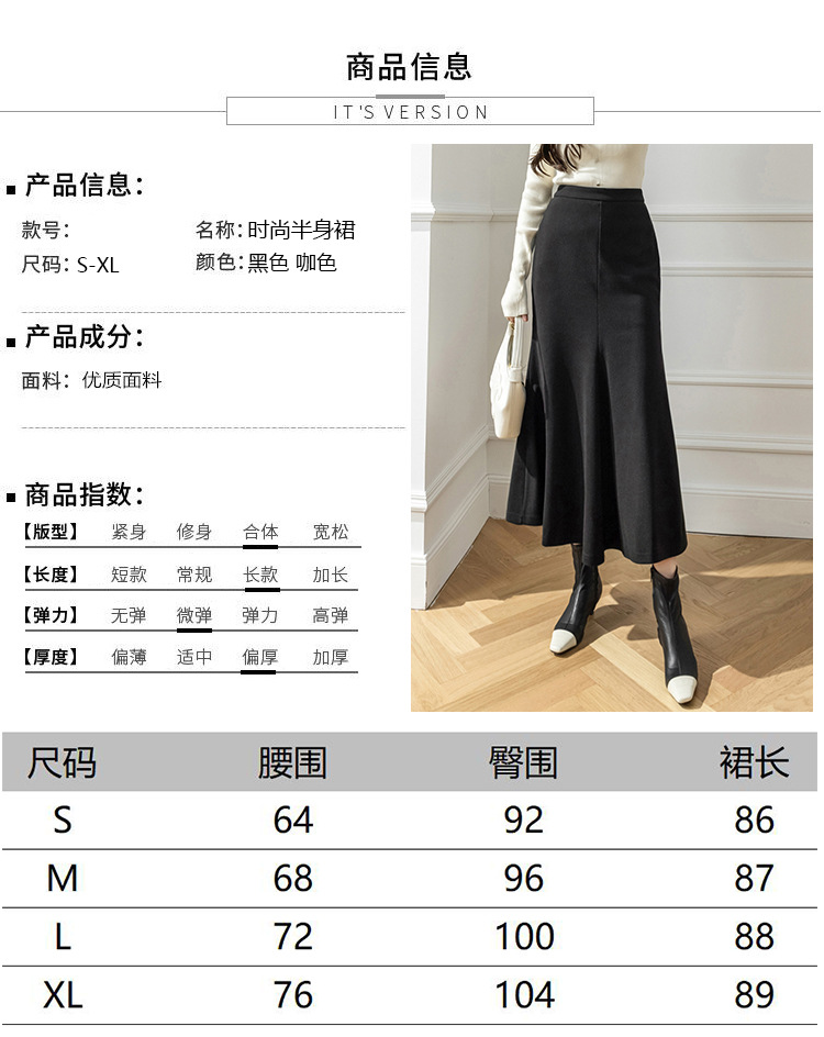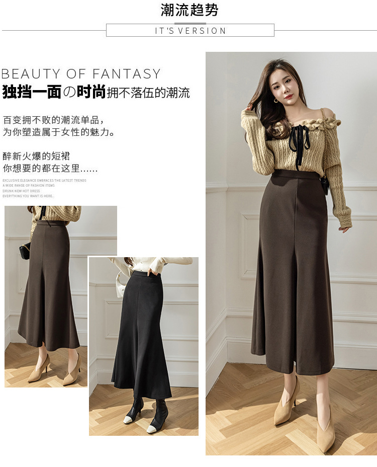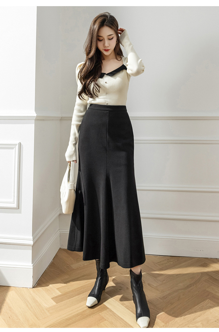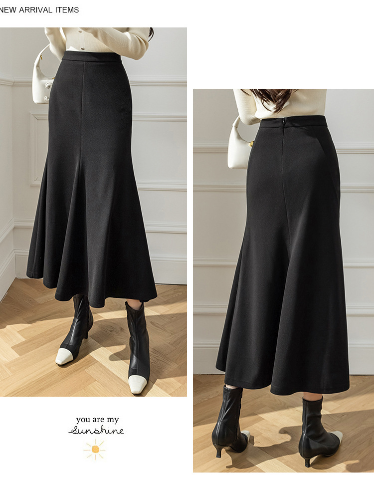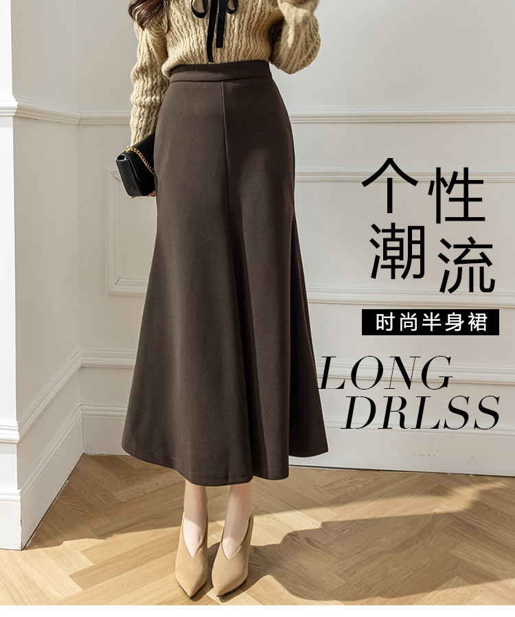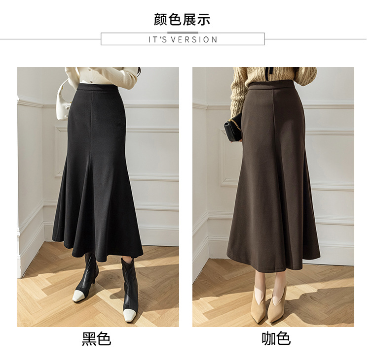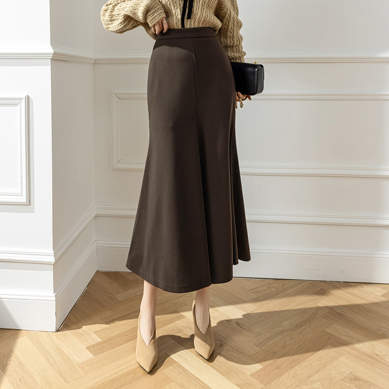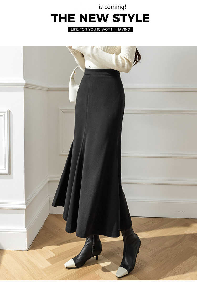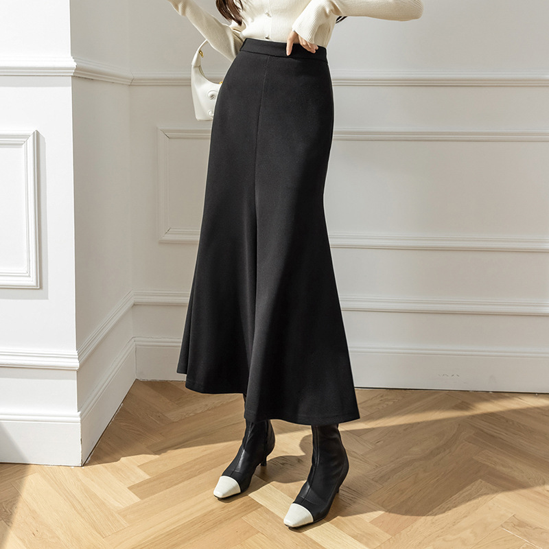 모직 롱 스커트 모든 매치 피쉬 테일 스커트 2023 겨울 새로운 불규칙한 슬리밍 롱 스커트 여성스토어 가기