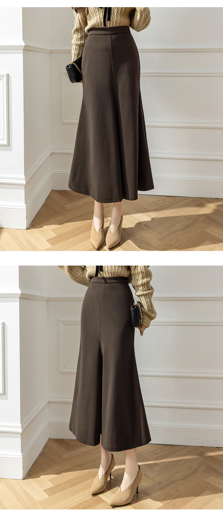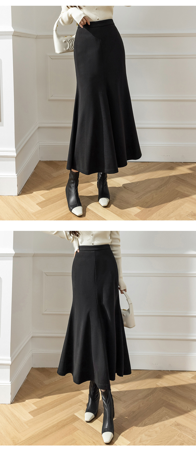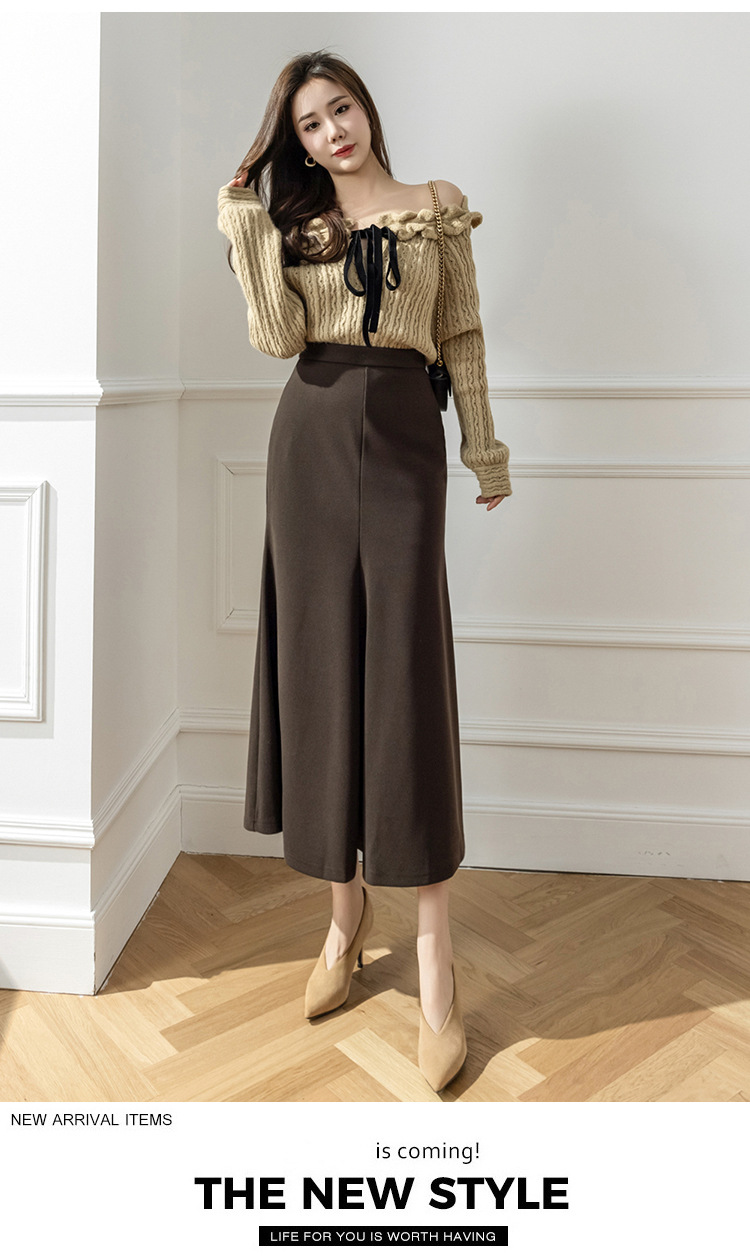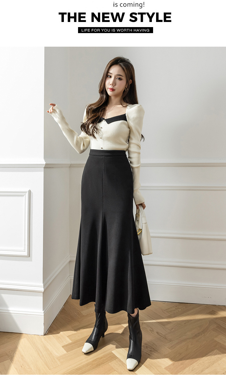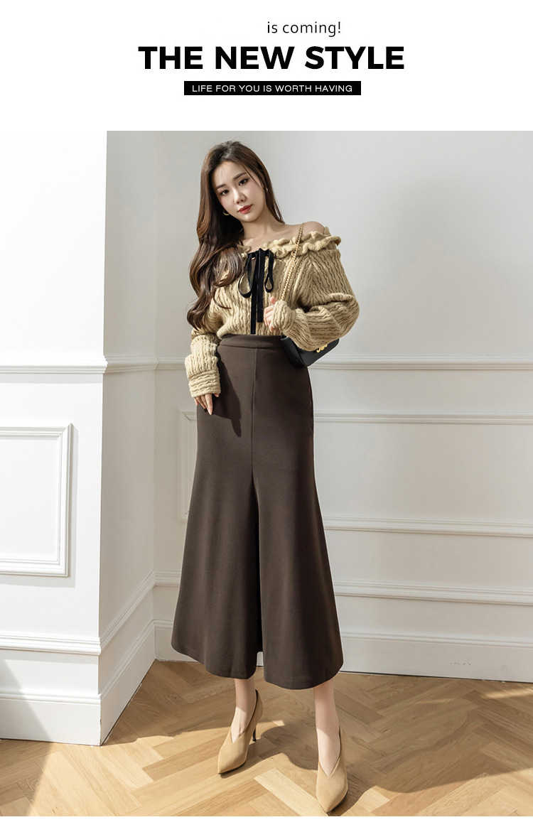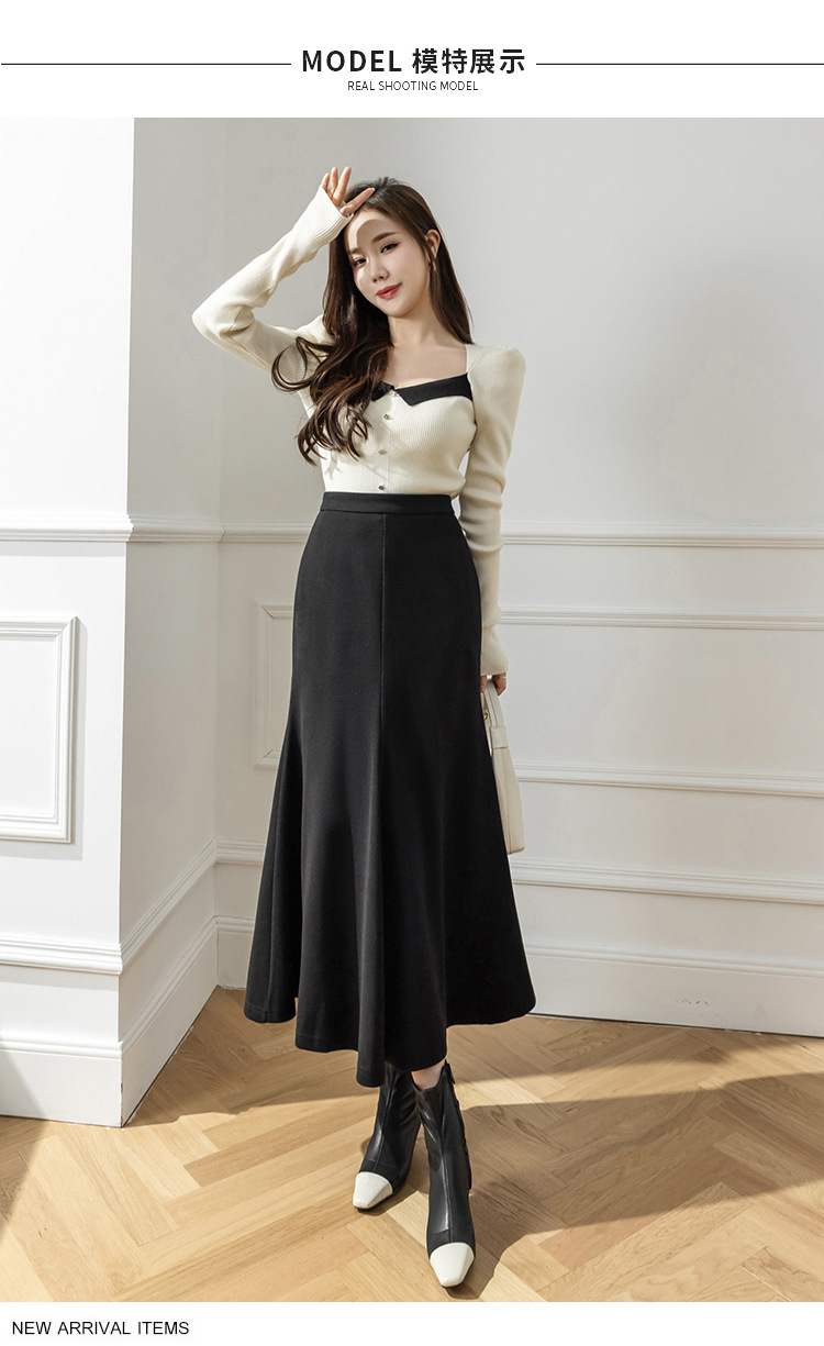 모직 롱 스커트 모든 매치 피쉬 테일 스커트 2023 겨울 새로운 불규칙한 슬리밍 롱 스커트 여성스토어 가기