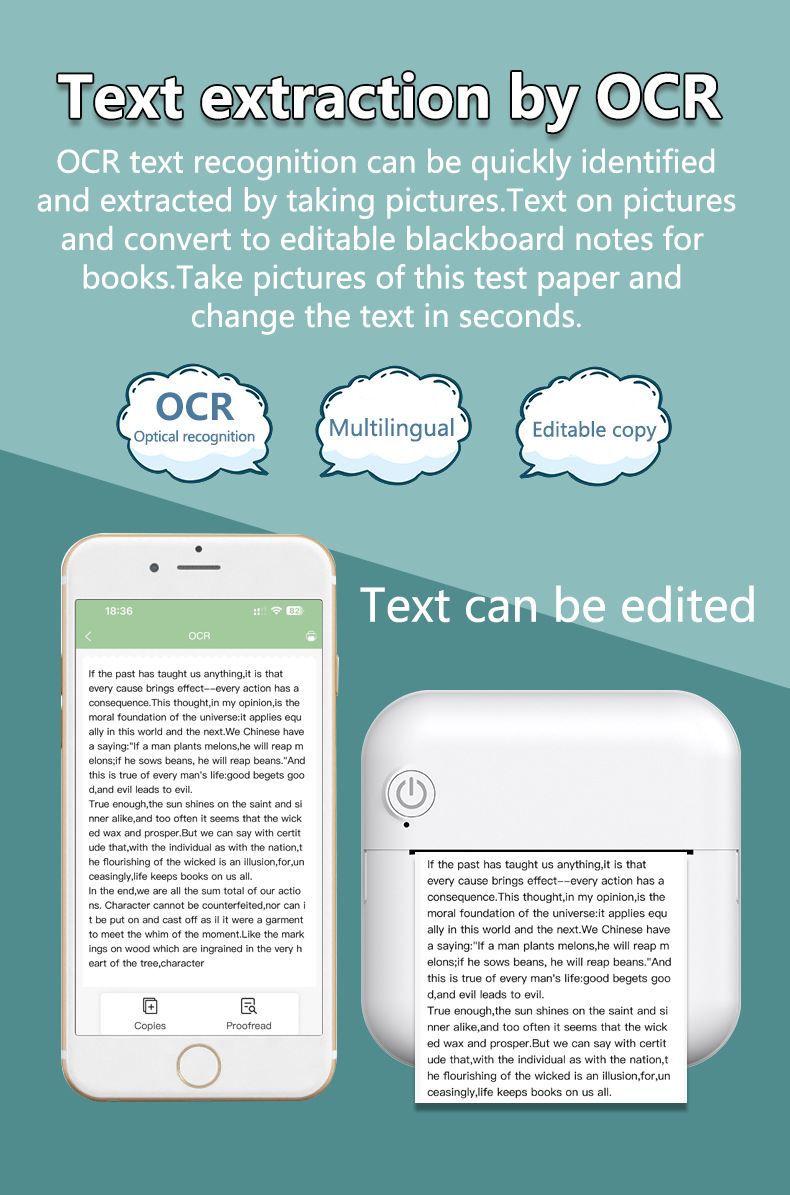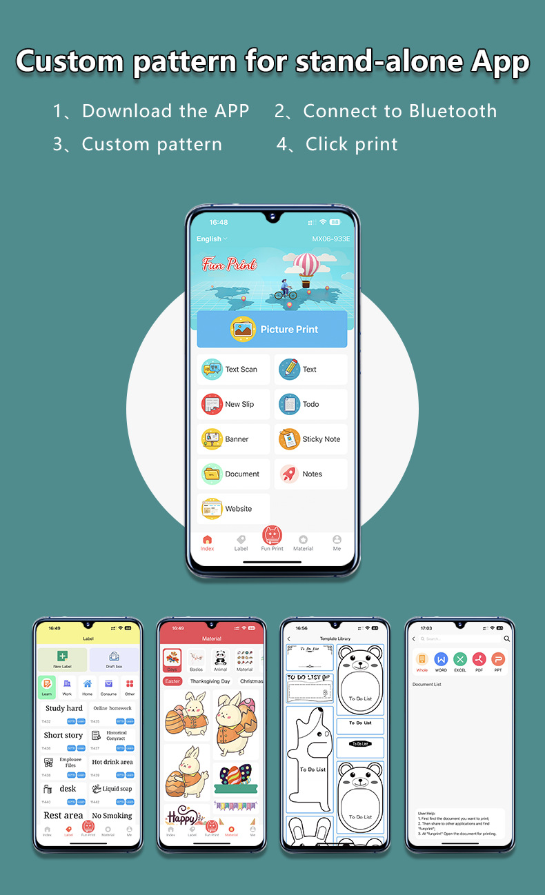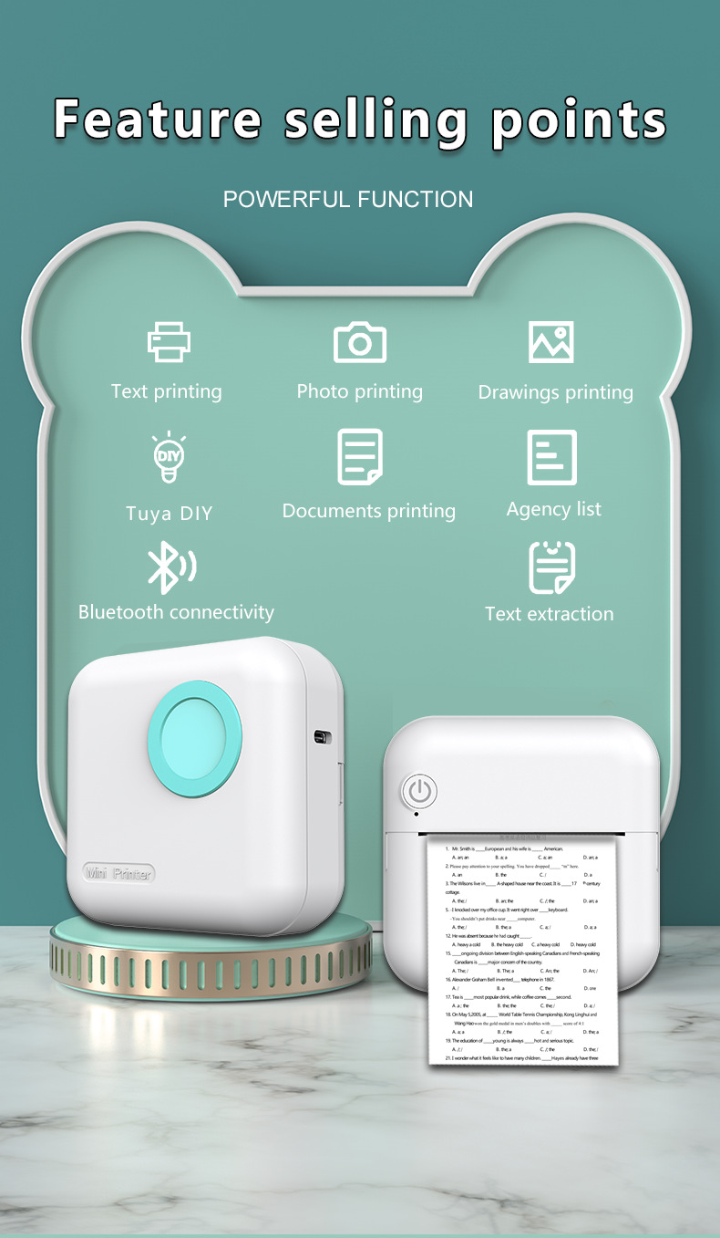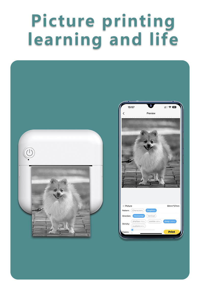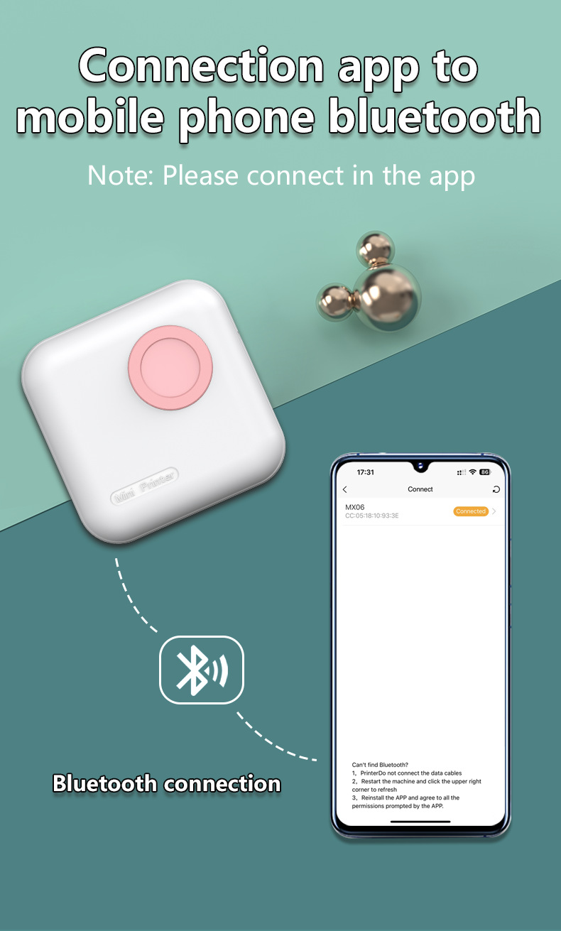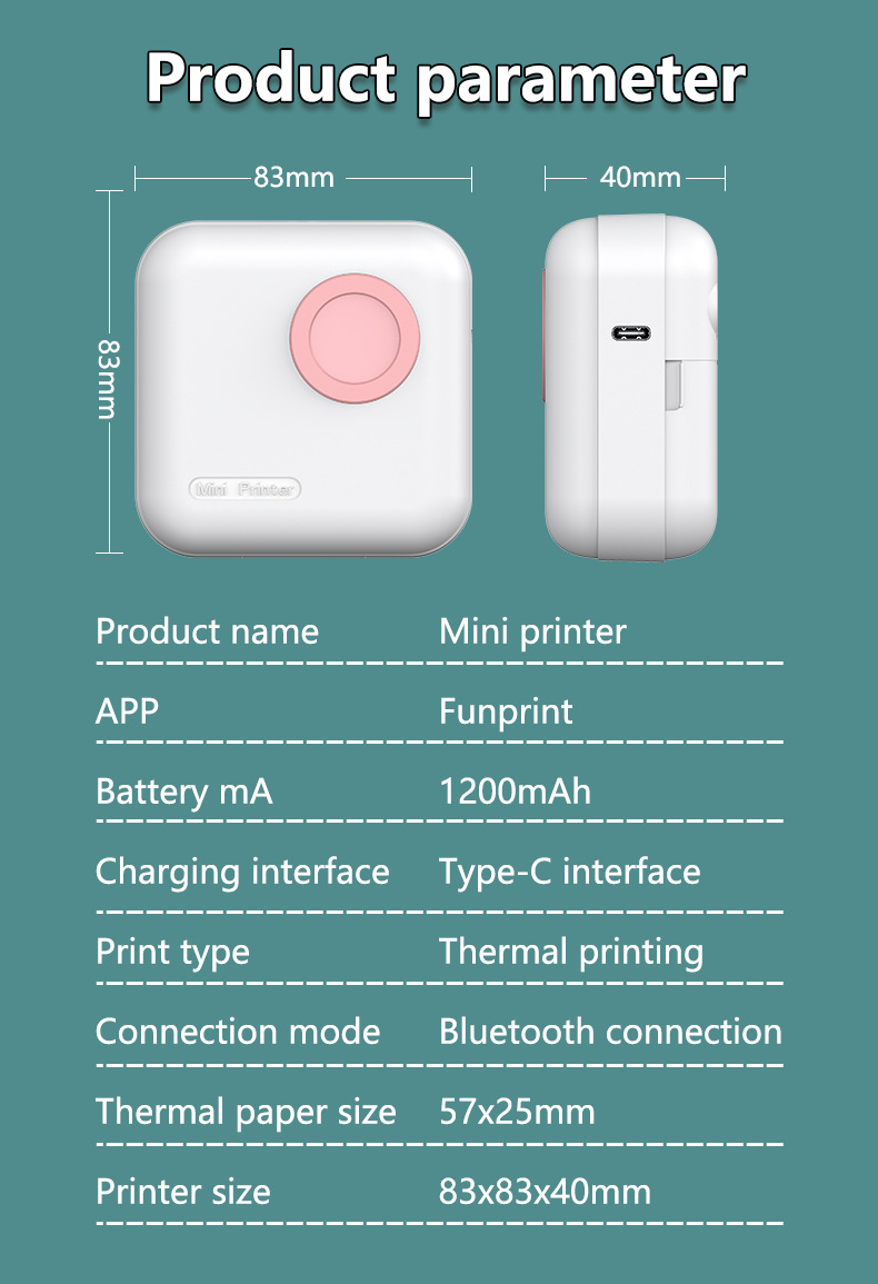 连接方式:蓝牙连接,热敏无墨黑白打印