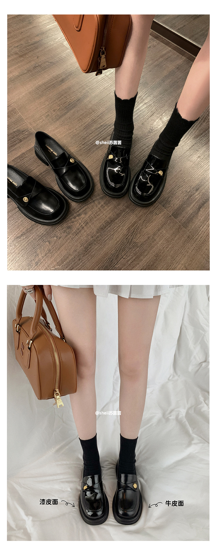 소가죽 버전 ~ Su Yinyin 작은 금화 두꺼운 바닥 단계 게으른 두꺼운 뒤꿈치 전체 가죽 로퍼 여성용 소형 가죽 신발
