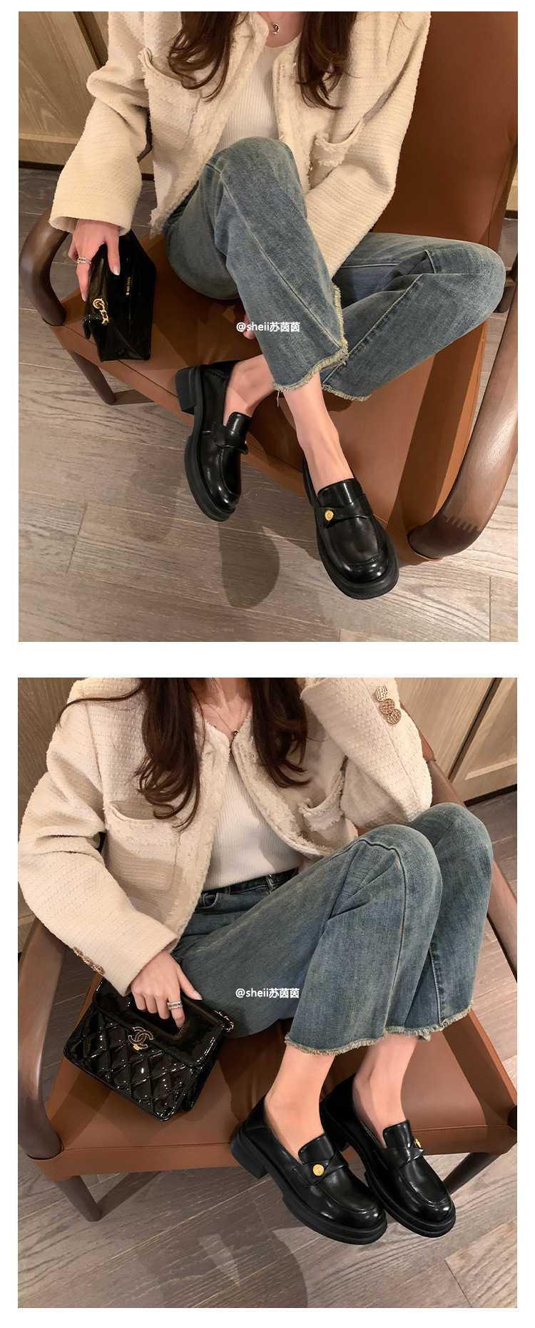 소가죽 버전 ~ Su Yinyin 작은 금화 두꺼운 바닥 단계 게으른 두꺼운 뒤꿈치 전체 가죽 로퍼 여성용 소형 가죽 신발스토어 가기