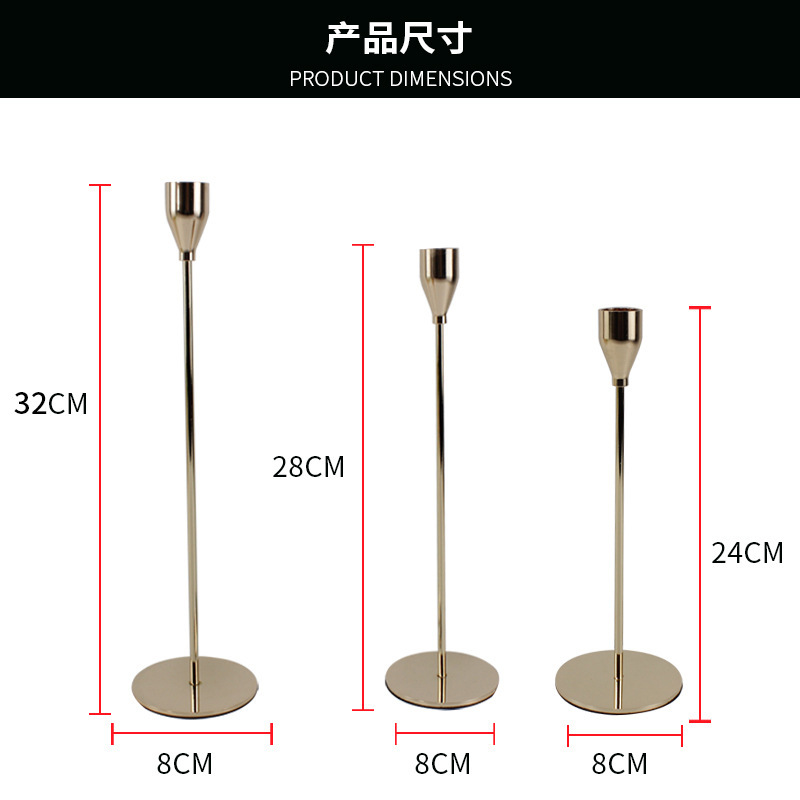 유럽식 연철 촛대 3 종 장식품 가벼운 고급 간단한 결혼식 전기 도금 장식 홈 촛불 저녁 장식품