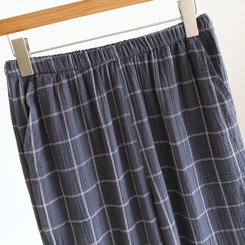인쇄되지 않은 스타일의 새로운 남성면 거즈 잠옷 봄과 가을 면화 홈 착용 세트 긴 소매 바지 공장 직접 판매스토어 가기