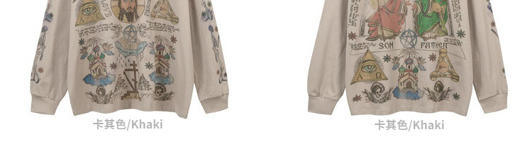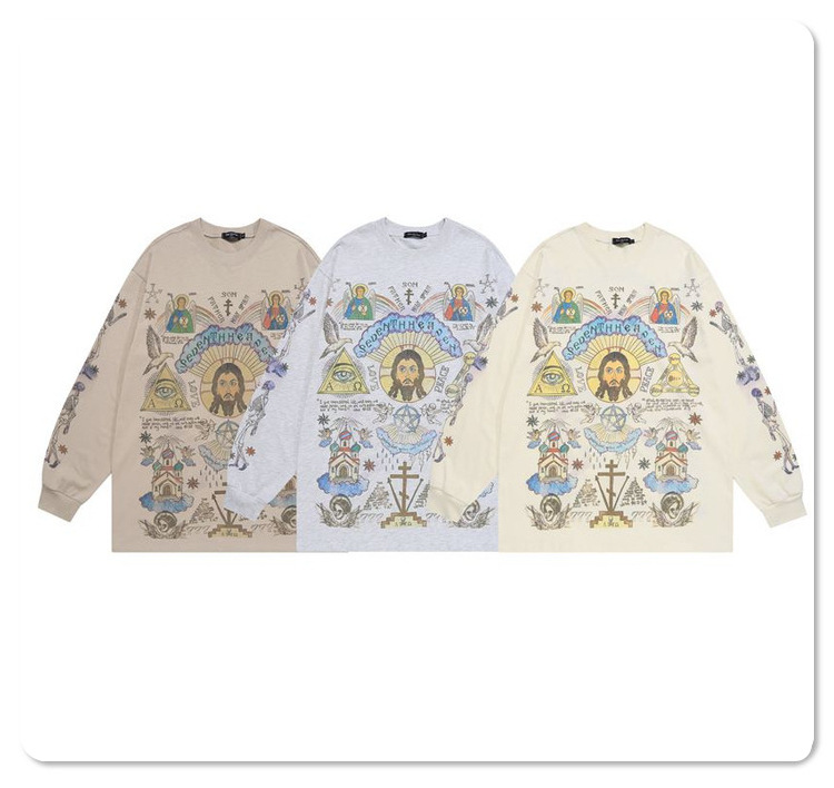 대외 무역 트렌디 브랜드 복고풍 미국 스트리트 캐주얼 유럽과 미국 프린트 다목적 루즈 긴팔 라운드 넥 스웨트 셔츠 남성용 풀오버