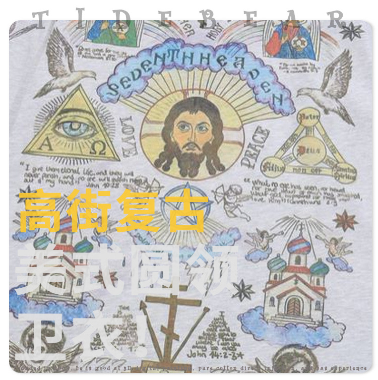 대외 무역 트렌디 브랜드 복고풍 미국 스트리트 캐주얼 유럽과 미국 프린트 다목적 루즈 긴팔 라운드 넥 스웨트 셔츠 남성용 풀오버스토어 가기