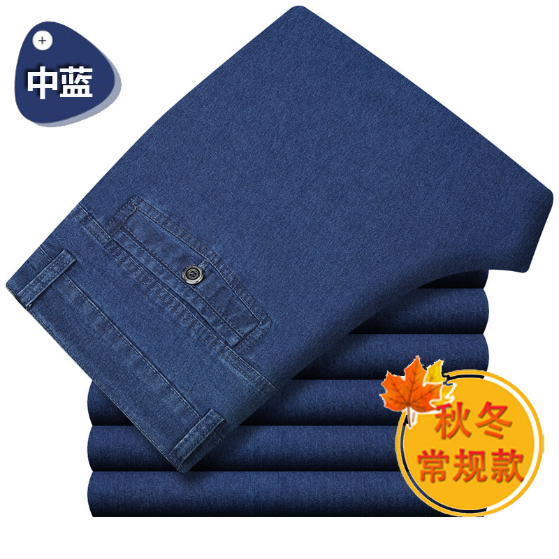 중년 및 노인 얇은 청바지 남자의 느슨한 높은 허리 깊은 가랑이 스트레치 아버지 봄과 여름 스트레이트 플러스 사이즈 바지