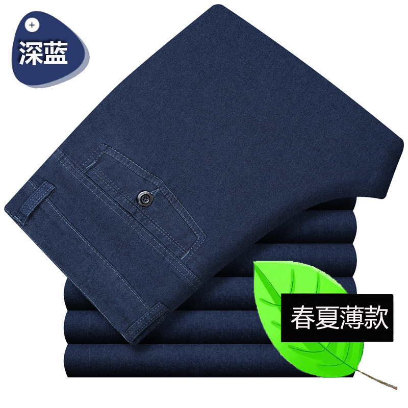 중년 및 노인 얇은 청바지 남자의 느슨한 높은 허리 깊은 가랑이 스트레치 아버지 봄과 여름 스트레이트 플러스 사이즈 바지스토어 가기