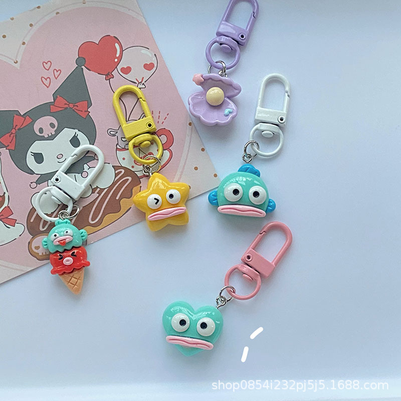Sanrio 큰 입 못생긴 물고기 열쇠 고리 틈새 못생긴 물고기 땀 학생 책가방 펜던트 여자 친구 선물 액세서리스토어 가기