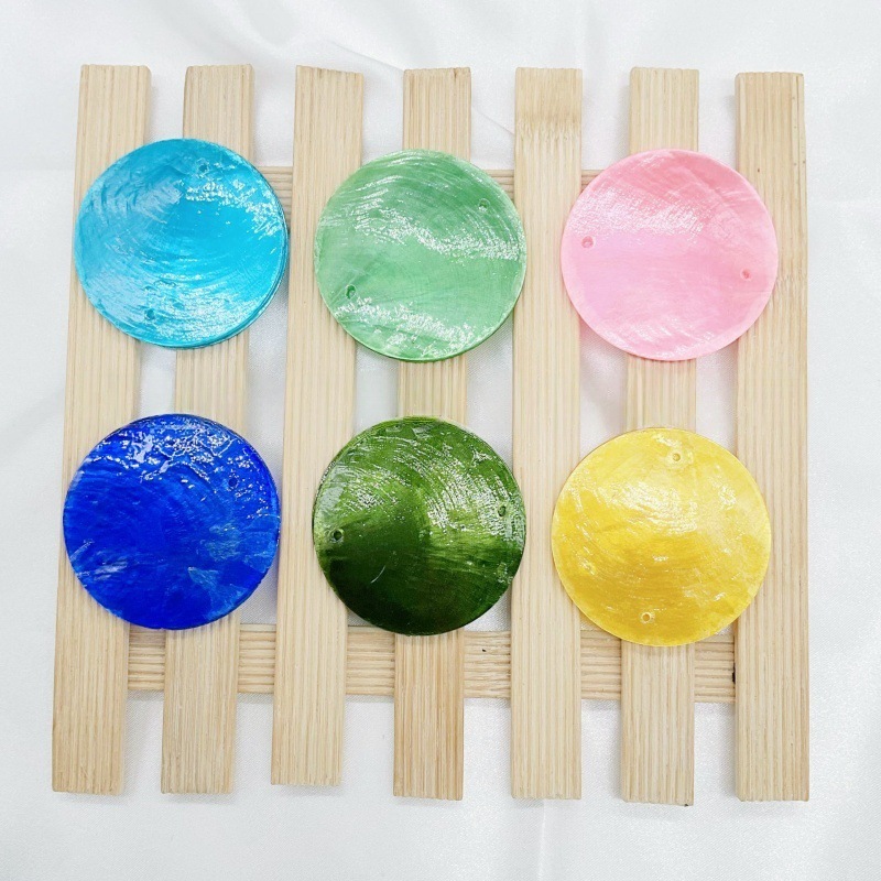 5cm 이중 구멍 컬러 미러 쉘 디스크 DIY 쉘 페인팅 웨딩 fritilary 필름 컬러 쉘 도어 커튼 바람 차임 재료
