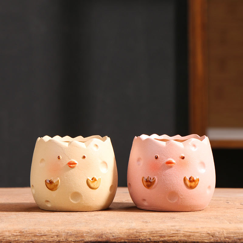 만화 작은 달걀 껍질 다육 화분 공장 직접 점토 석기 간단한 도자기 냄비 스몰 사이즈 뿌리 제어 세라믹 냄비 도매