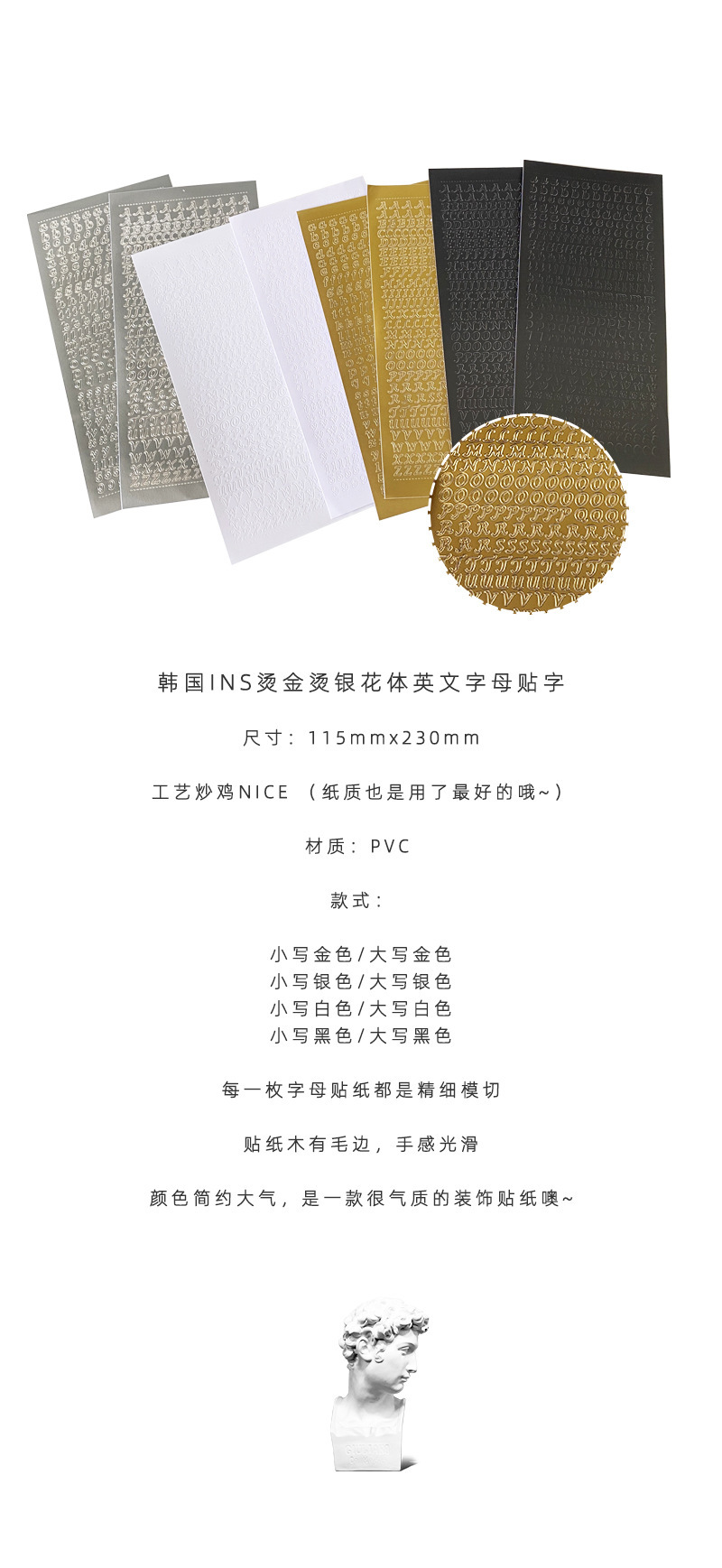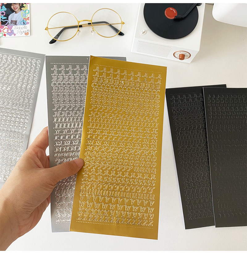 한국 금 실버 영어 편지 스티커 장식 재료 DIY 콜라주 폴라로이드 사진 스타 스티커