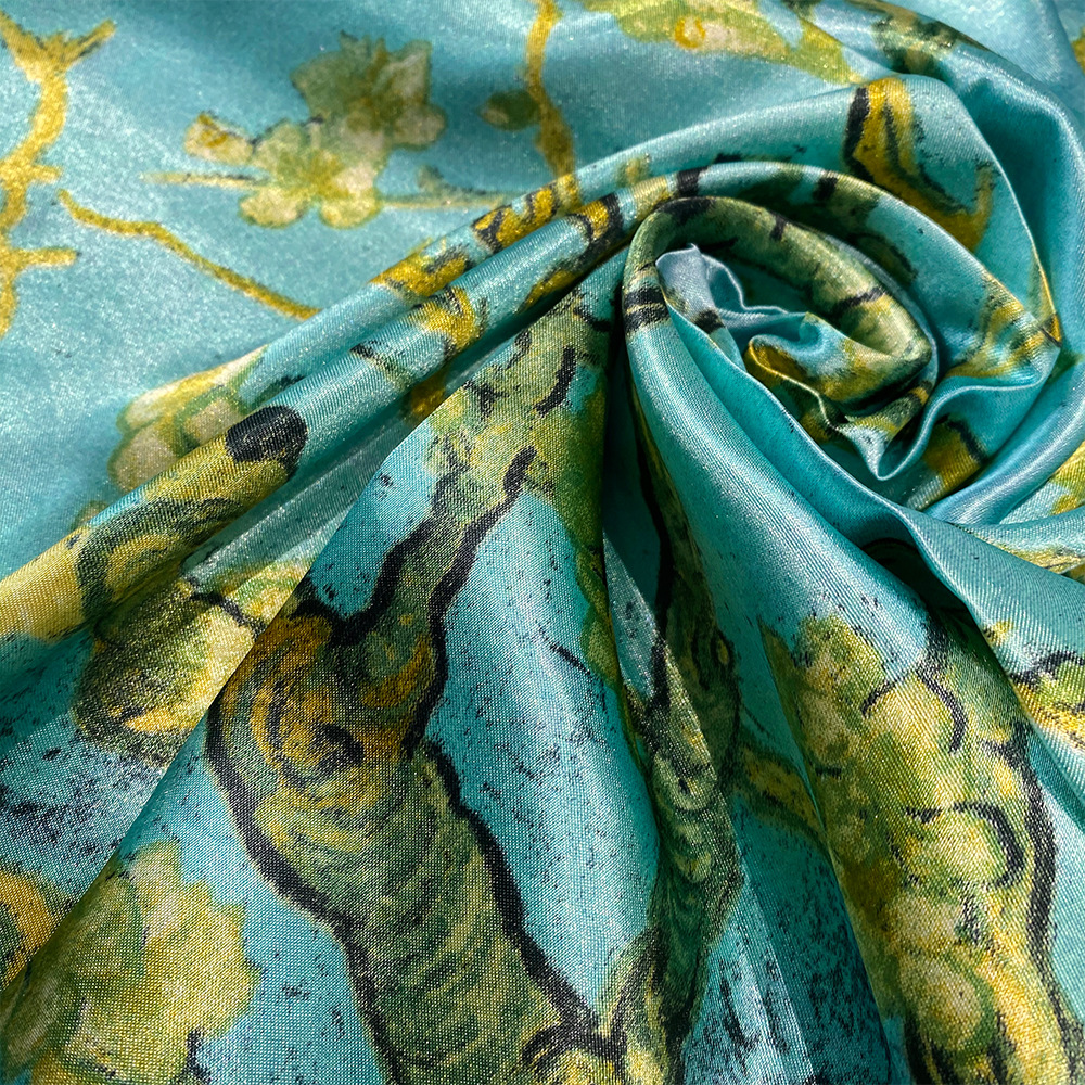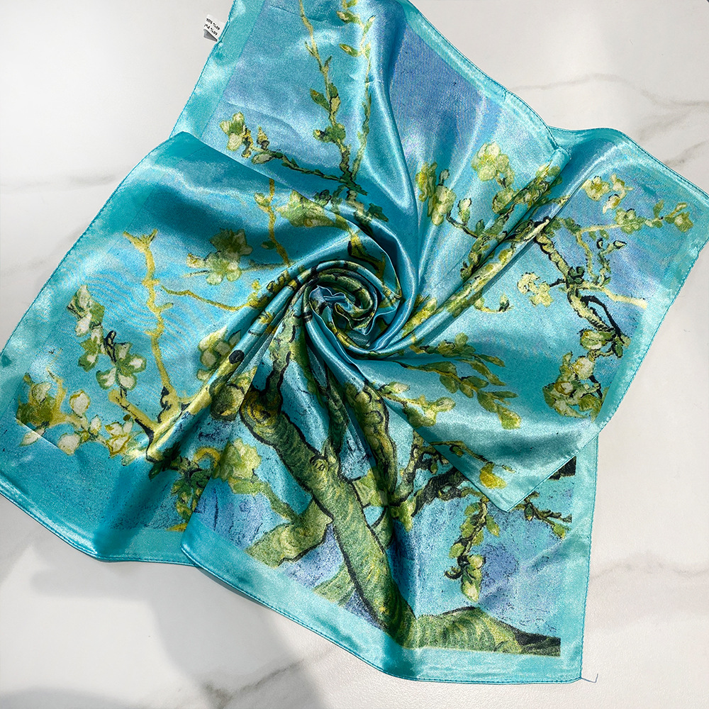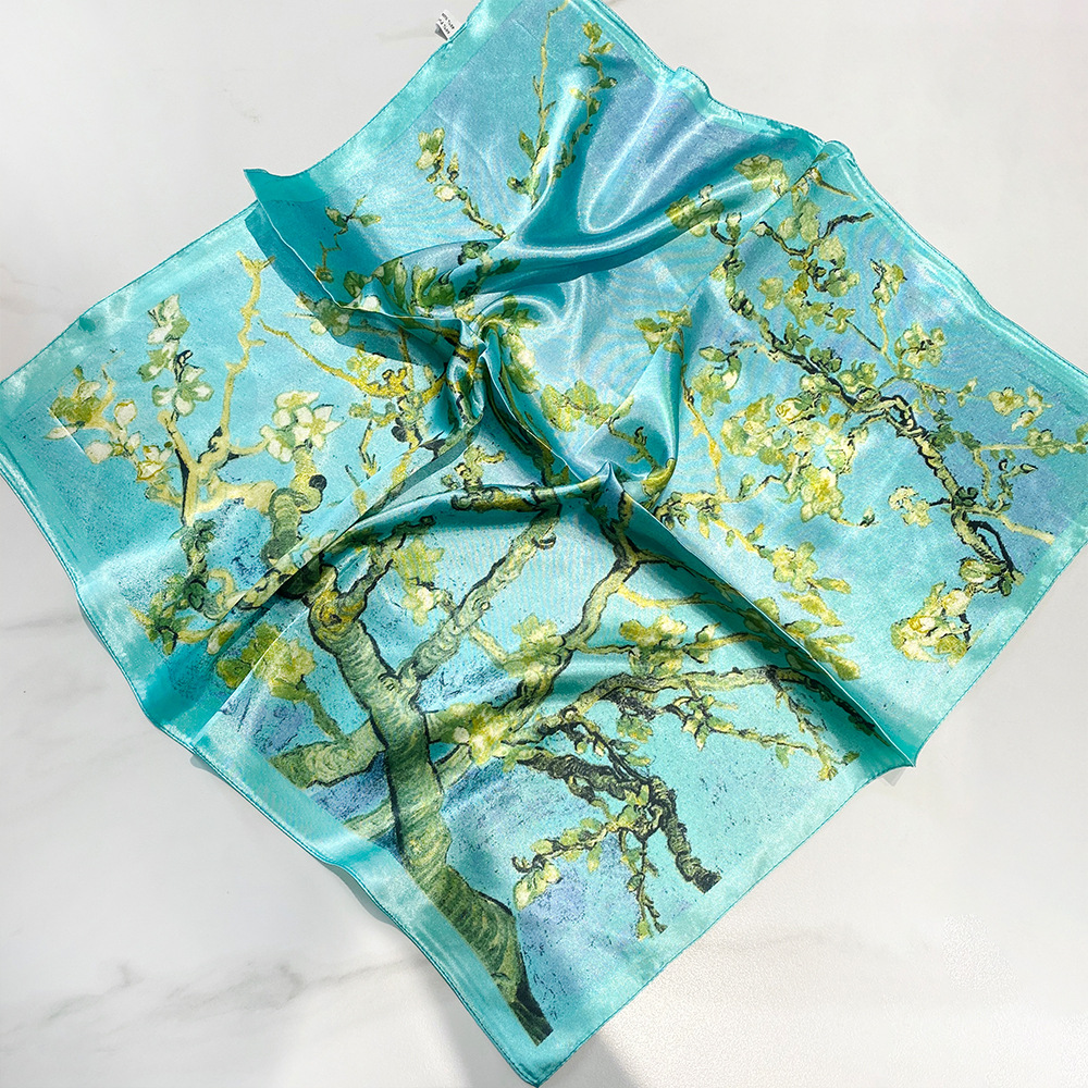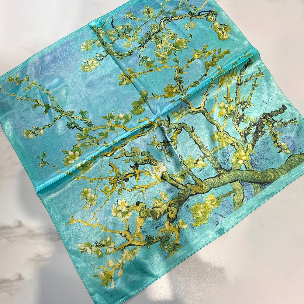 반 고흐 유화 해바라기 꽃 능직 실크 스카프 봄과 가을 얇은 새틴 새틴 모조 실크 작은 사각형 스카프