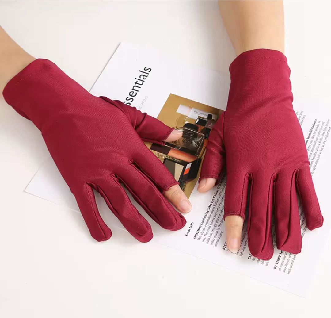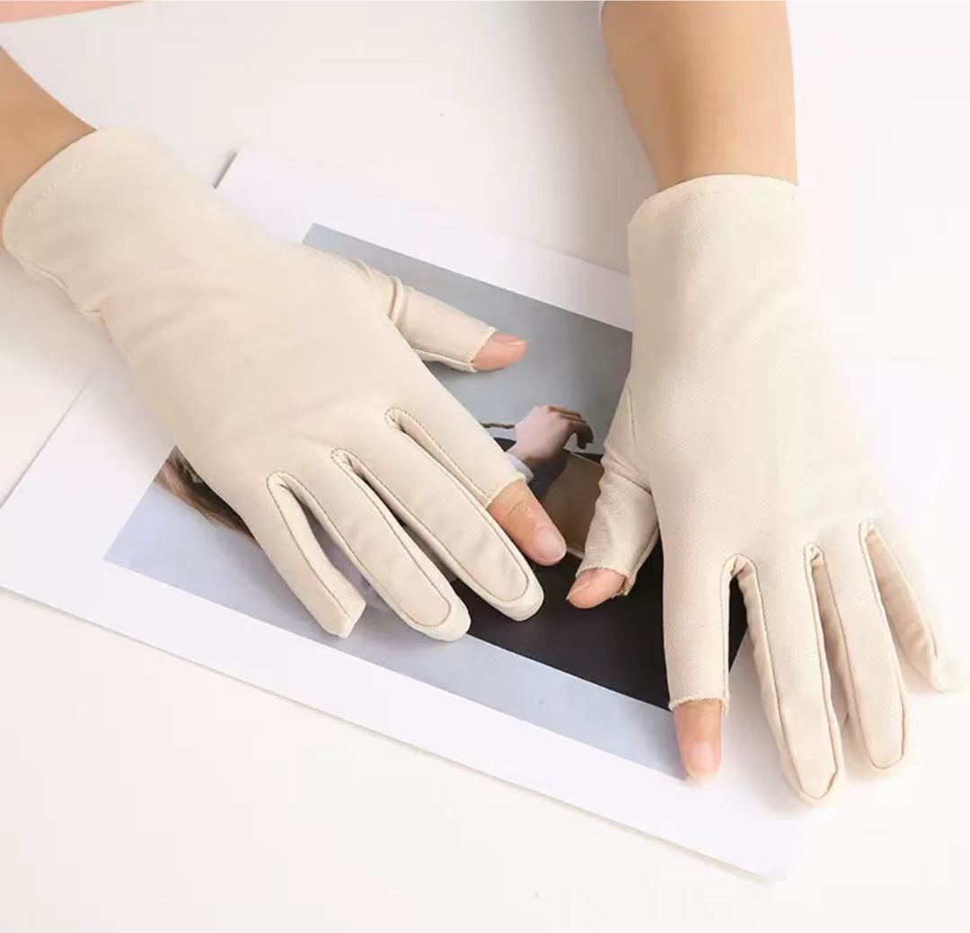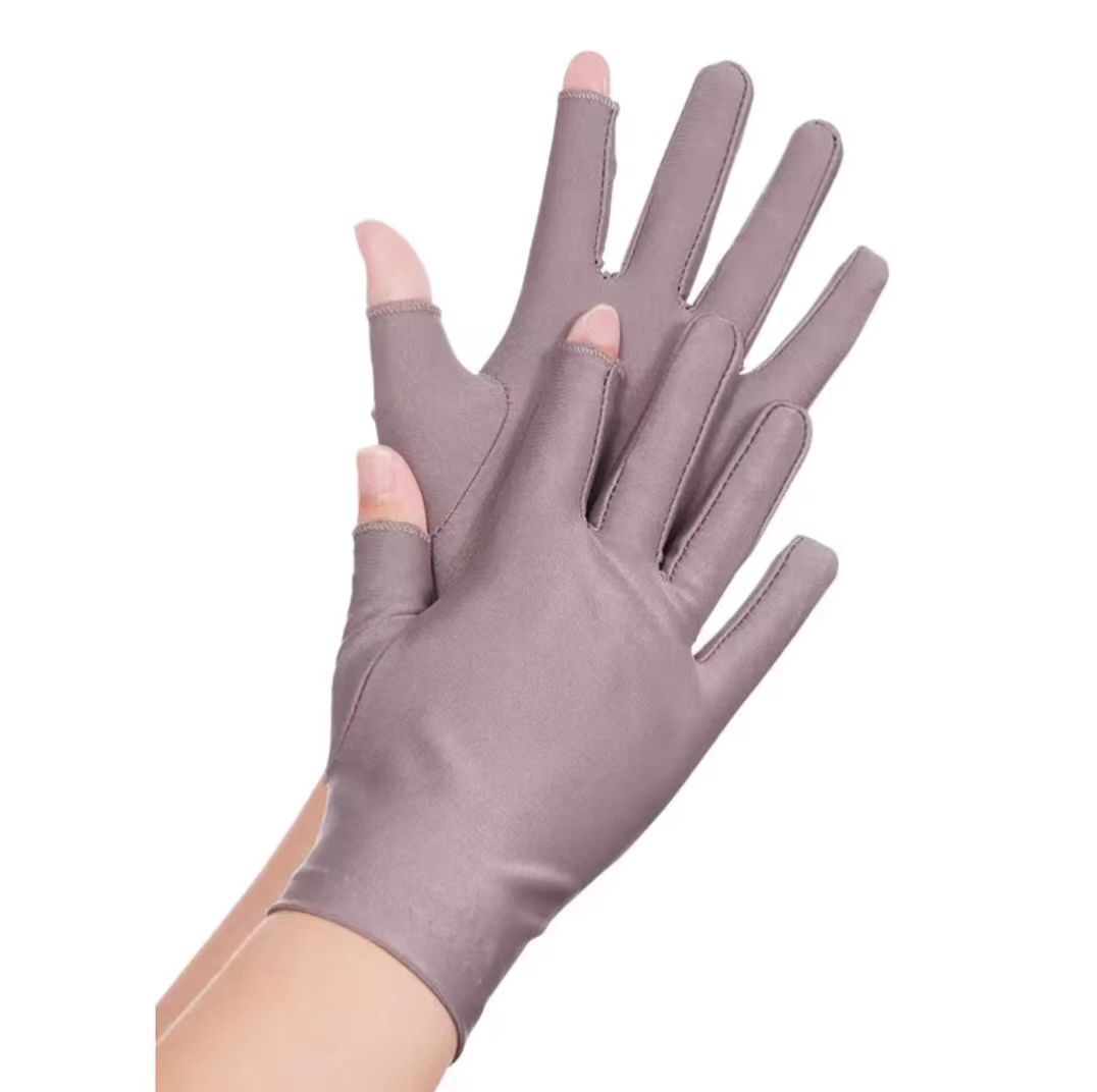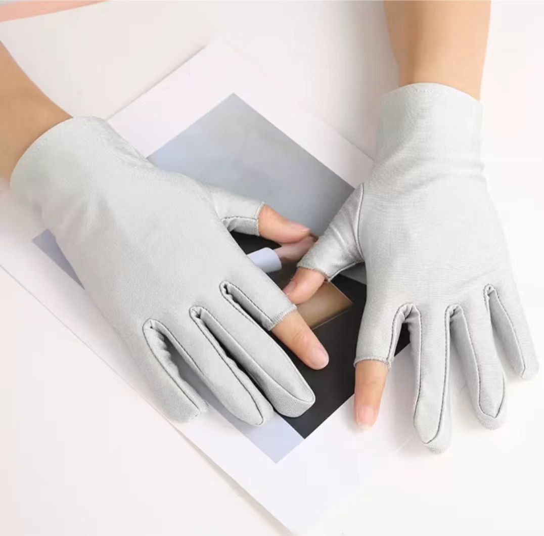 단색 고탄성 누출 두 손가락 스판덱스 장갑 남성과 여성의 얇은 여름 자외선 차단제 차 따기 운전 스판덱스 장갑
