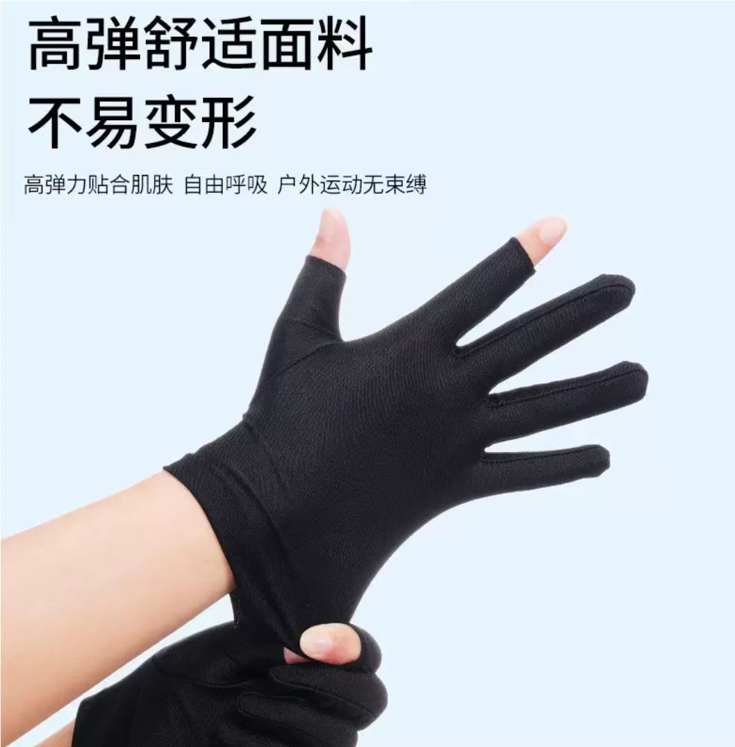 단색 고탄성 누출 두 손가락 스판덱스 장갑 남성과 여성의 얇은 여름 자외선 차단제 차 따기 운전 스판덱스 장갑스토어 가기