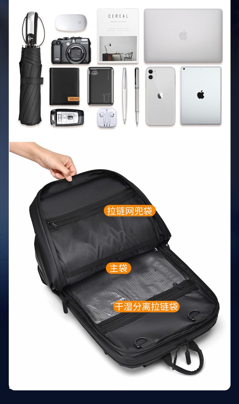 双层的有前置扩容口袋,有独立电脑仓,【主仓有加绒】