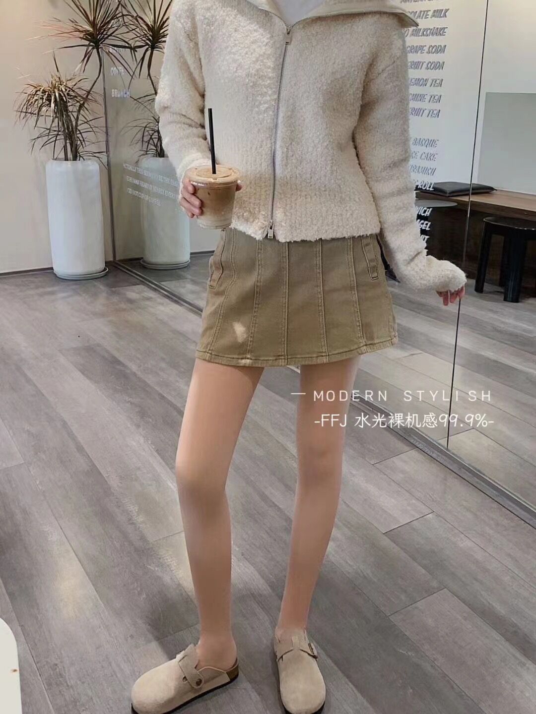 가벼운 다리 유물 여성의 가을과 겨울 자연 높은 허리 배 수축 살색 물빛 양말 가벼운 다리 누드 느낌 기모 바닥 보디 빌딩 바지