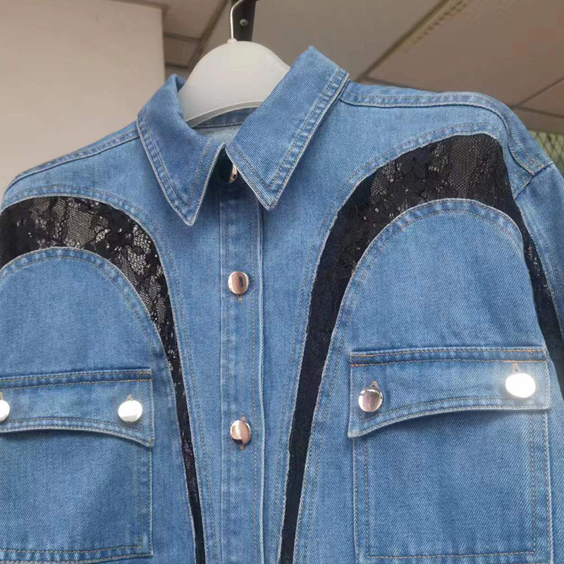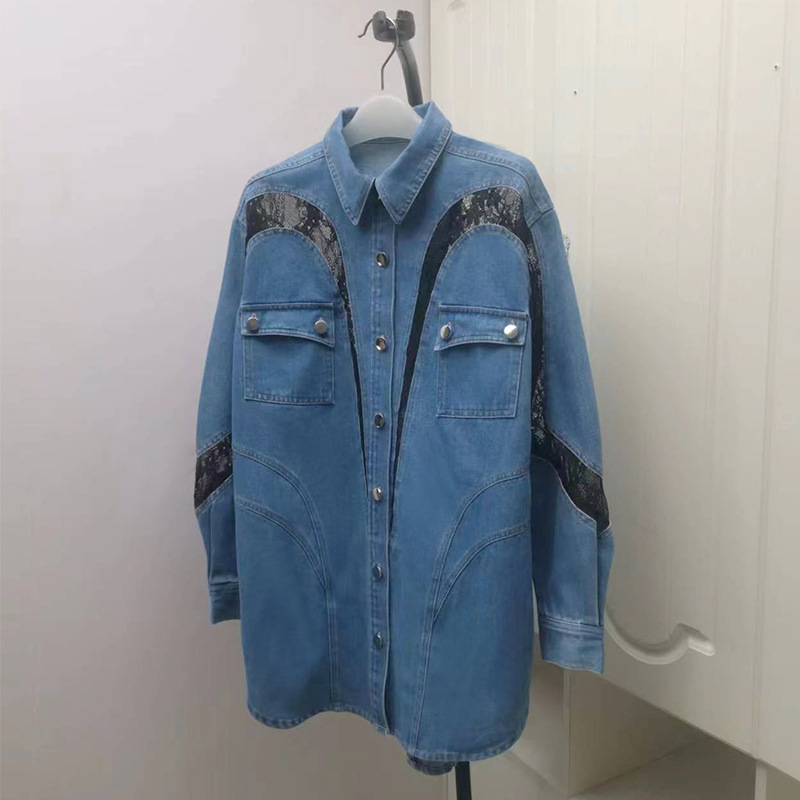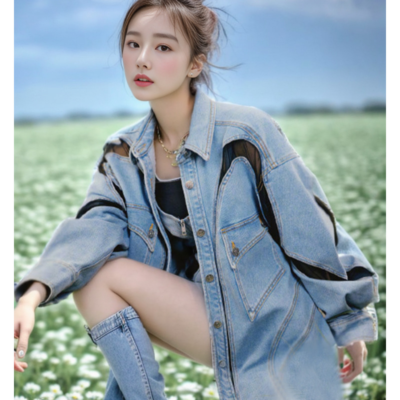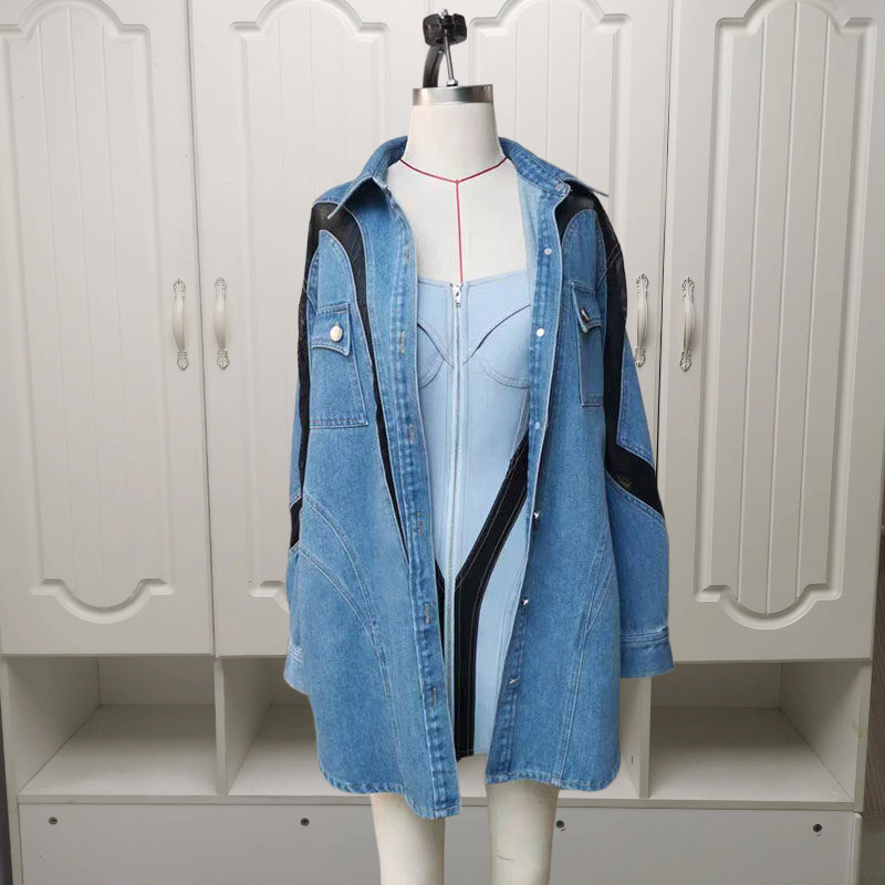 봄 · 가을 새 데님 여성 세트 원피스 느슨한 롱 코트 패션의 한국판 반점 양미