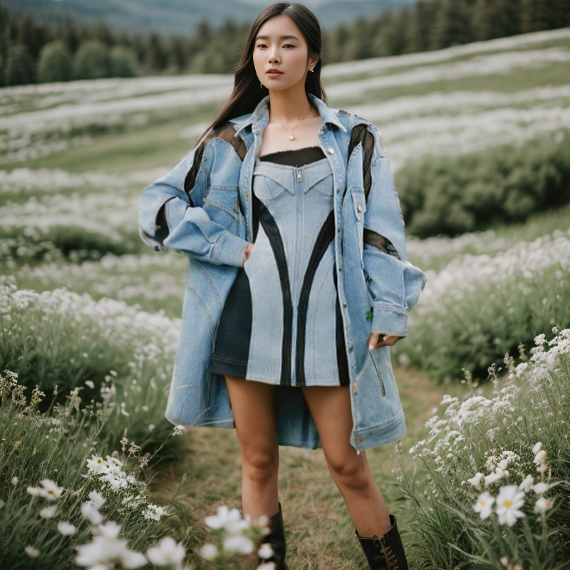 봄 · 가을 새 데님 여성 세트 원피스 느슨한 롱 코트 패션의 한국판 반점 양미스토어 가기