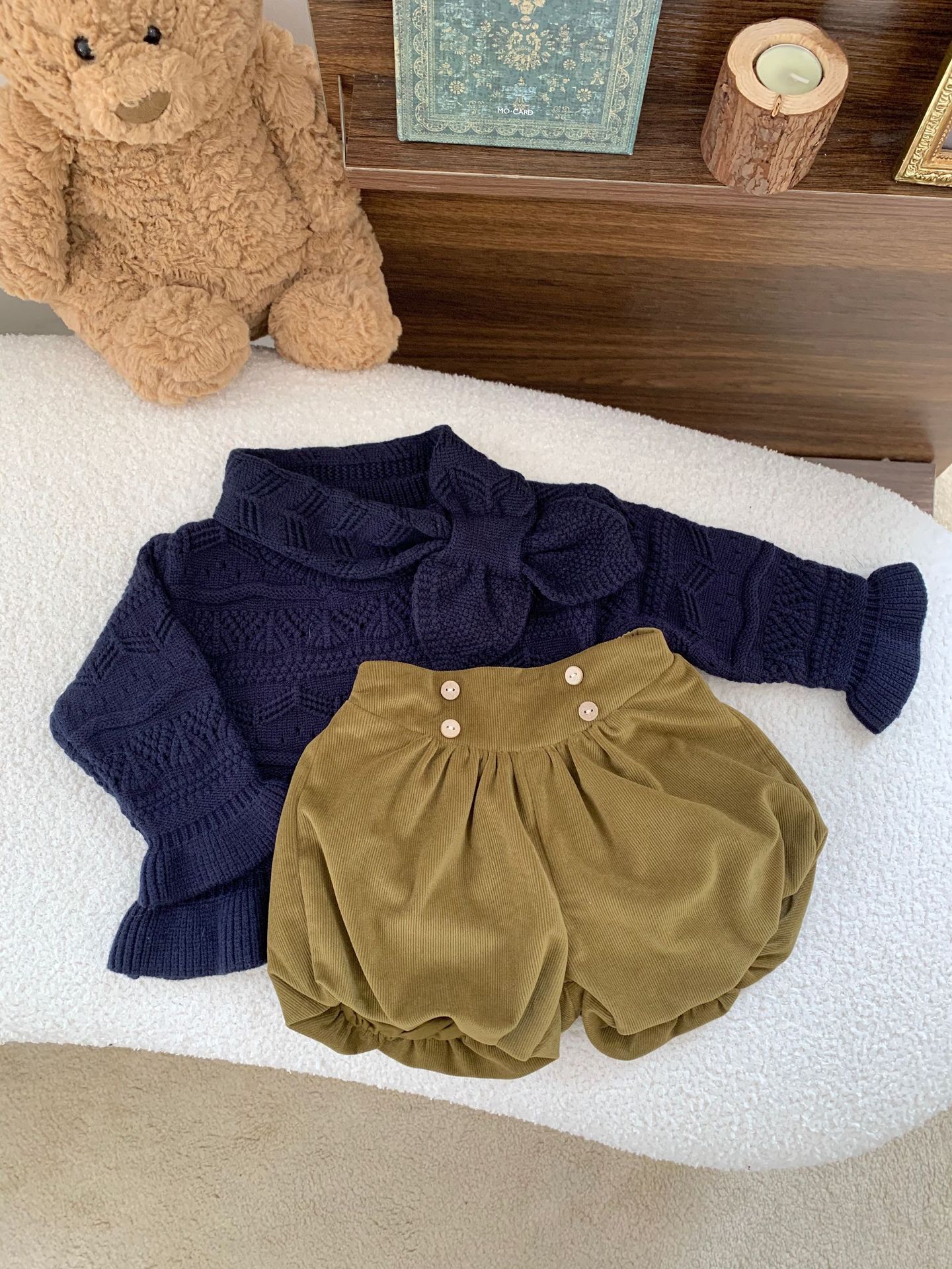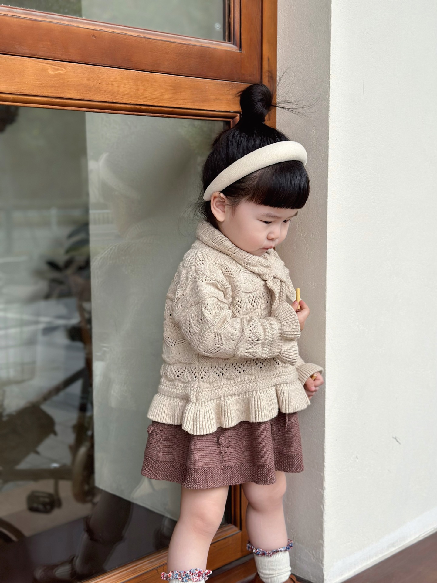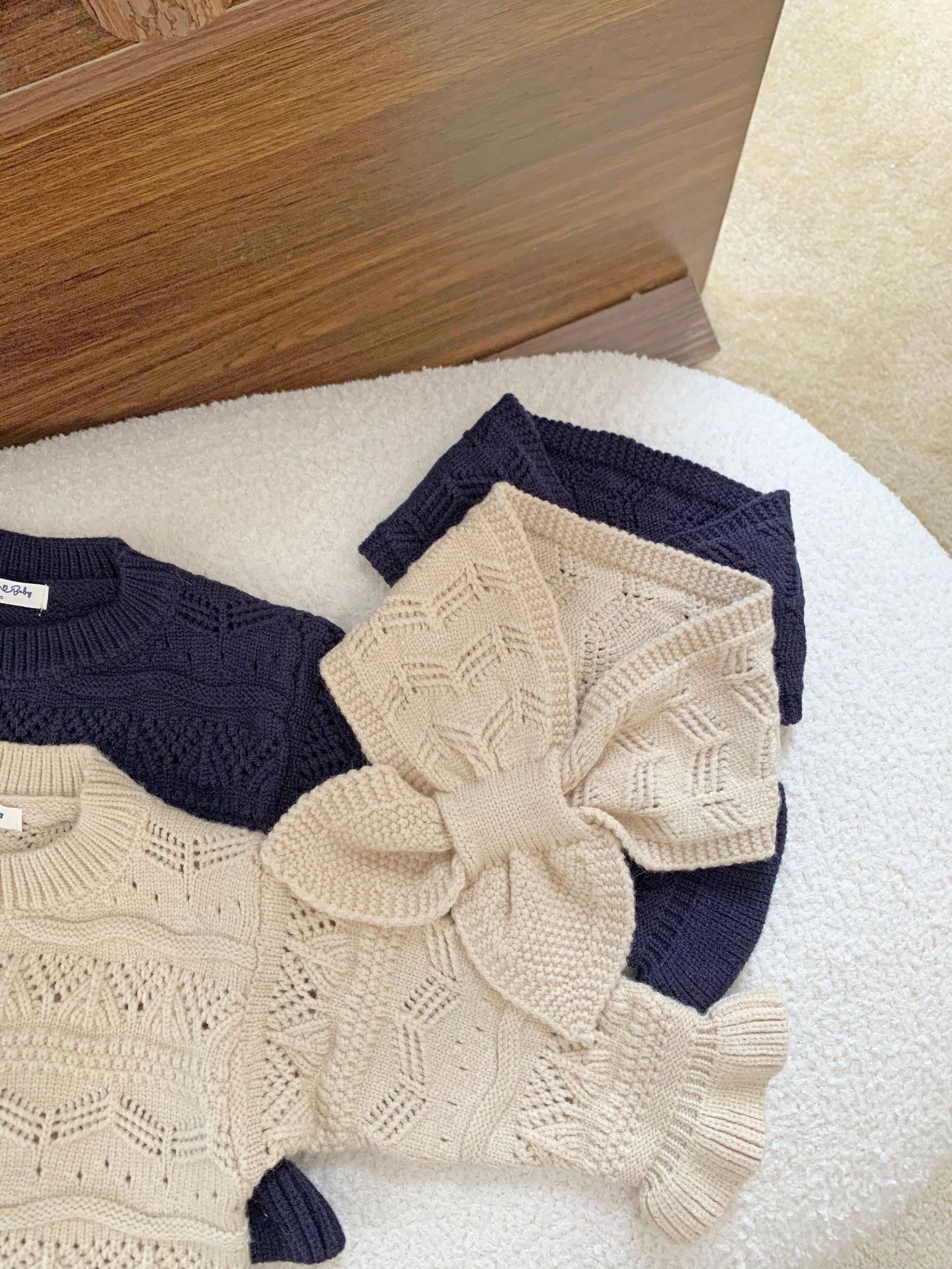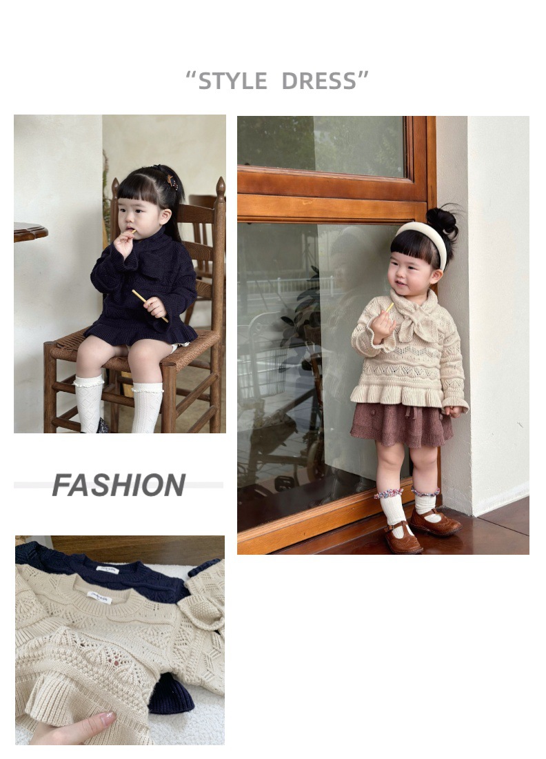 Cutemily 가을과 겨울 아기 소녀 귀여운 라운드 넥 중공 스웨터 여성 아기 귀여운 스카프 니트 2 종 세트스토어 가기