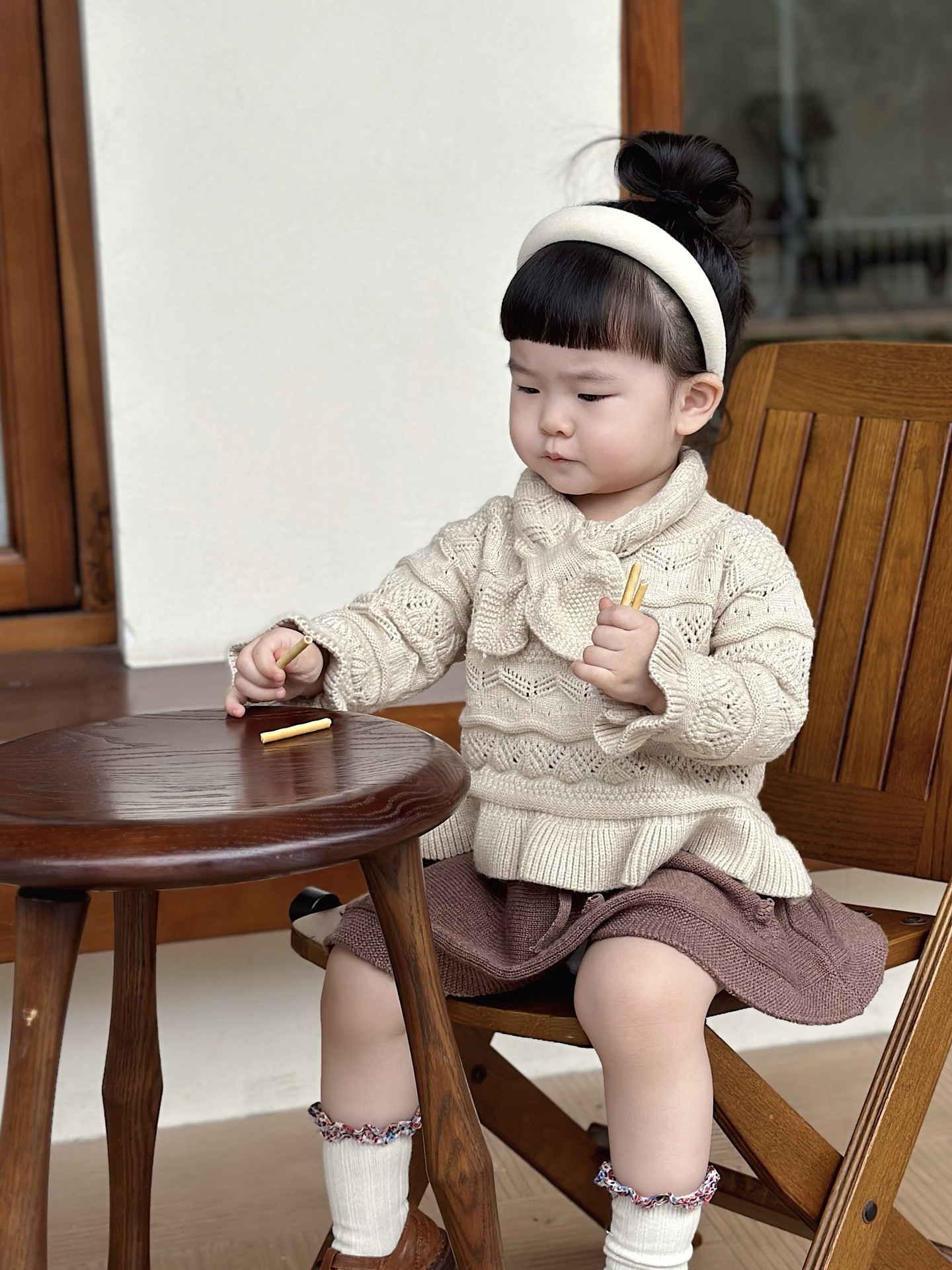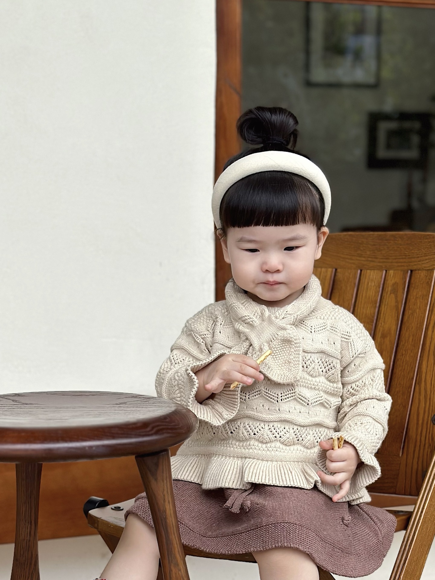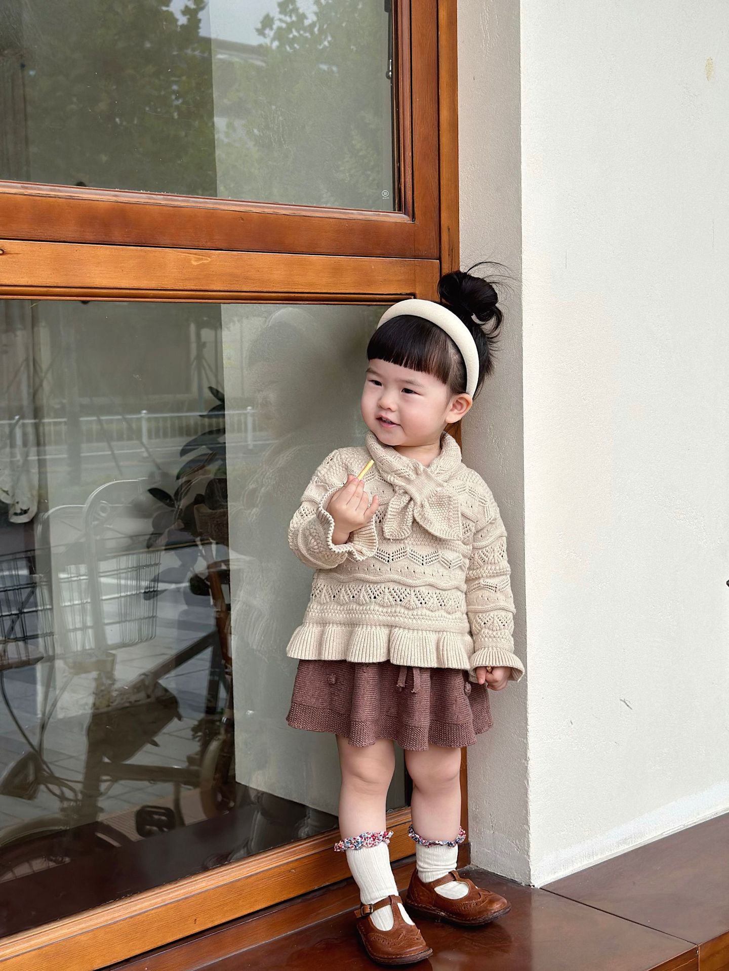 Cutemily 가을과 겨울 아기 소녀 귀여운 라운드 넥 중공 스웨터 여성 아기 귀여운 스카프 니트 2 종 세트스토어 가기