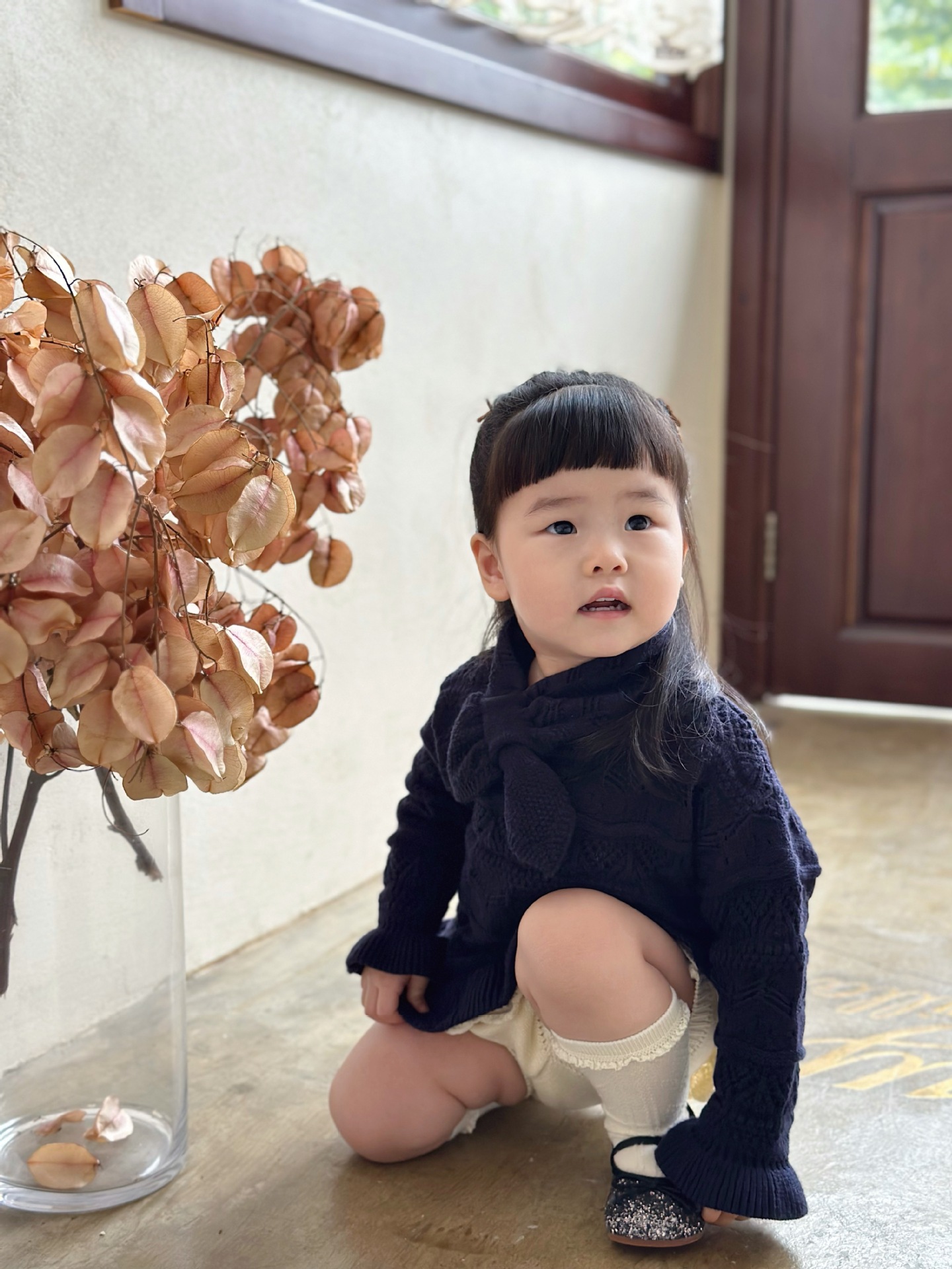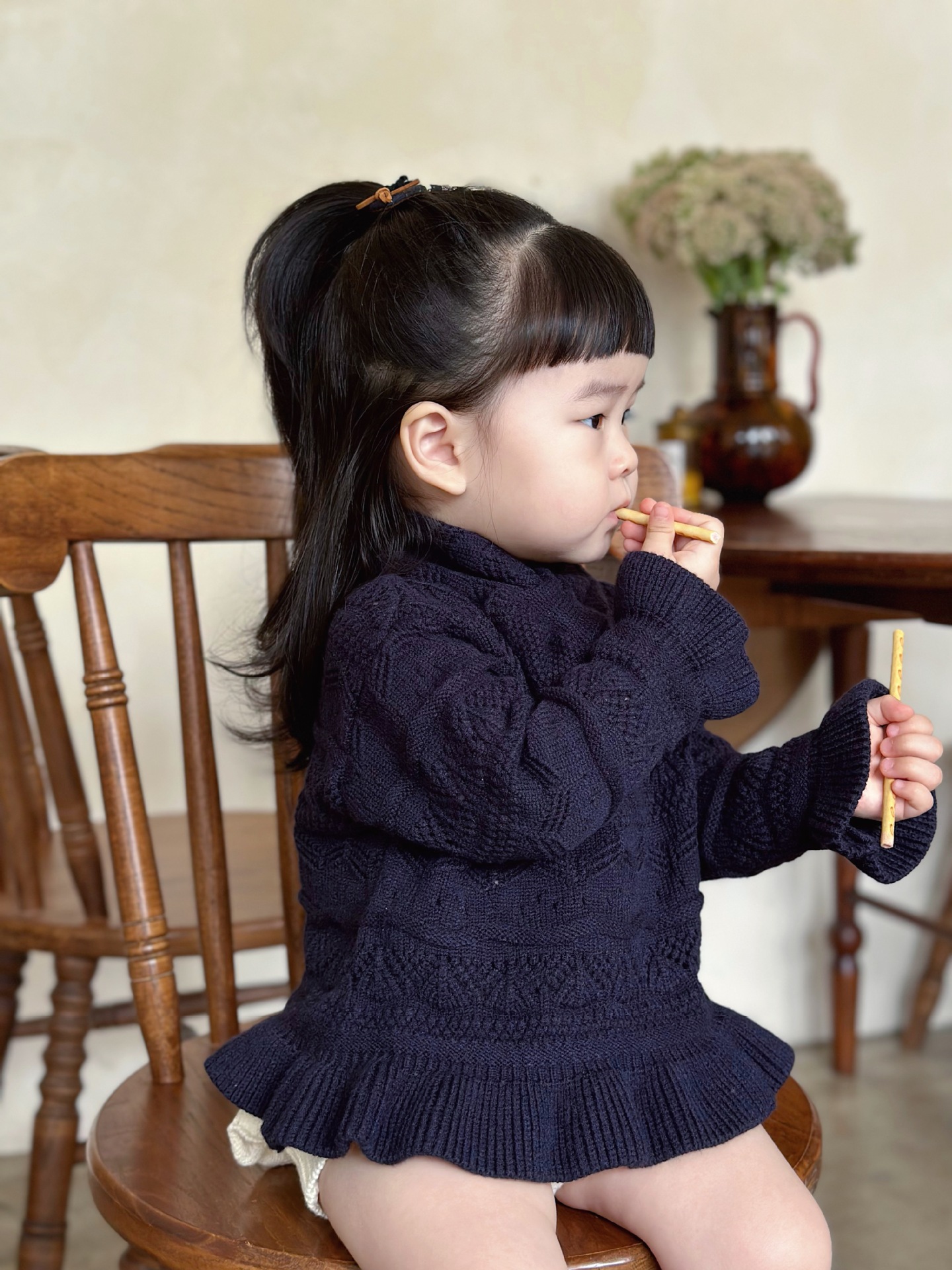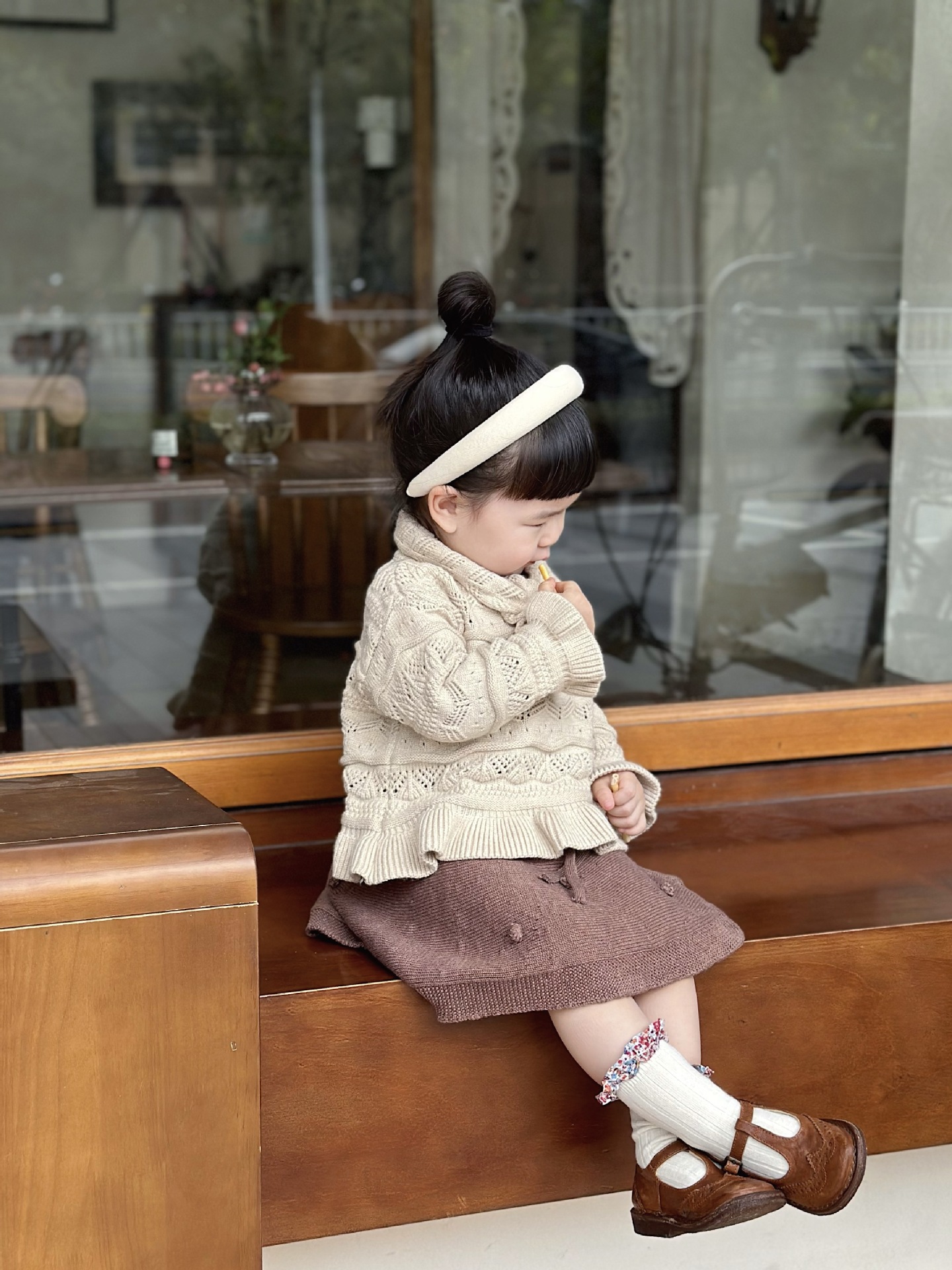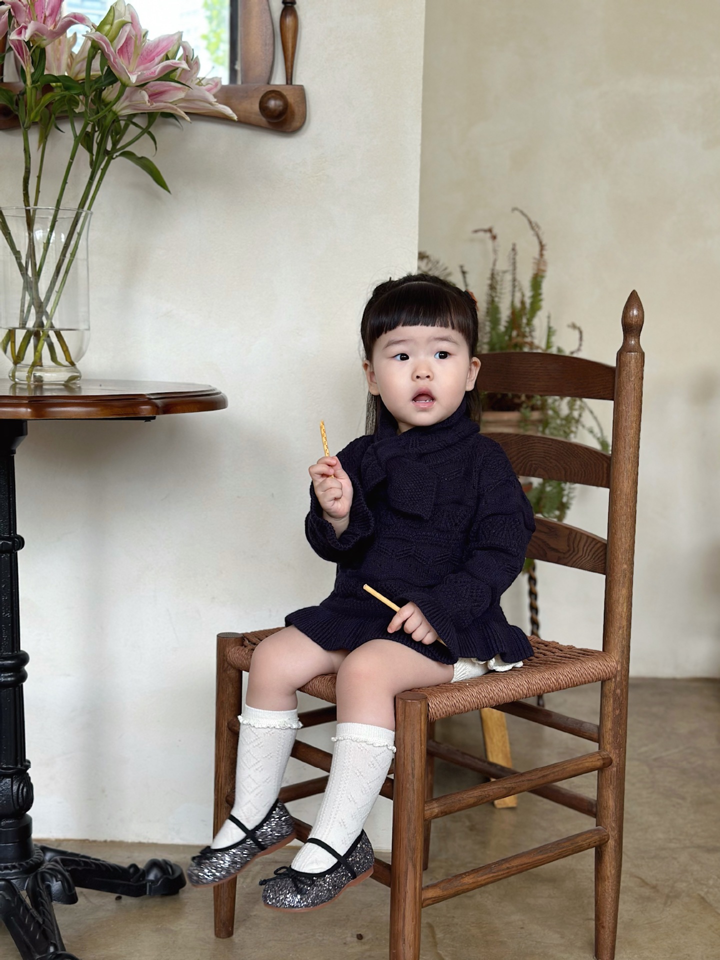 Cutemily 가을과 겨울 아기 소녀 귀여운 라운드 넥 중공 스웨터 여성 아기 귀여운 스카프 니트 2 종 세트스토어 가기
