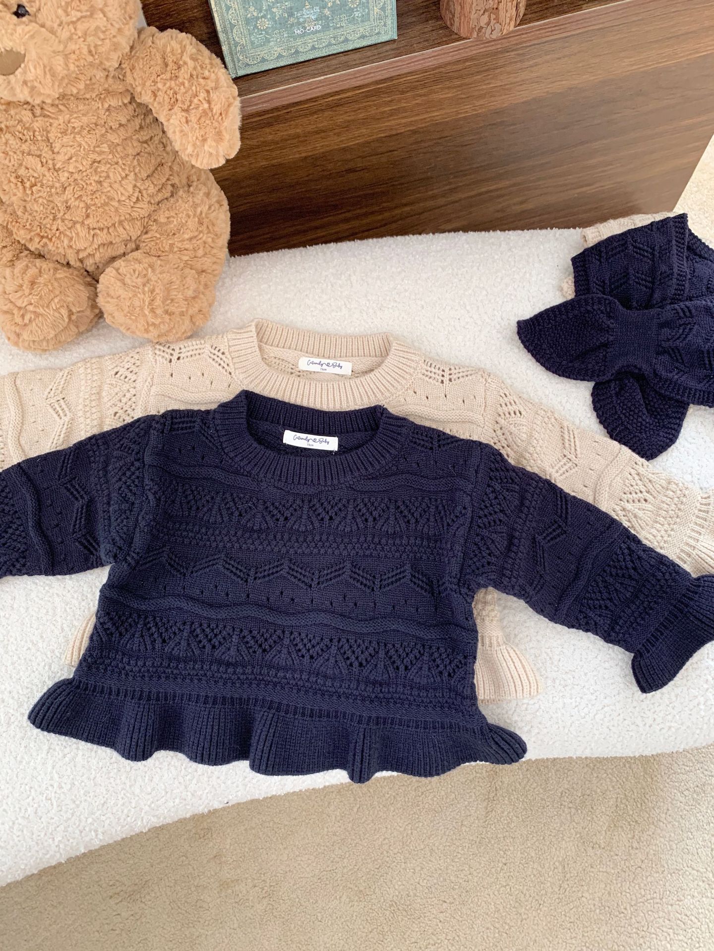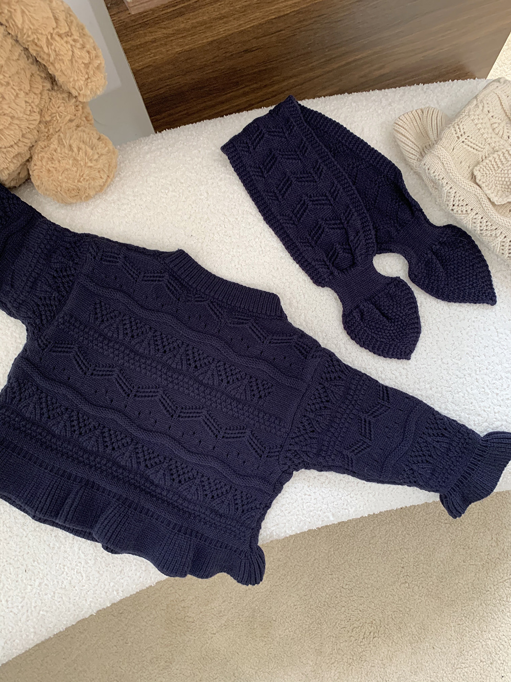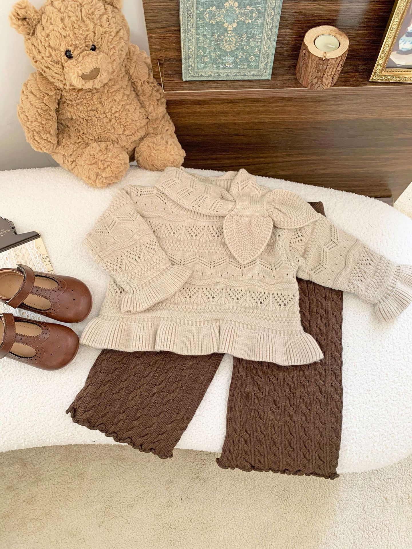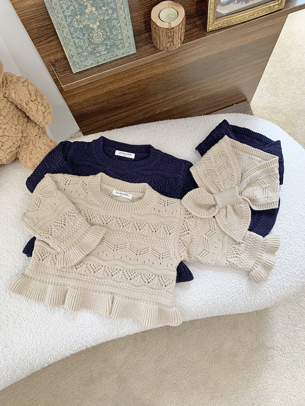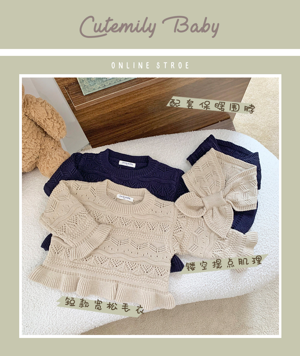 Cutemily 가을과 겨울 아기 소녀 귀여운 라운드 넥 중공 스웨터 여성 아기 귀여운 스카프 니트 2 종 세트