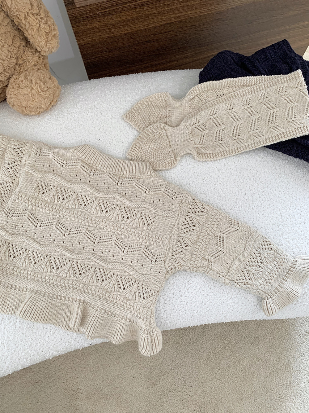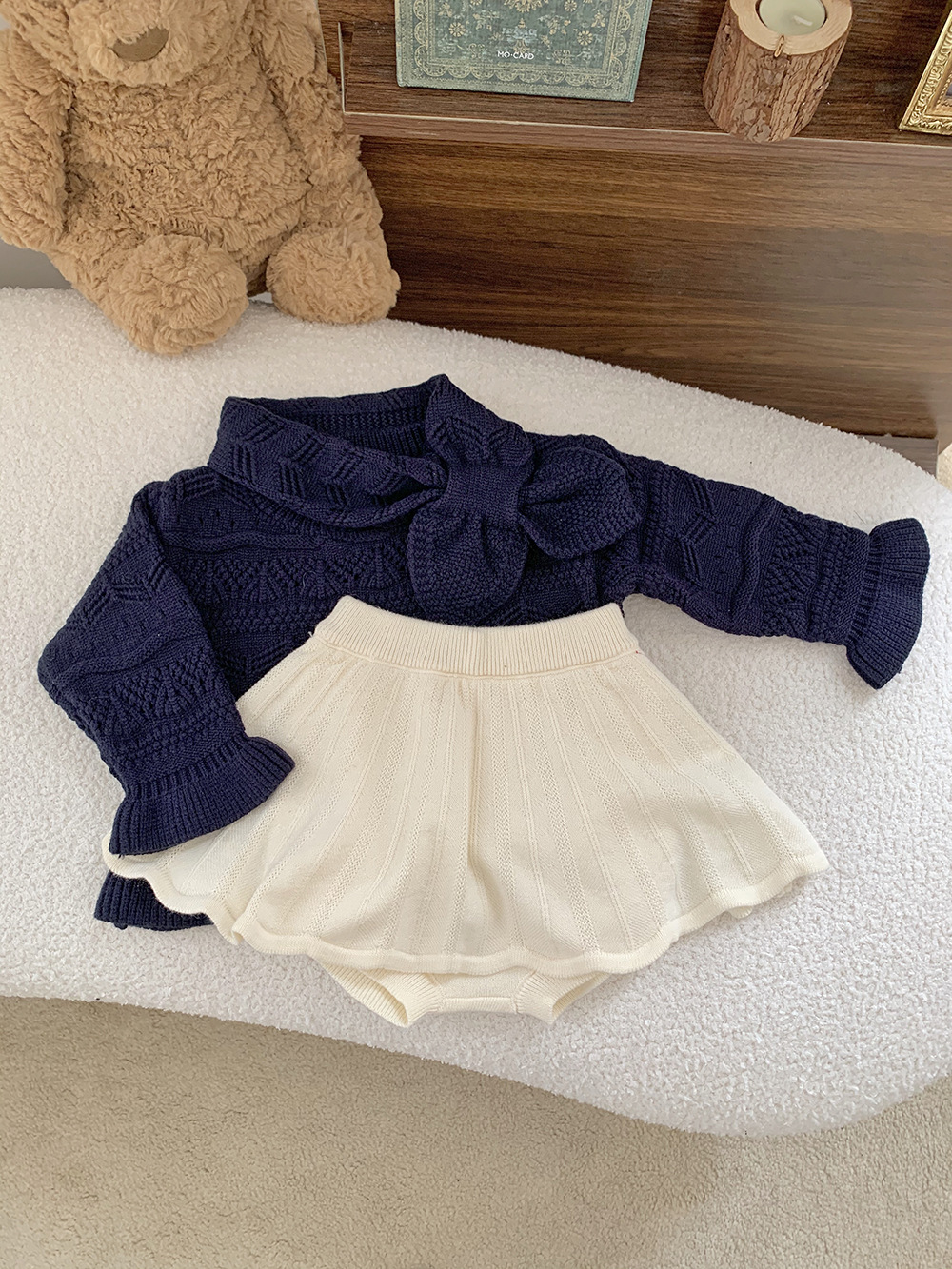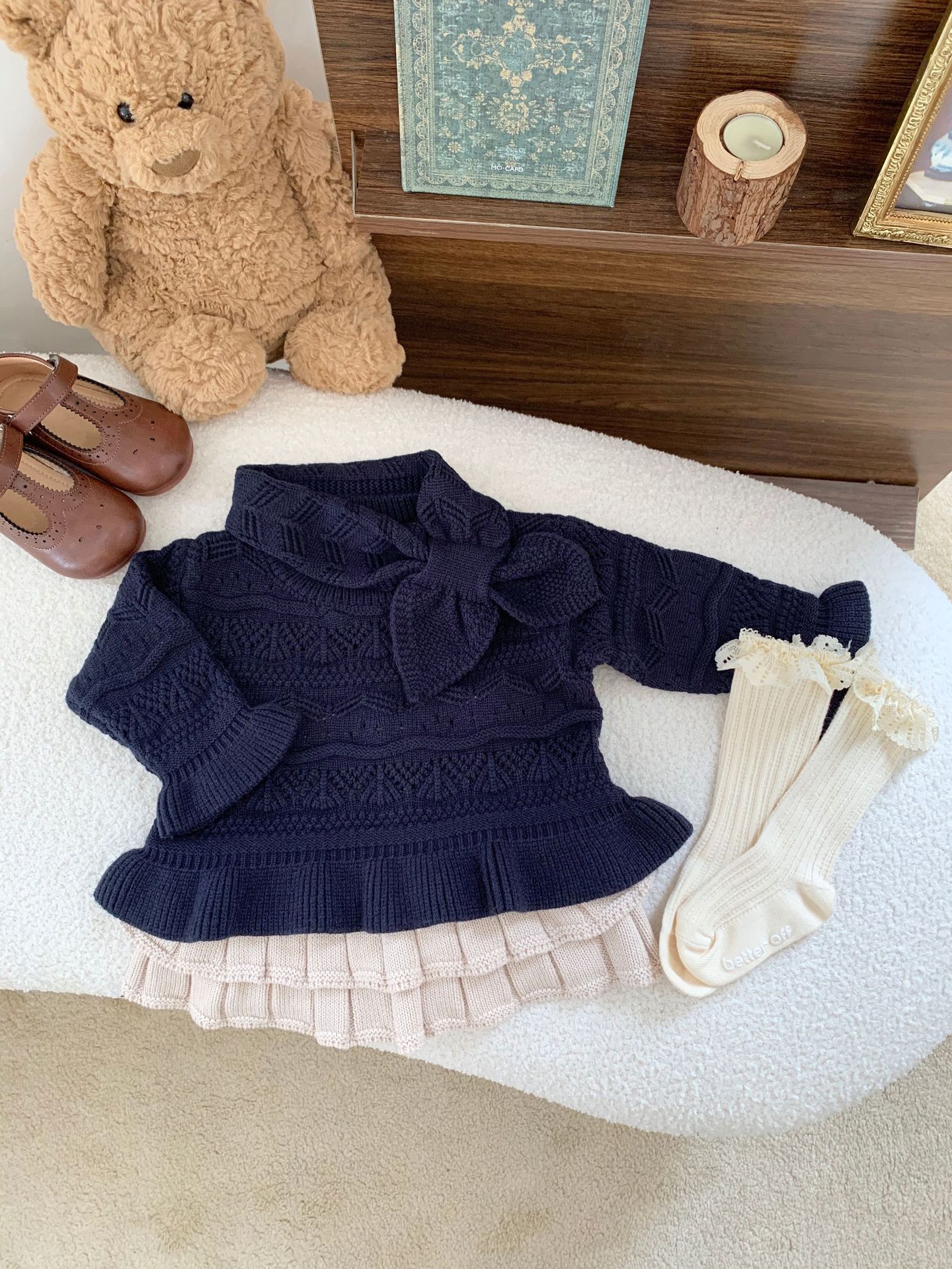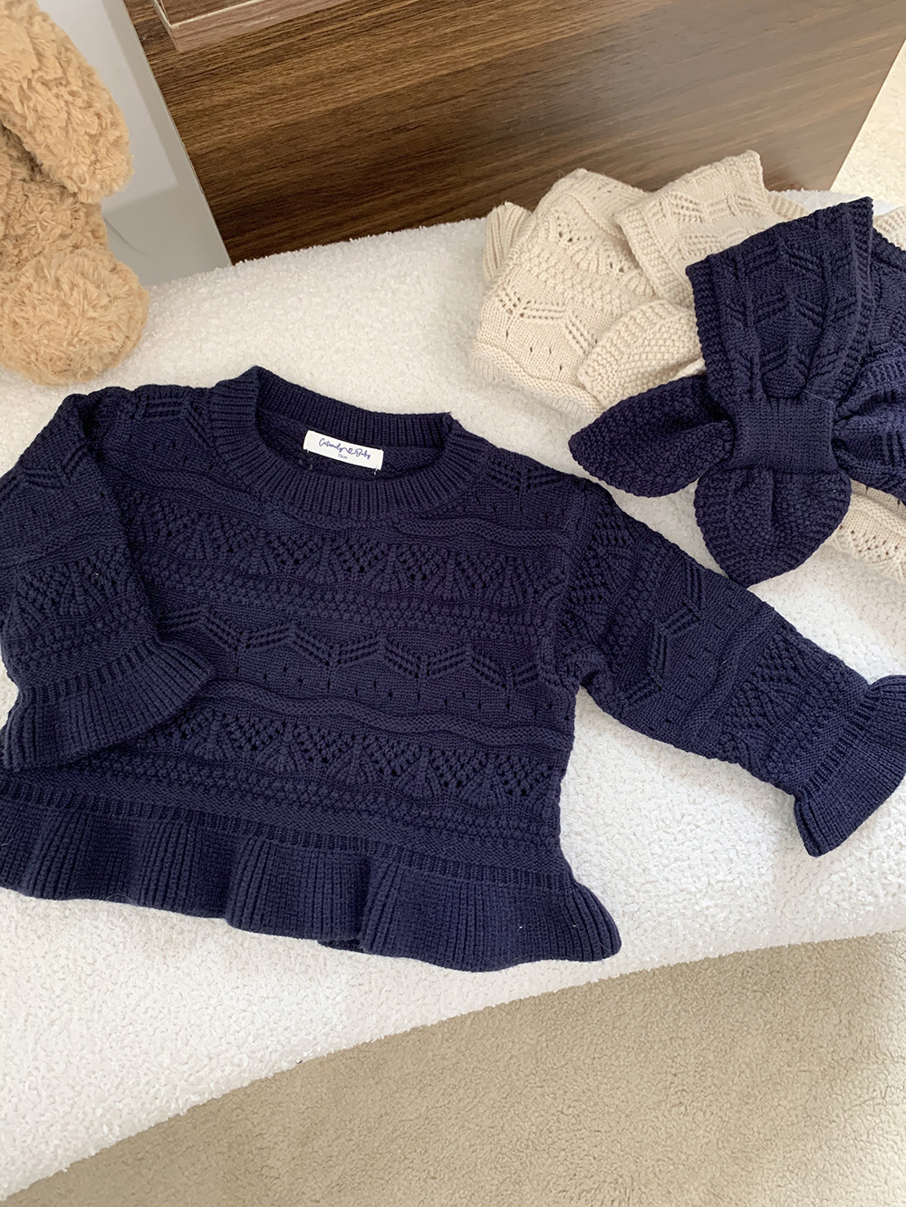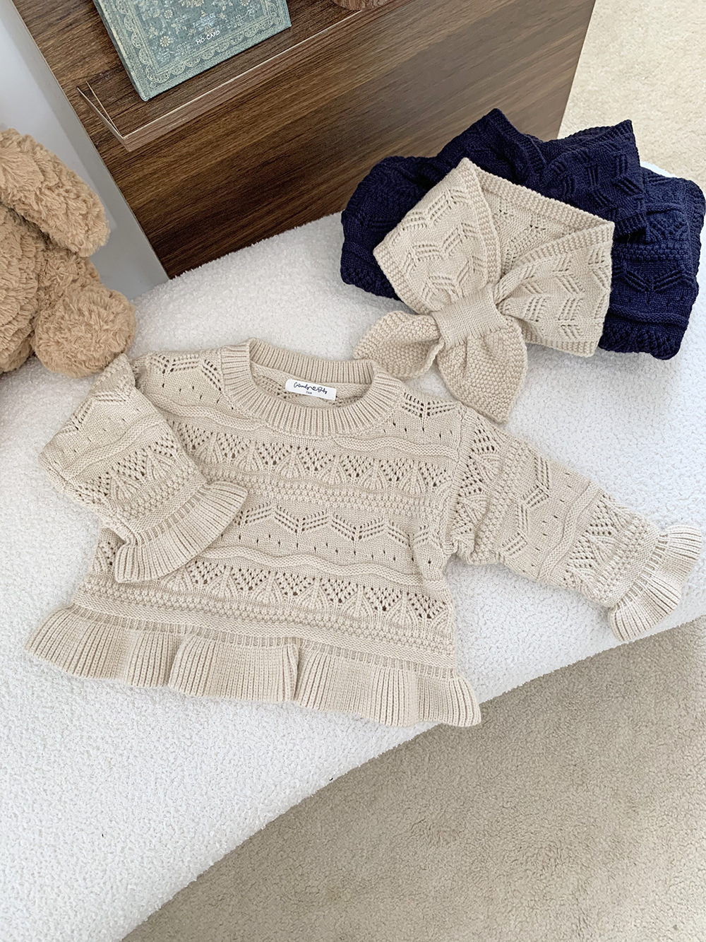 Cutemily 가을과 겨울 아기 소녀 귀여운 라운드 넥 중공 스웨터 여성 아기 귀여운 스카프 니트 2 종 세트