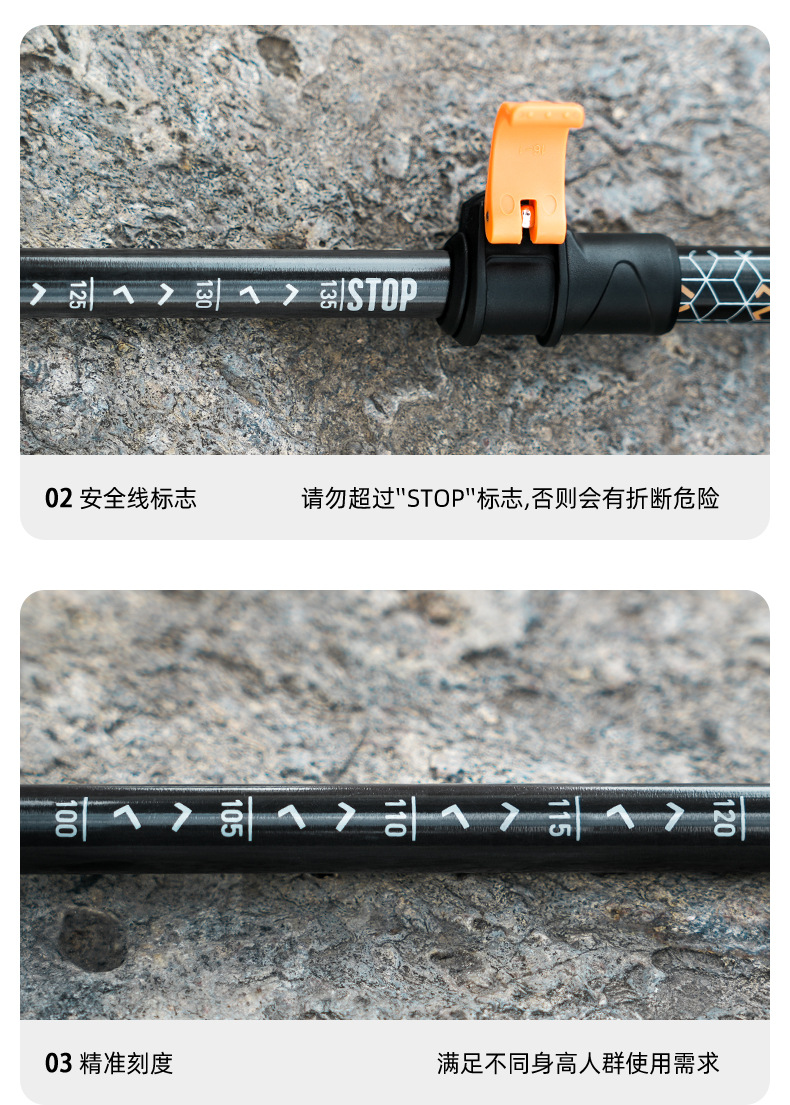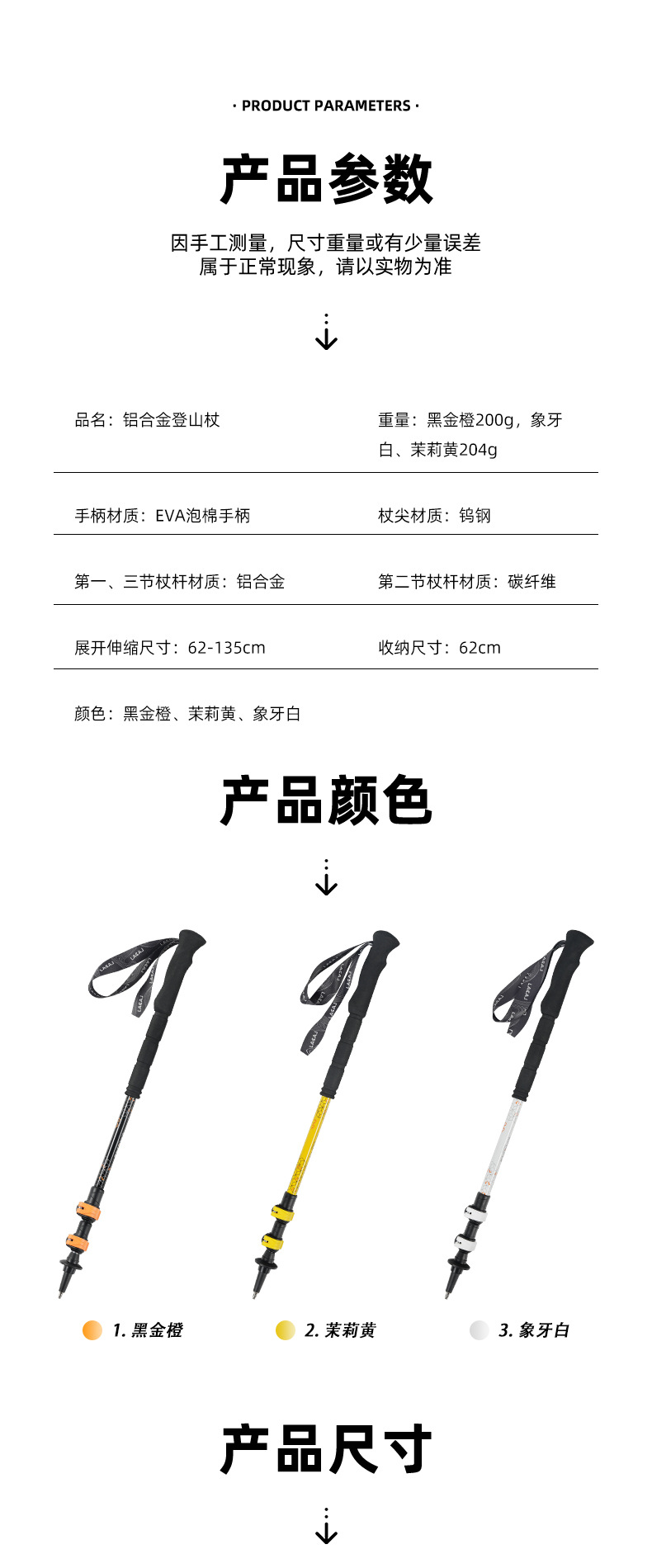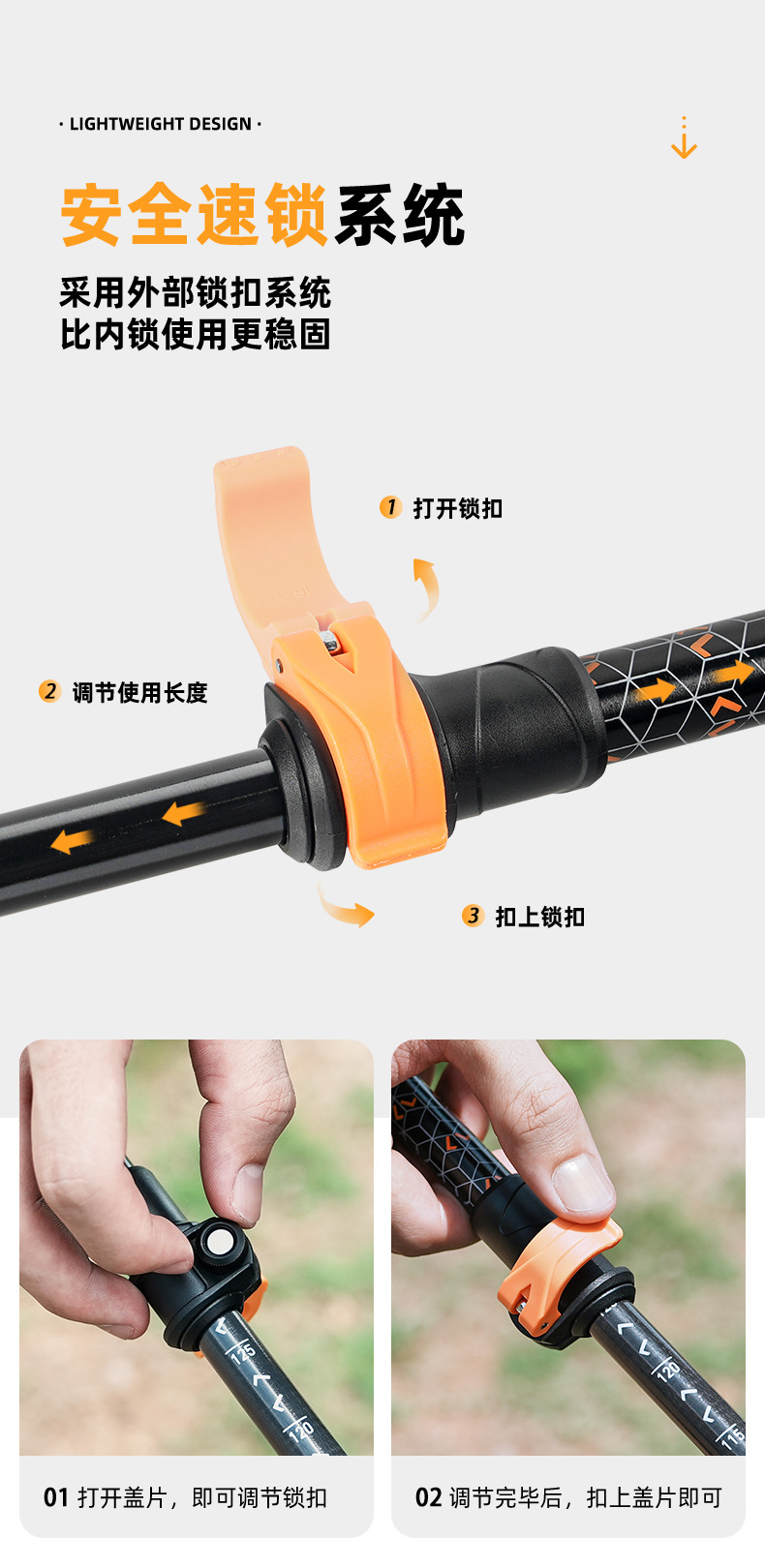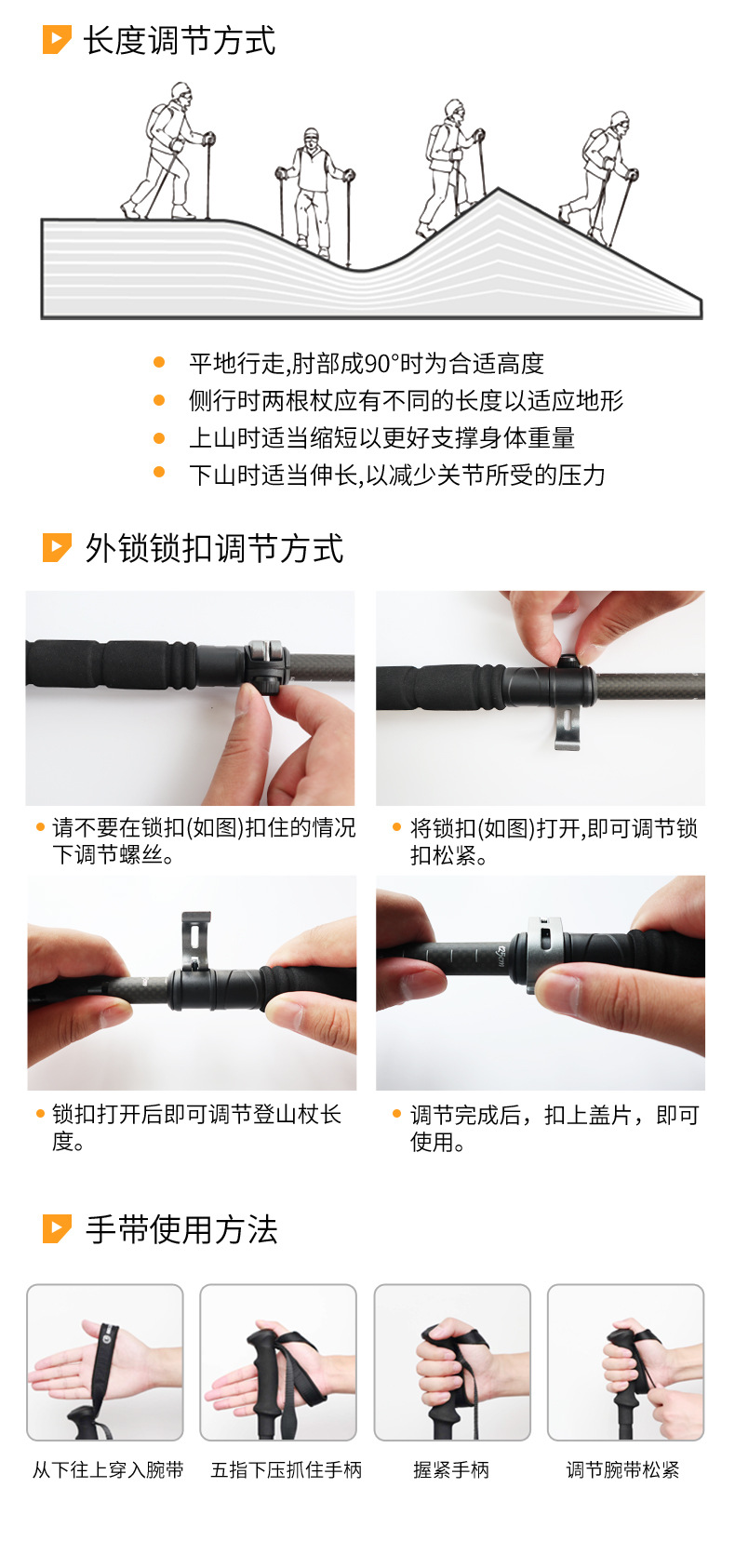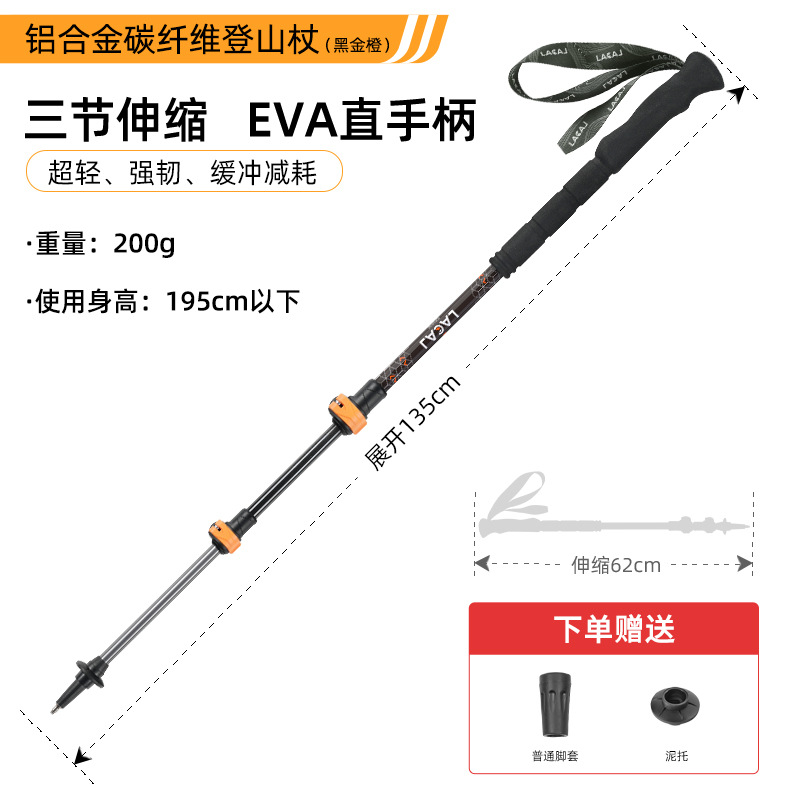 • 성인용 탄소 알루미늄 트레킹 폴 블랙 골드 오렌지
