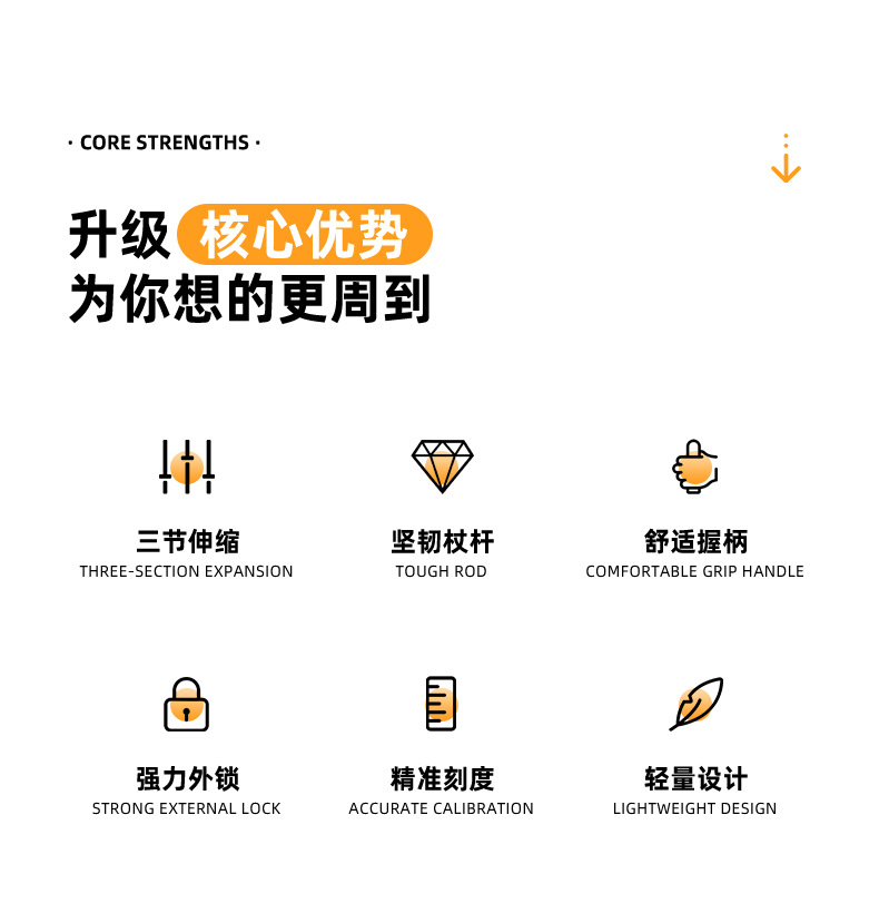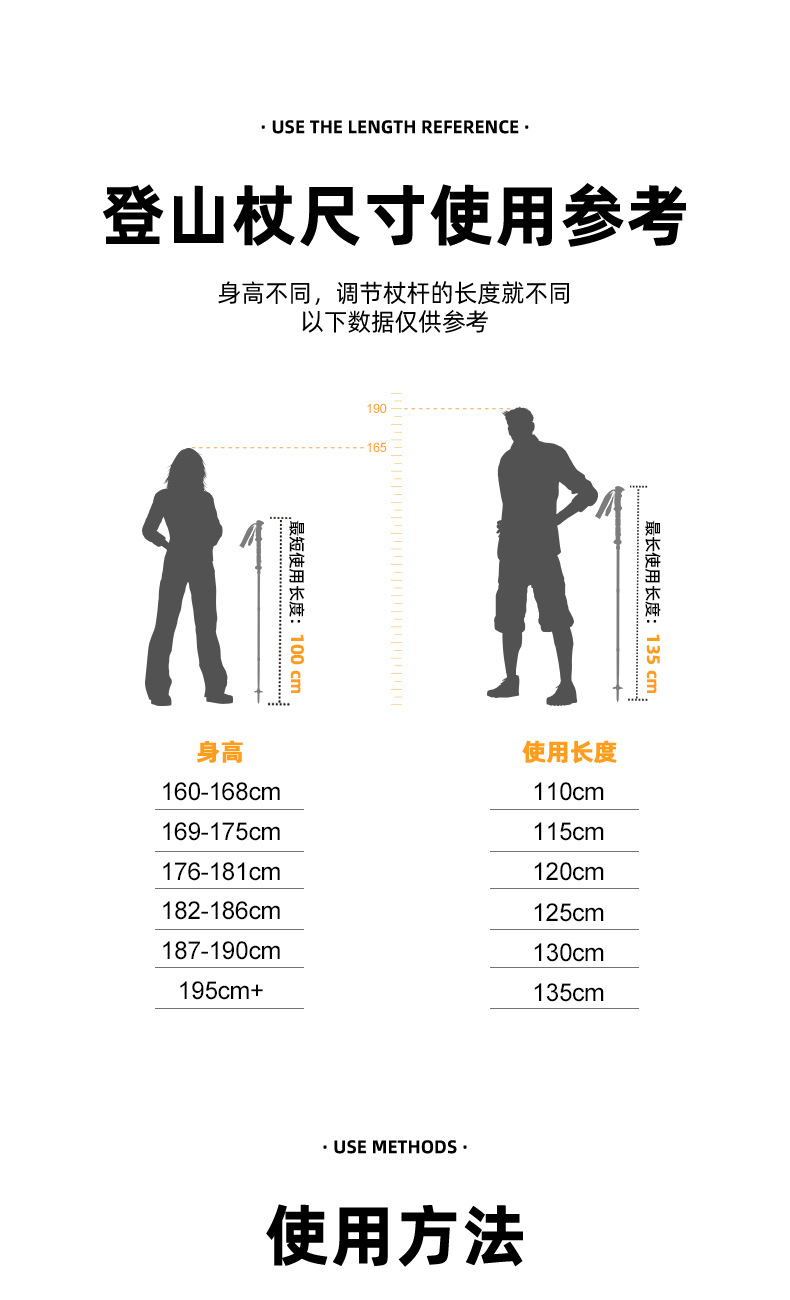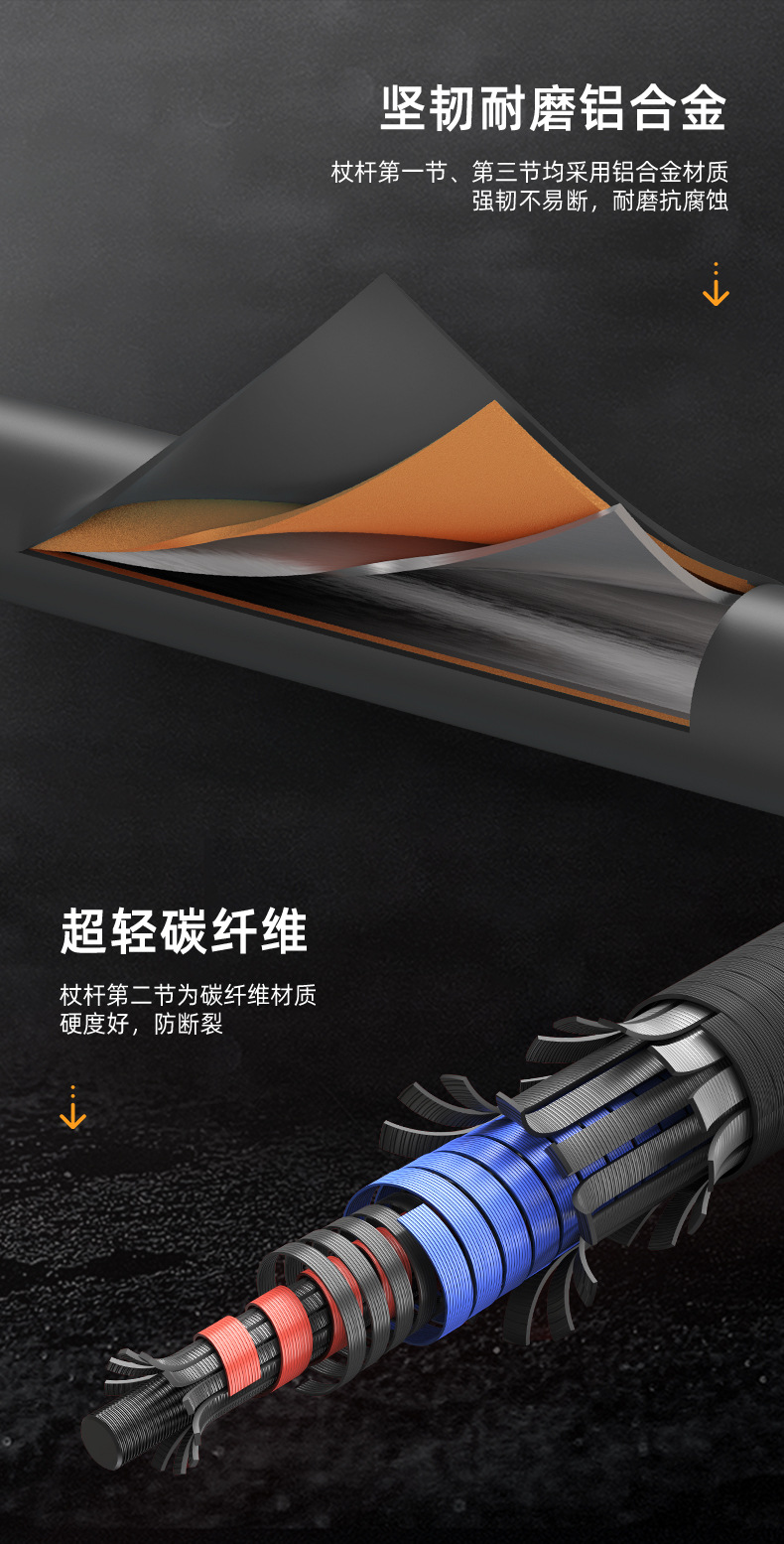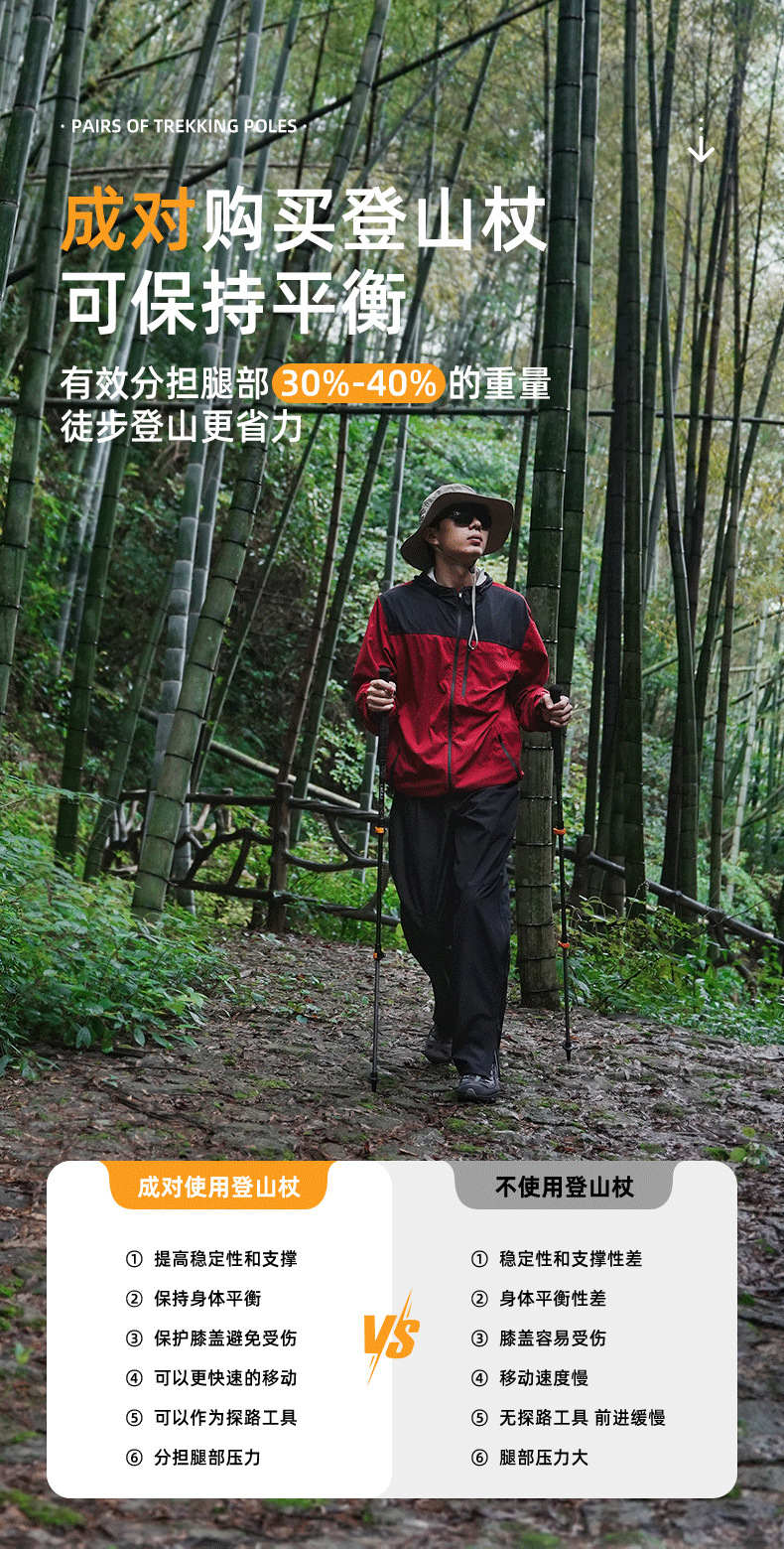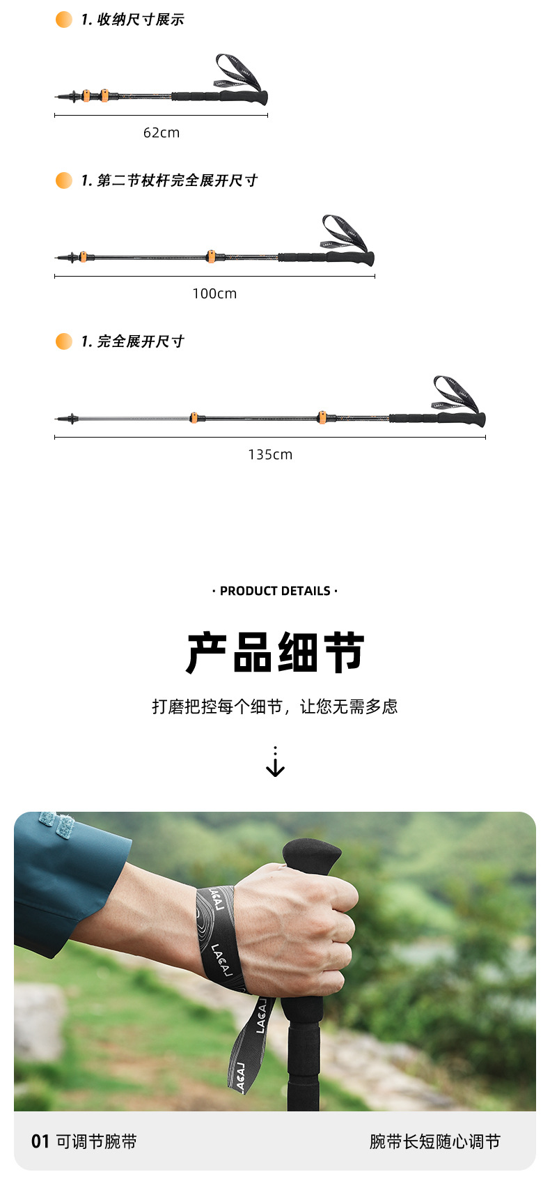 • 성인용 탄소 알루미늄 트레킹 폴 블랙 골드 오렌지