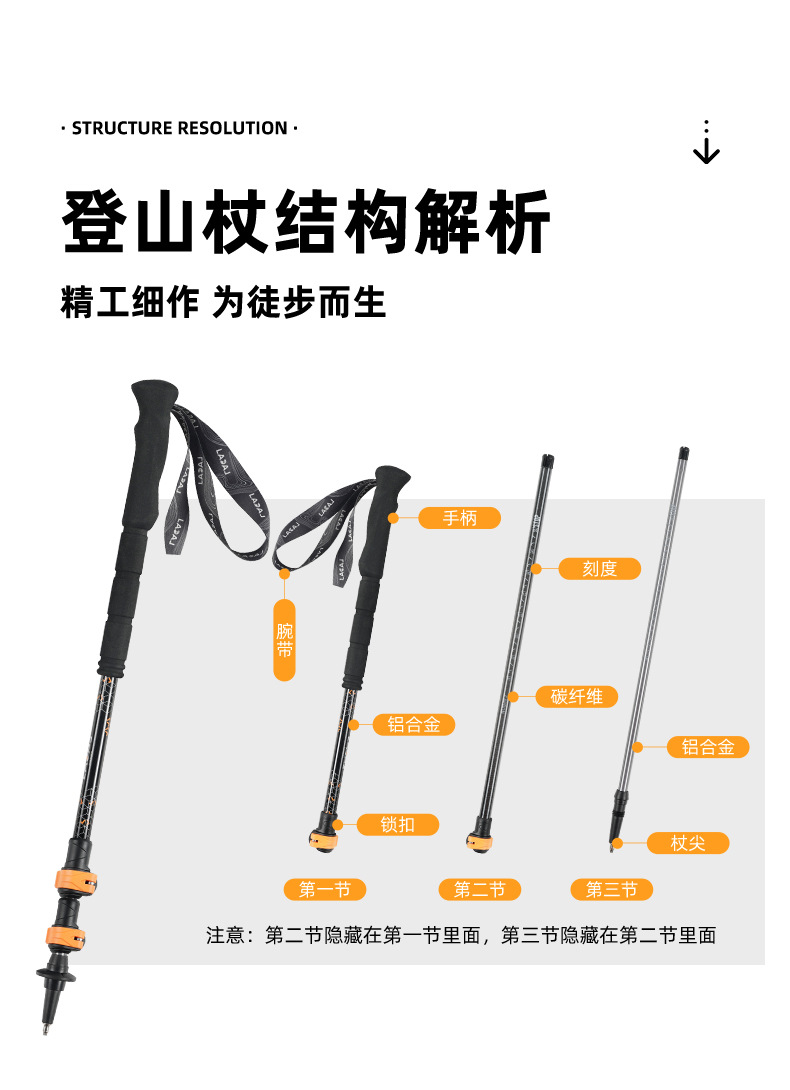 등산 직원 탄소 섬유 알루미늄 합금 초경량 텔레스코픽 어린이 워킹 스틱 다기능 외부 잠금 하이킹 스틱 등산 스틱스토어 가기