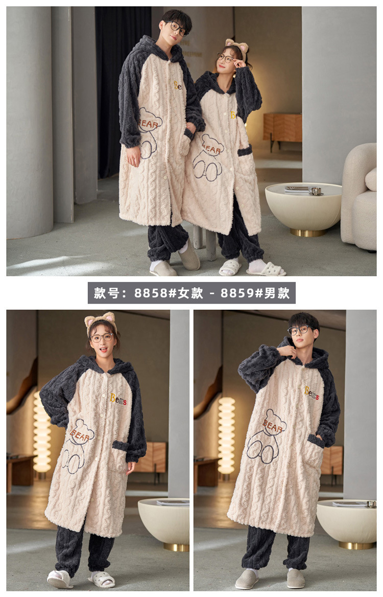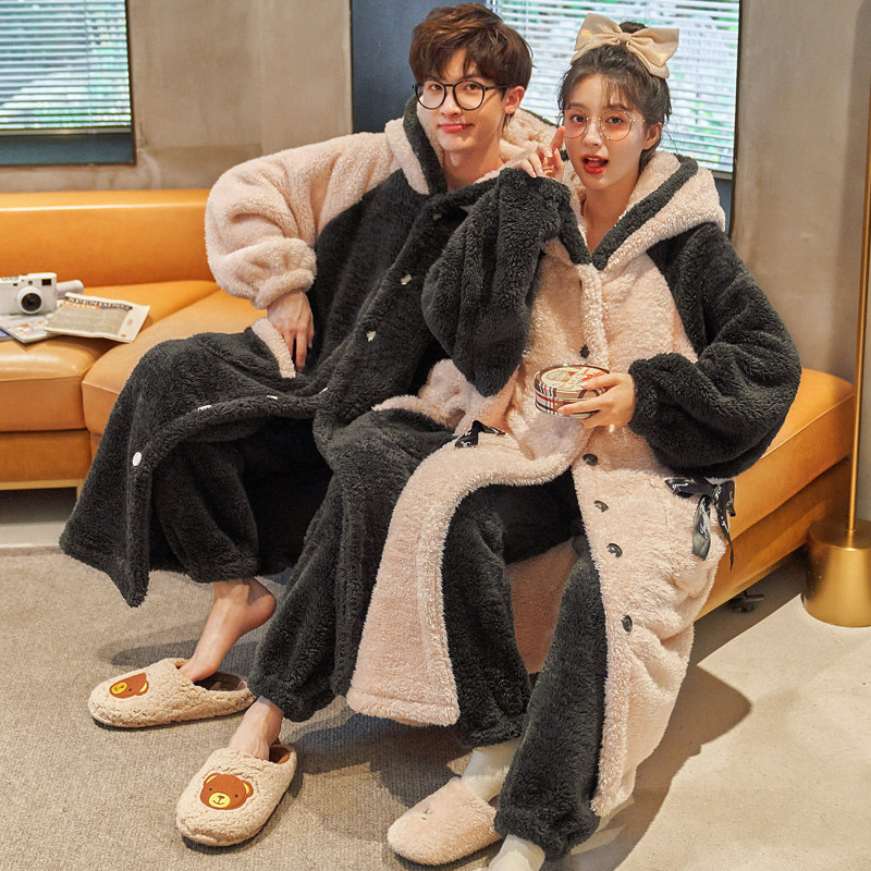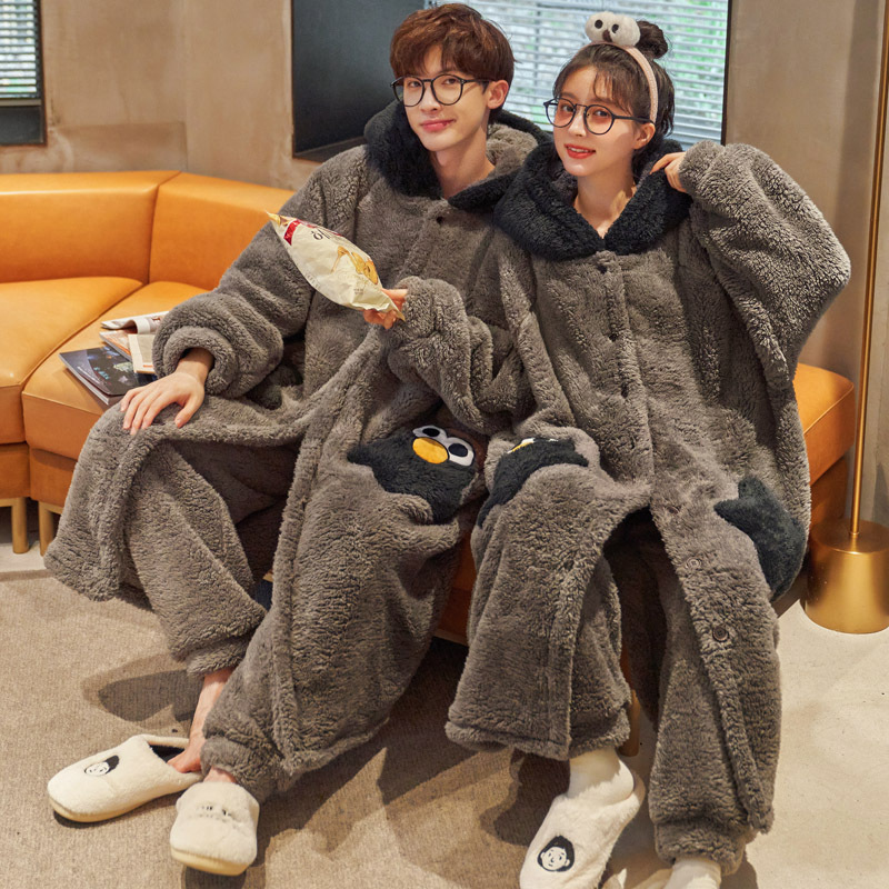 커플 잠옷 겨울용 코랄 벨벳 두꺼운 가을 겨울 남녀용 플러스 벨벳 세트 겨울용 잠옷 홈웨어스토어 가기
