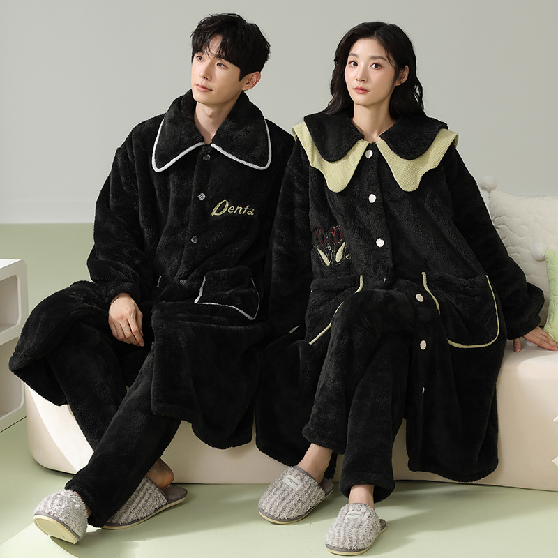 커플 잠옷 겨울용 코랄 벨벳 두꺼운 가을 겨울 남녀용 플러스 벨벳 세트 겨울용 잠옷 홈웨어