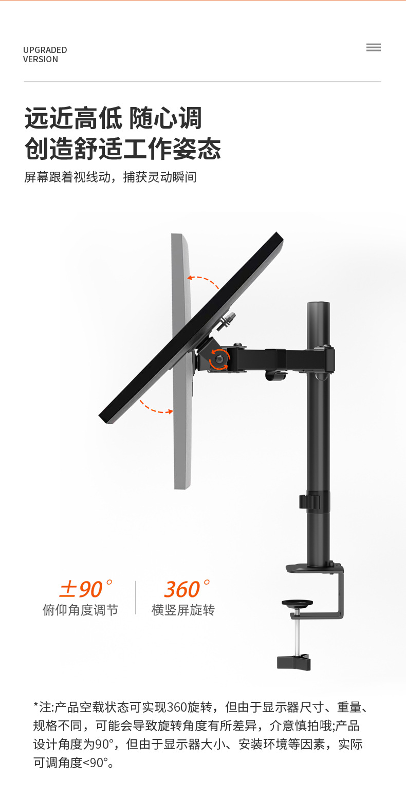 맞춤형 회전식 펀치 프리 컴퓨터 화면 노트북 태블릿 높이 트레이 조정 가능한 리프팅 브래킷 암