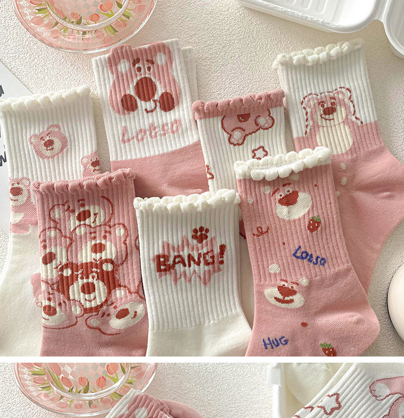 핑크 양말 여성용 미드 배럴 인 트렌디 한 모든 경기 가을과 겨울 한국 귀여운 곰 달콤한 모든 경기 학생 스포츠 스타킹스토어 가기
