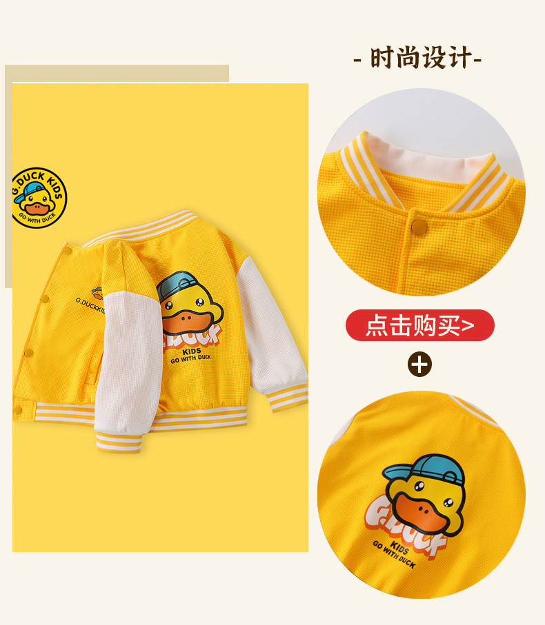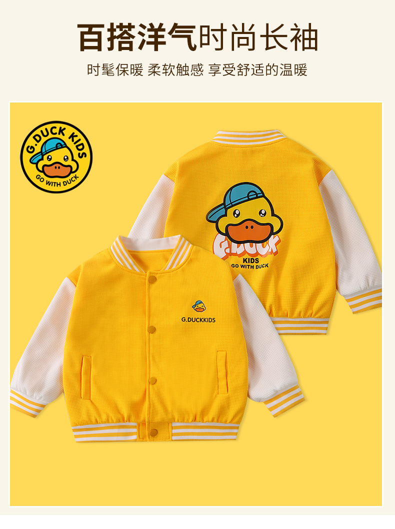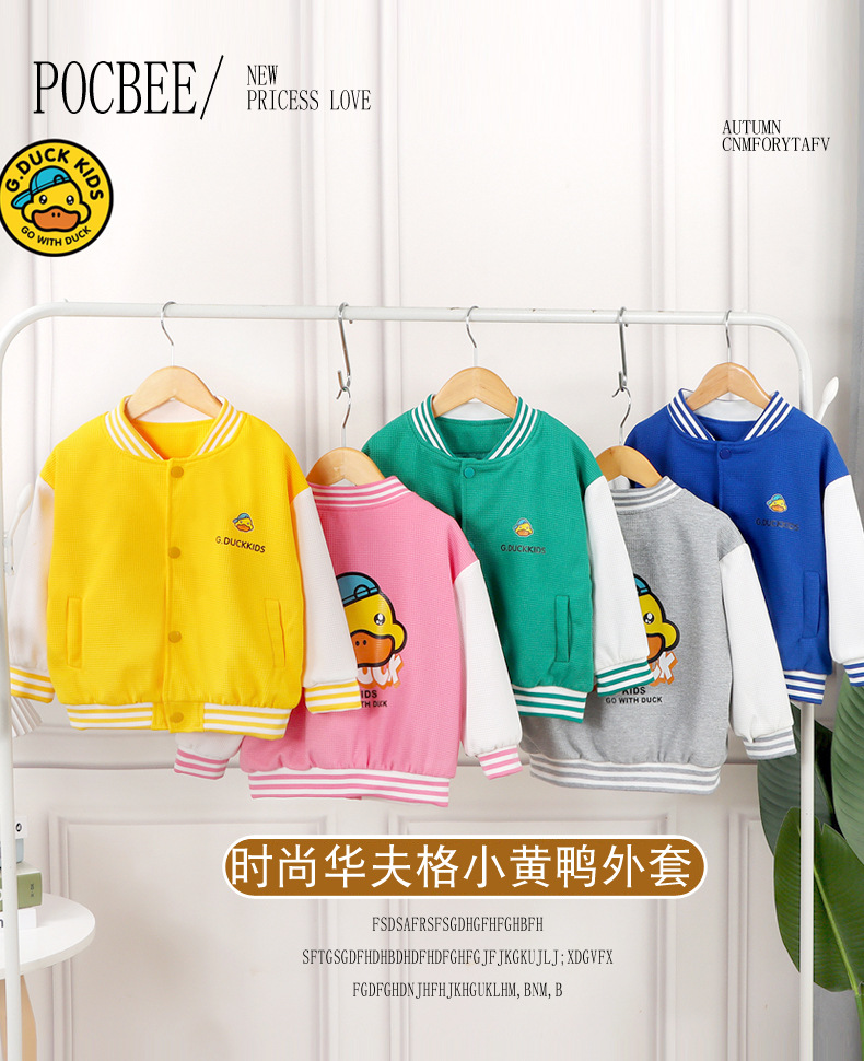 정품 Harrow 작은 노란색 오리 아이들의 유행 잘 생긴 재킷 아동 의류 소년과 소녀를위한 봄과 가을 캐주얼 야구 세트 탑스토어 가기