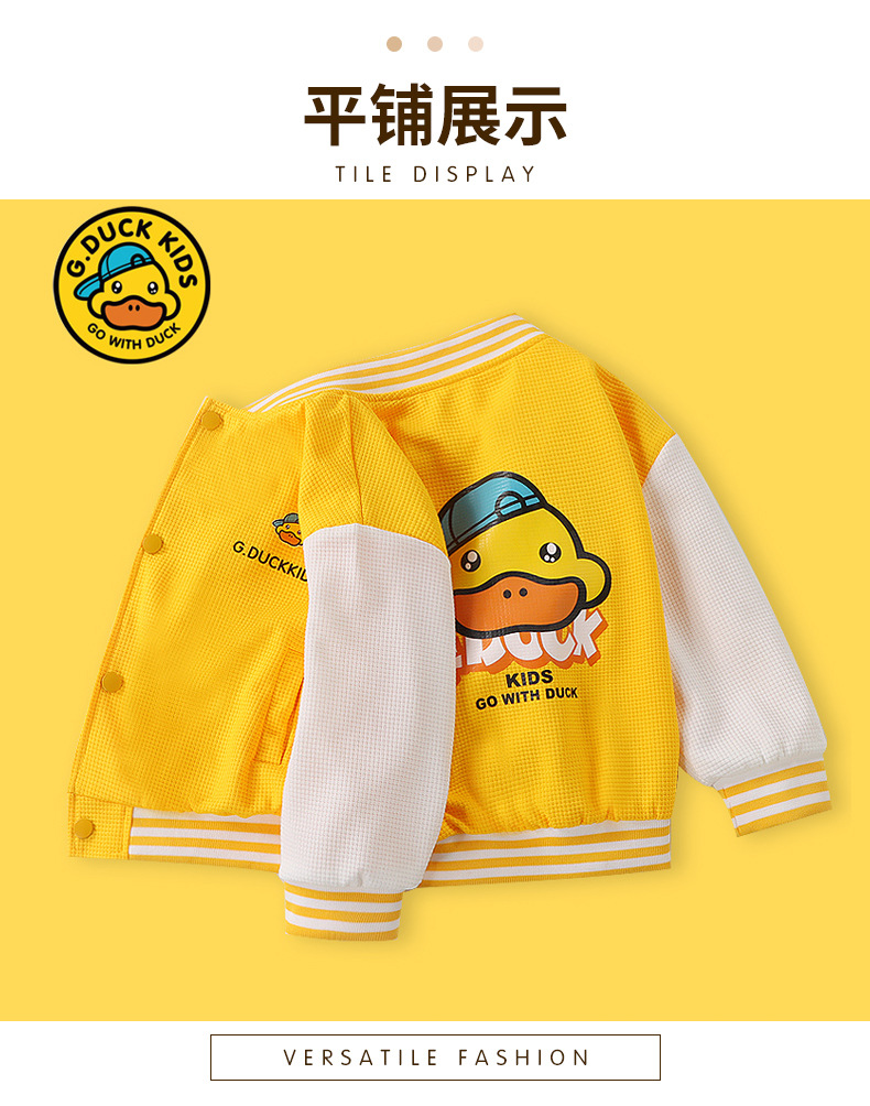 정품 Harrow 작은 노란색 오리 아이들의 유행 잘 생긴 재킷 아동 의류 소년과 소녀를위한 봄과 가을 캐주얼 야구 세트 탑